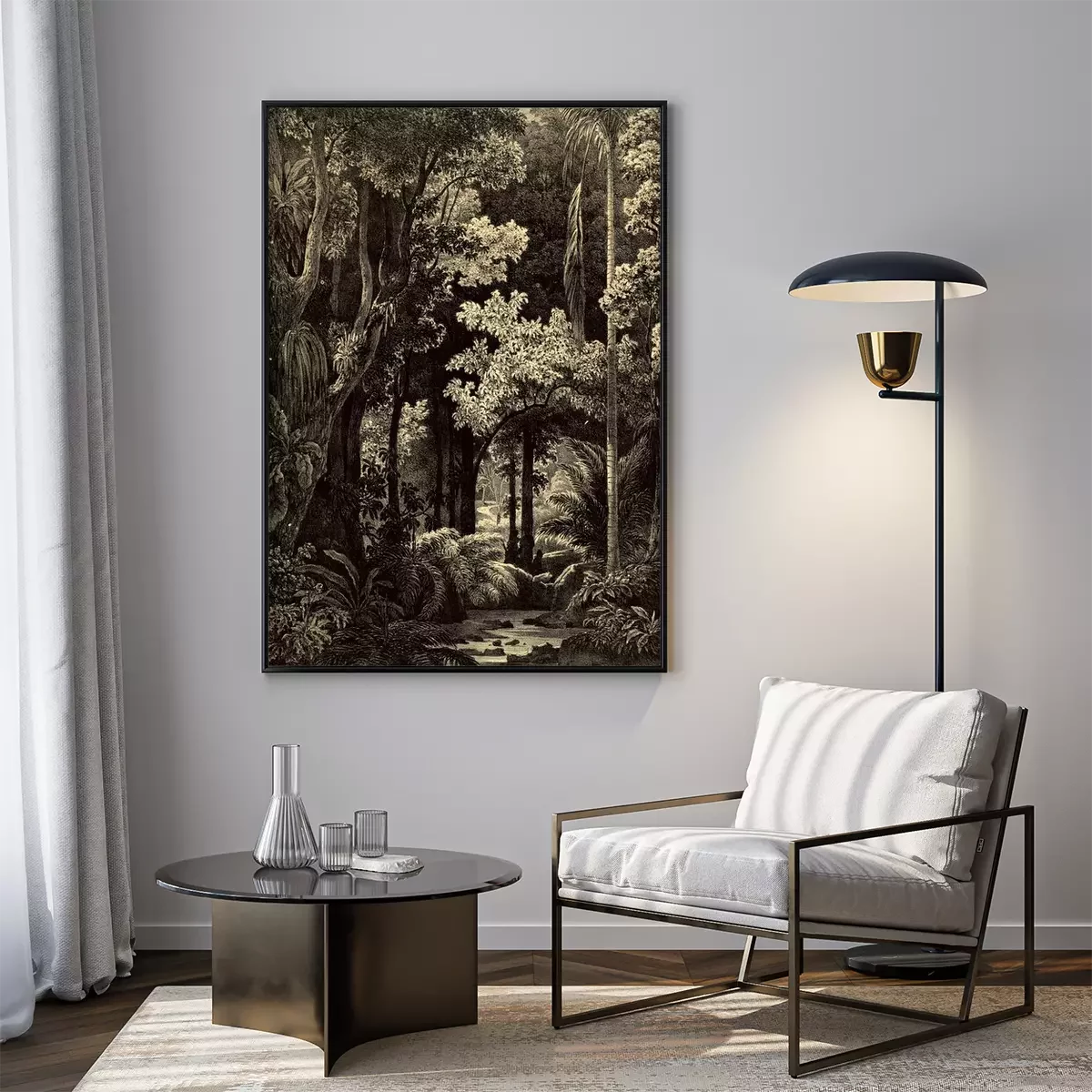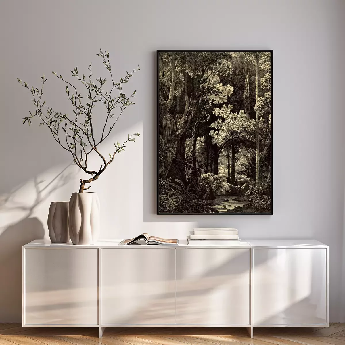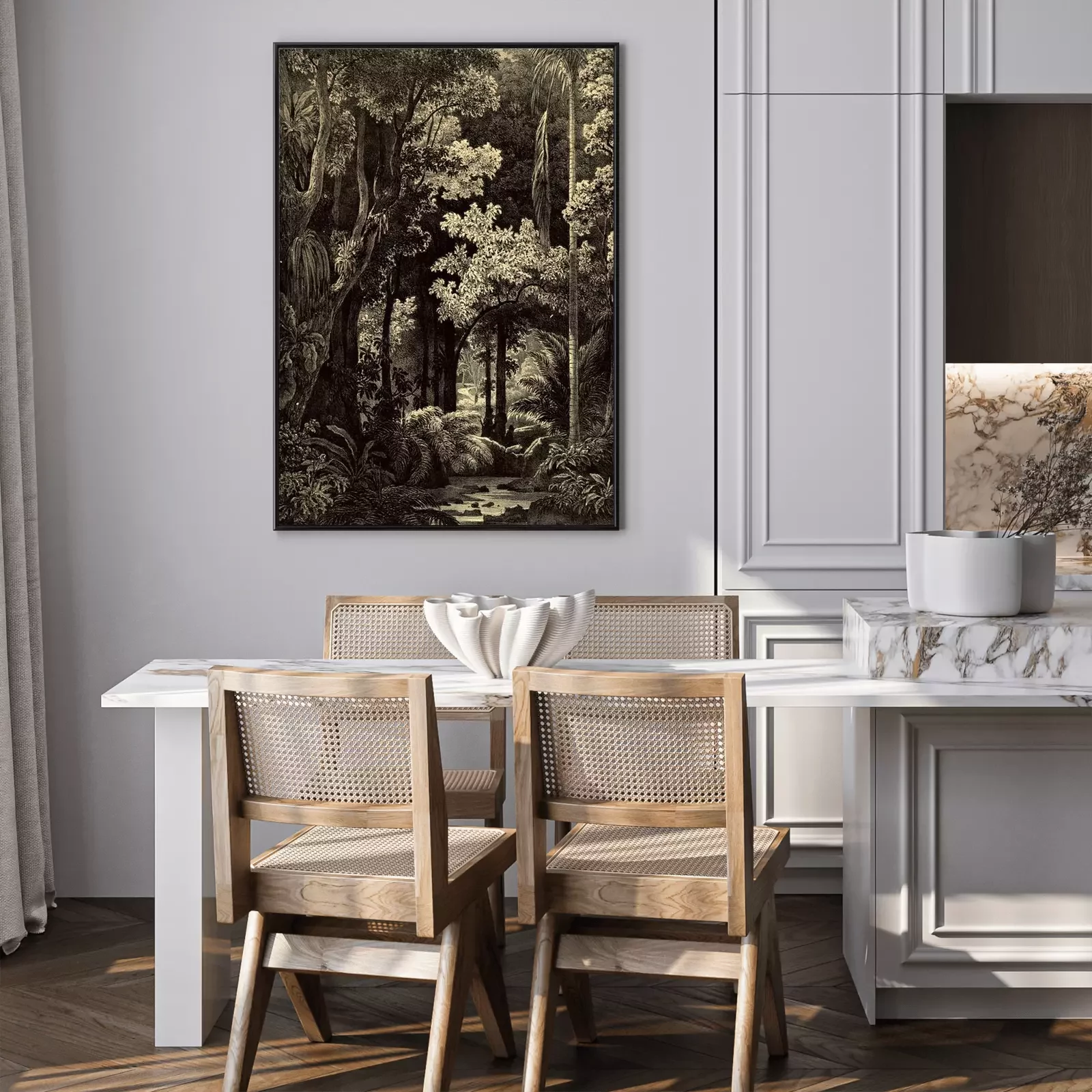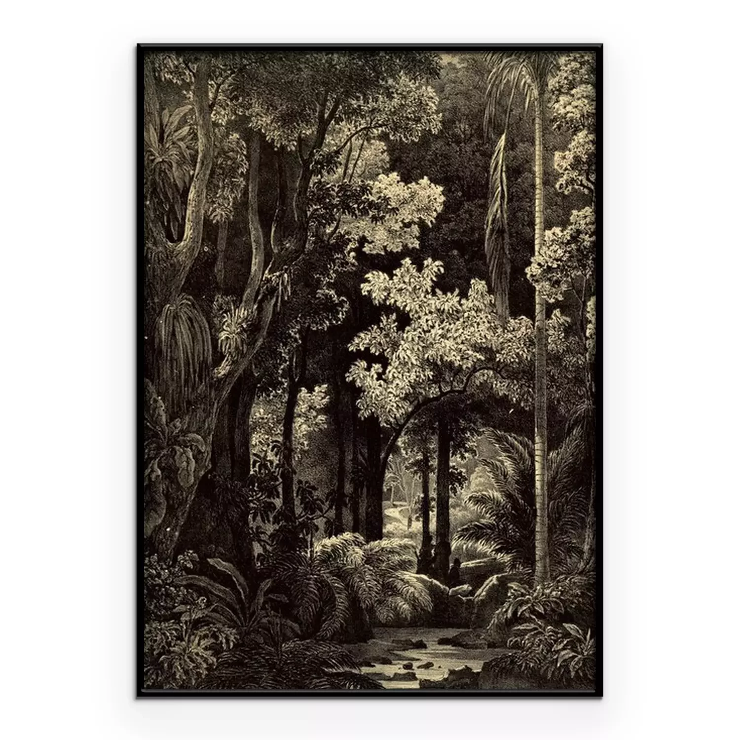 Poster  Dessin rétro d'une jungle dense de l'Amazonie