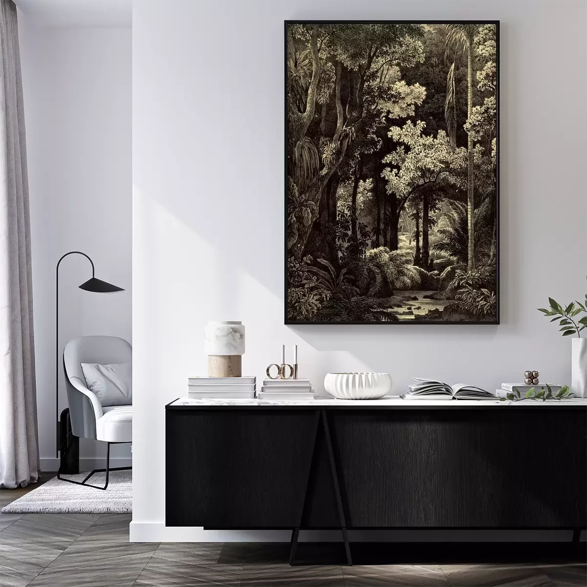 Poster : Dessin rétro d'une jungle dense de l'Amazonie