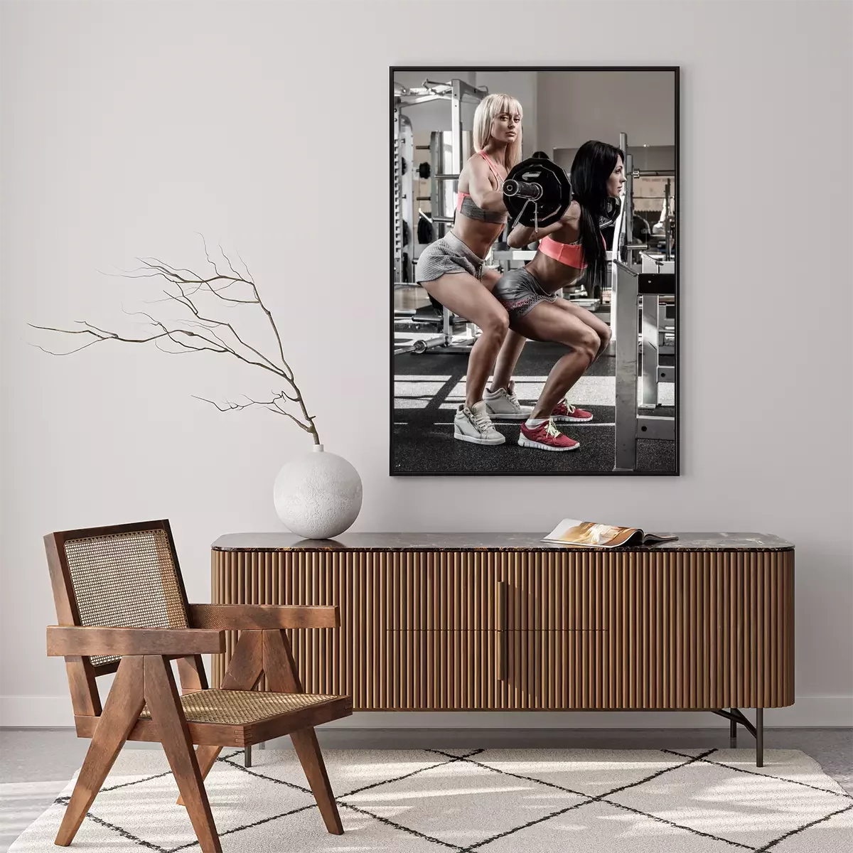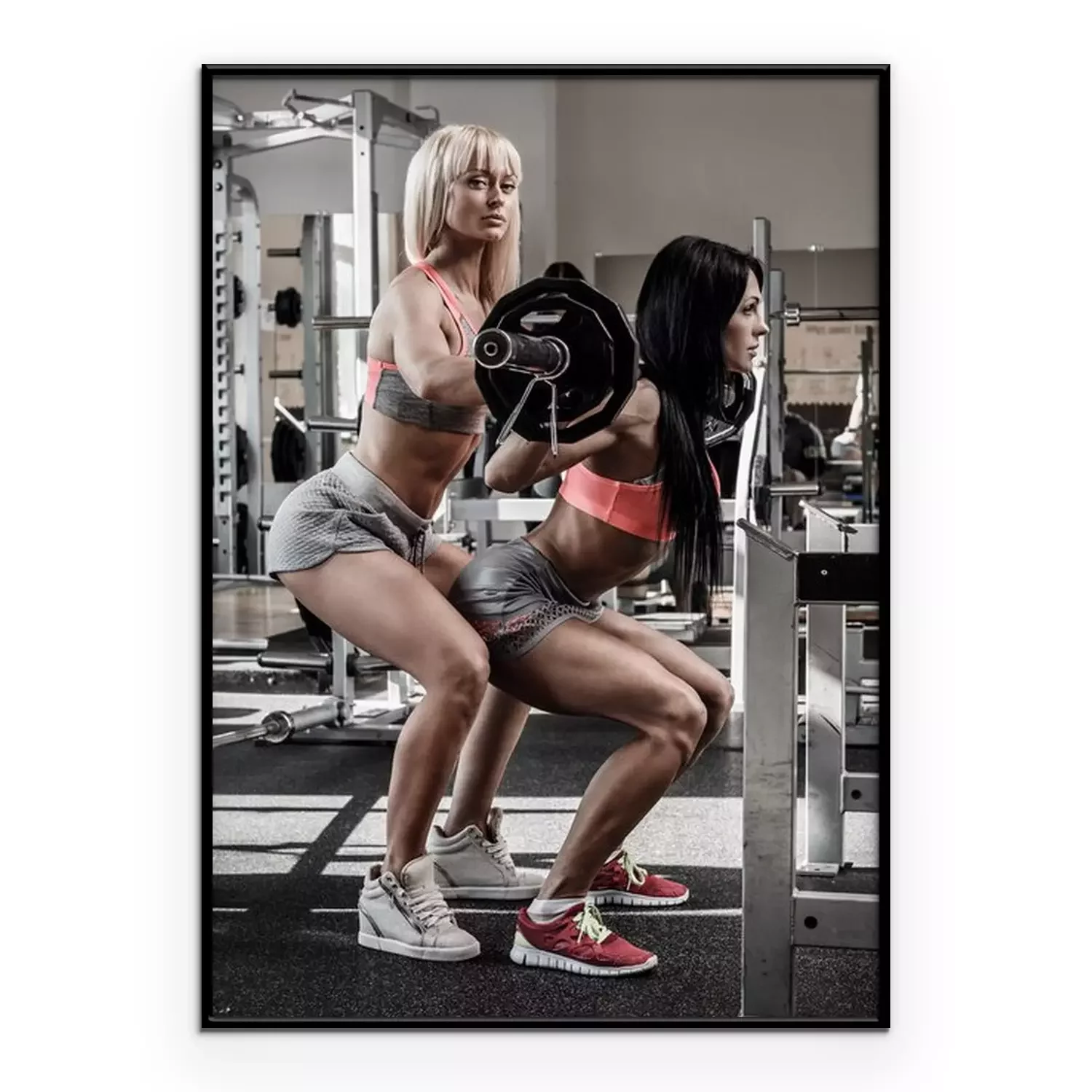 Poster : Deux belles filles qui travaillent dans une salle de sport