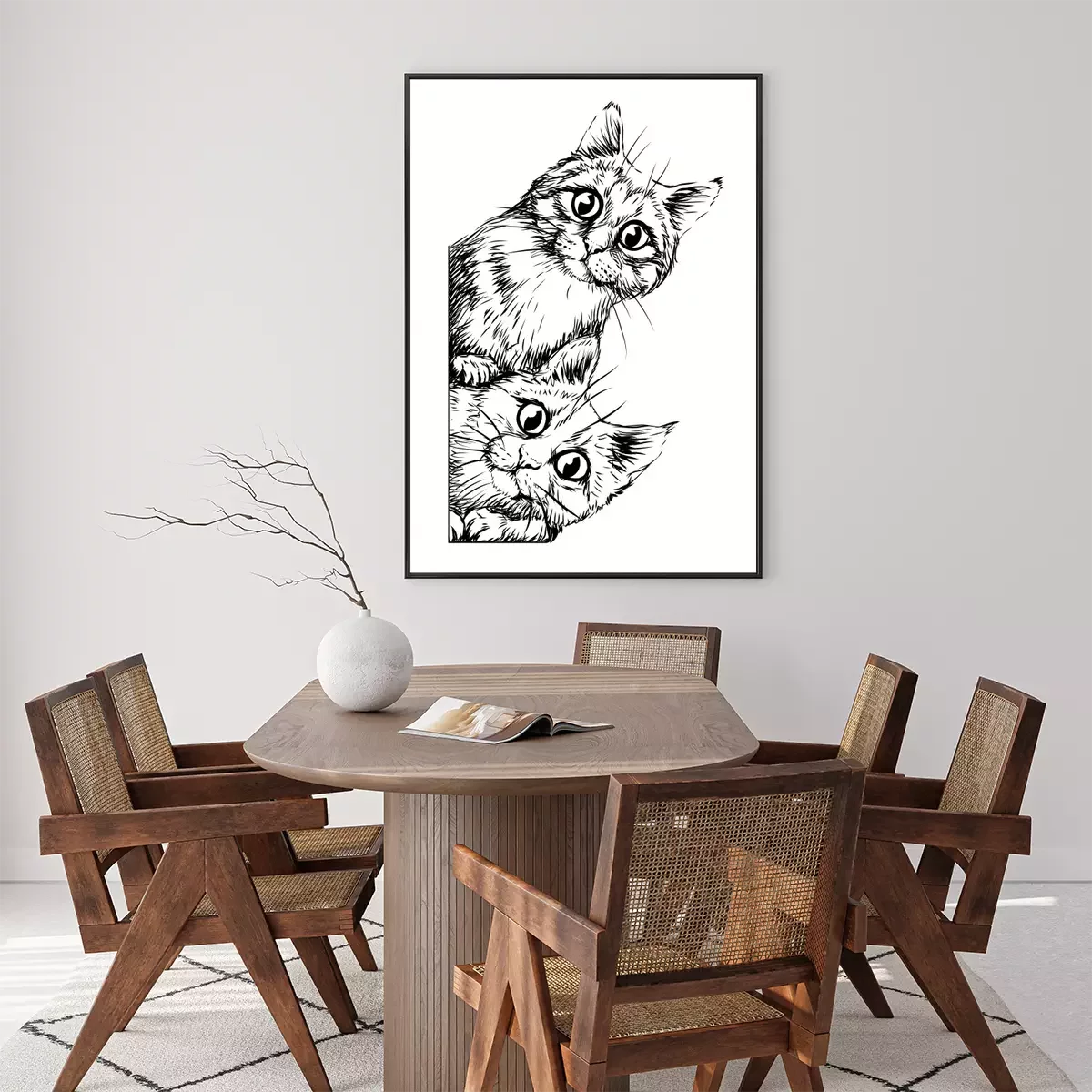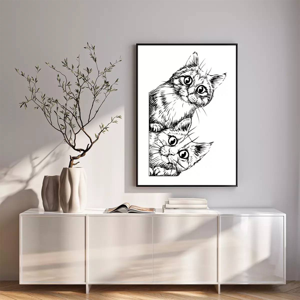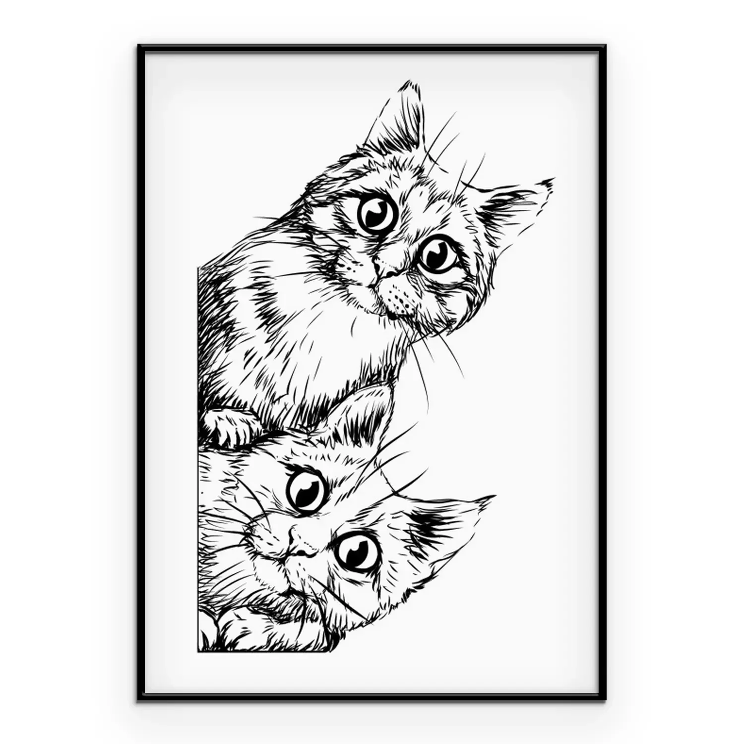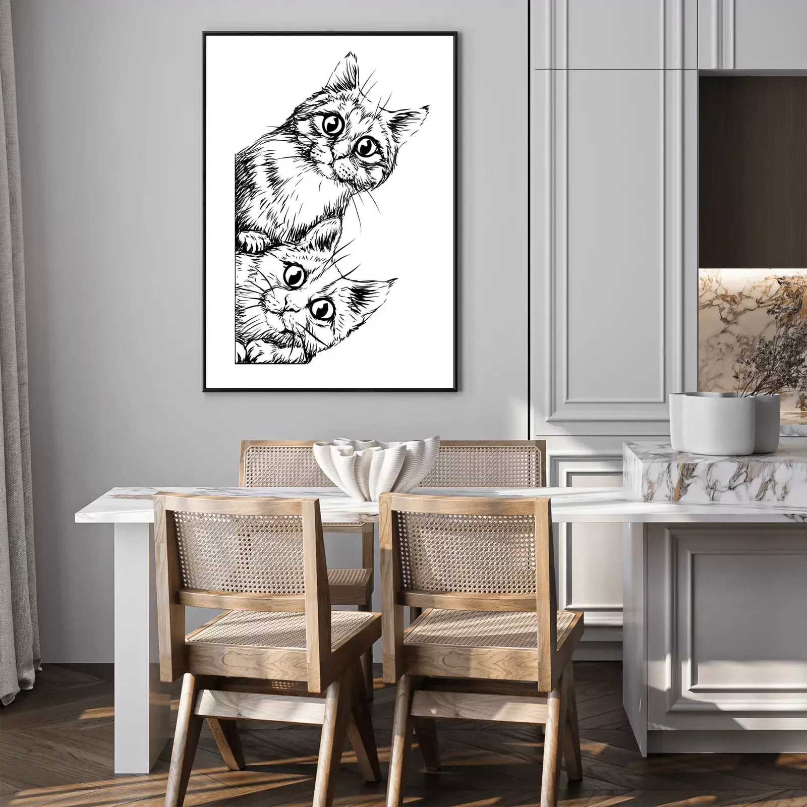 Poster  Deux chats jetant un coup d'oeil au-dessus du bord