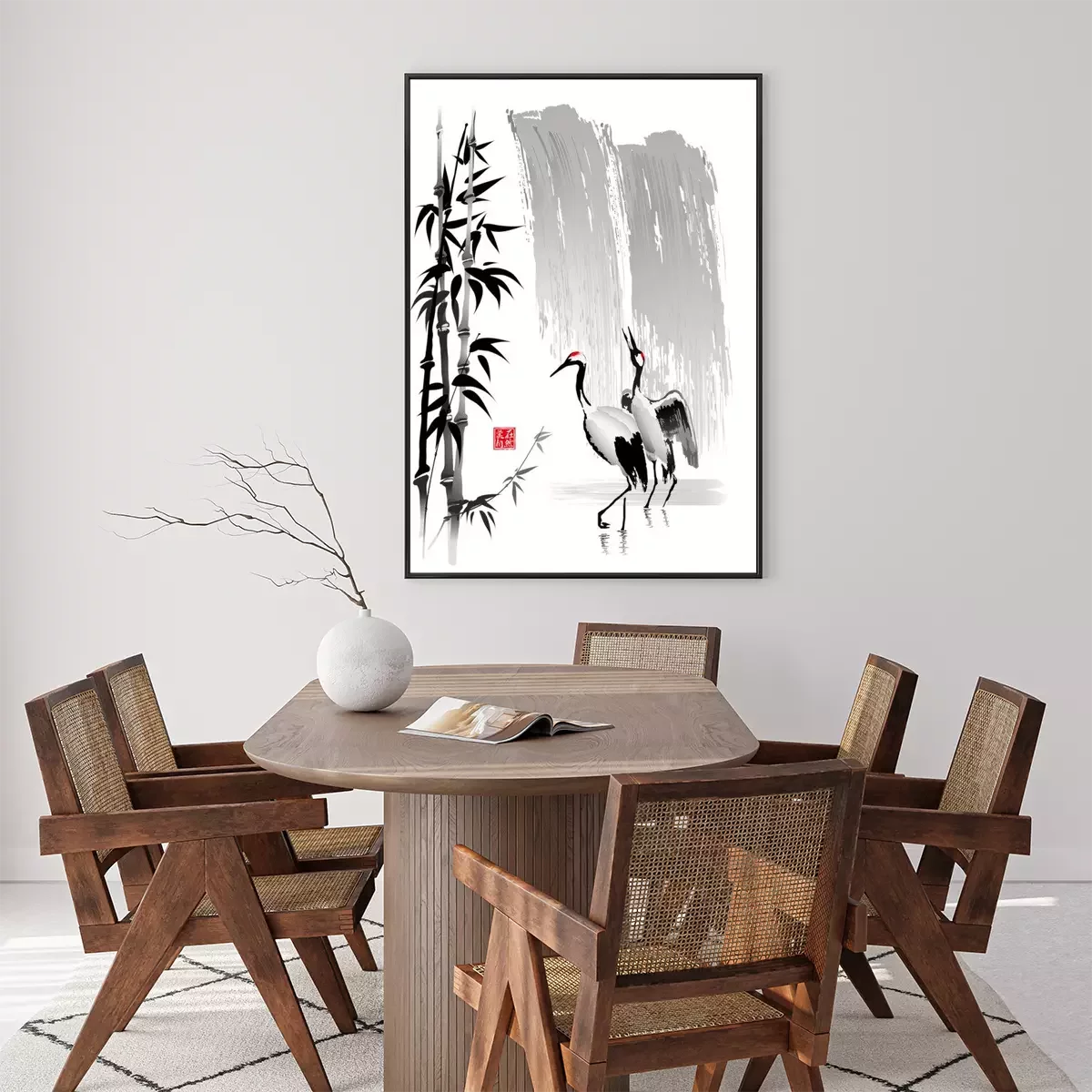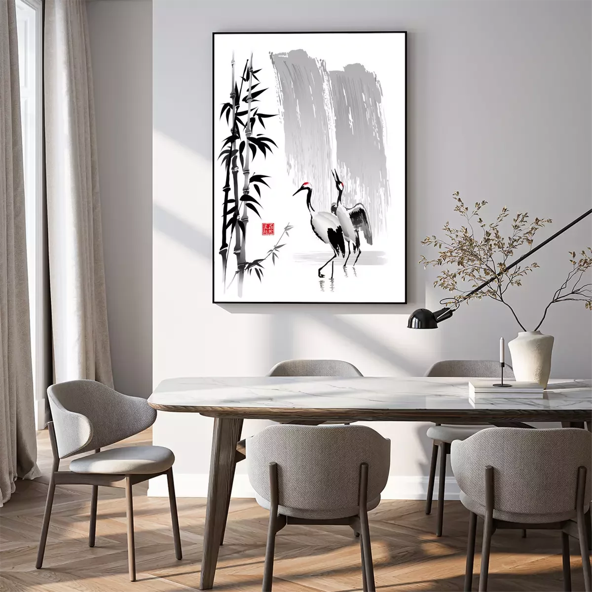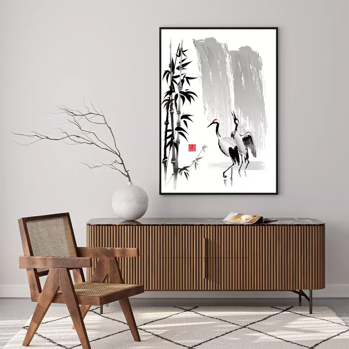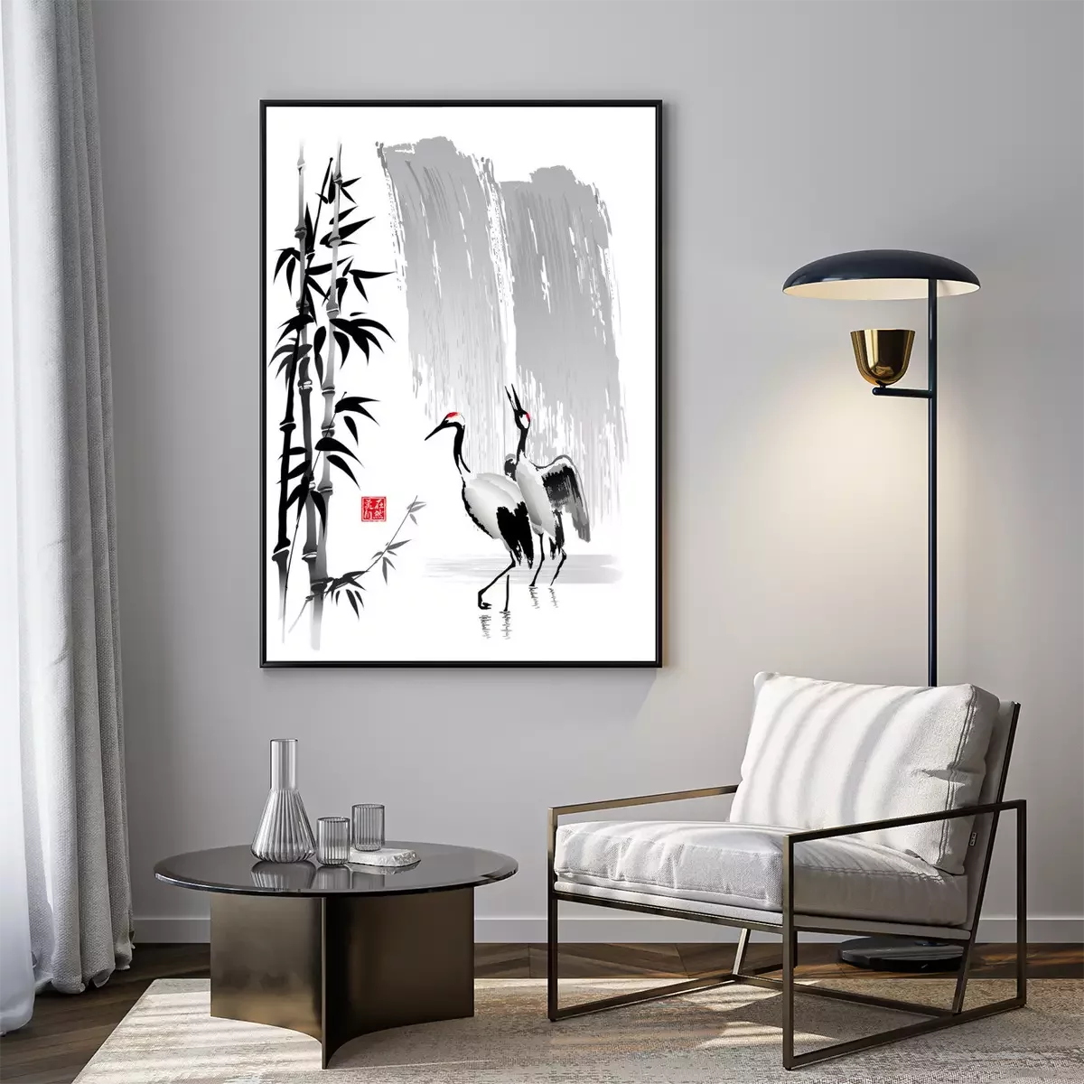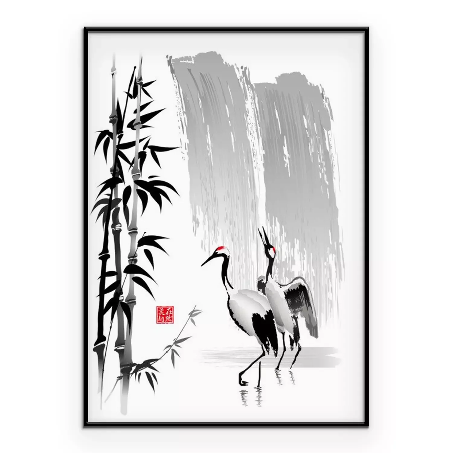 Poster : Deux grues près de la cascade