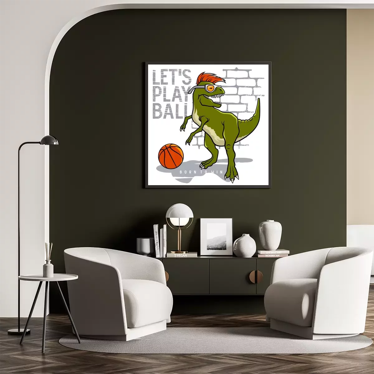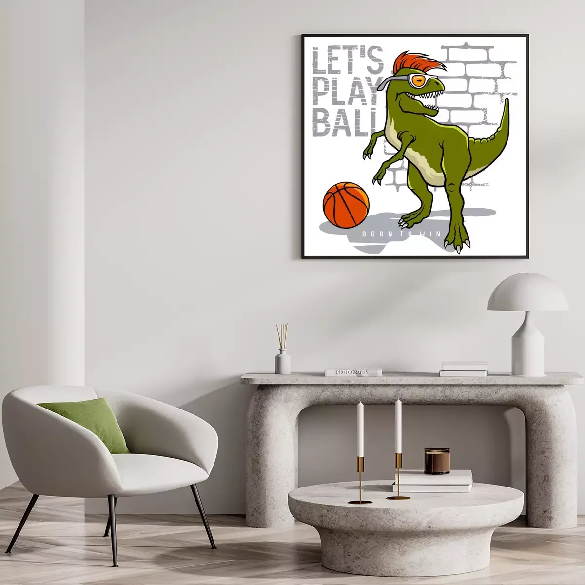 Poster : Dinosaure avec un mohawk orange