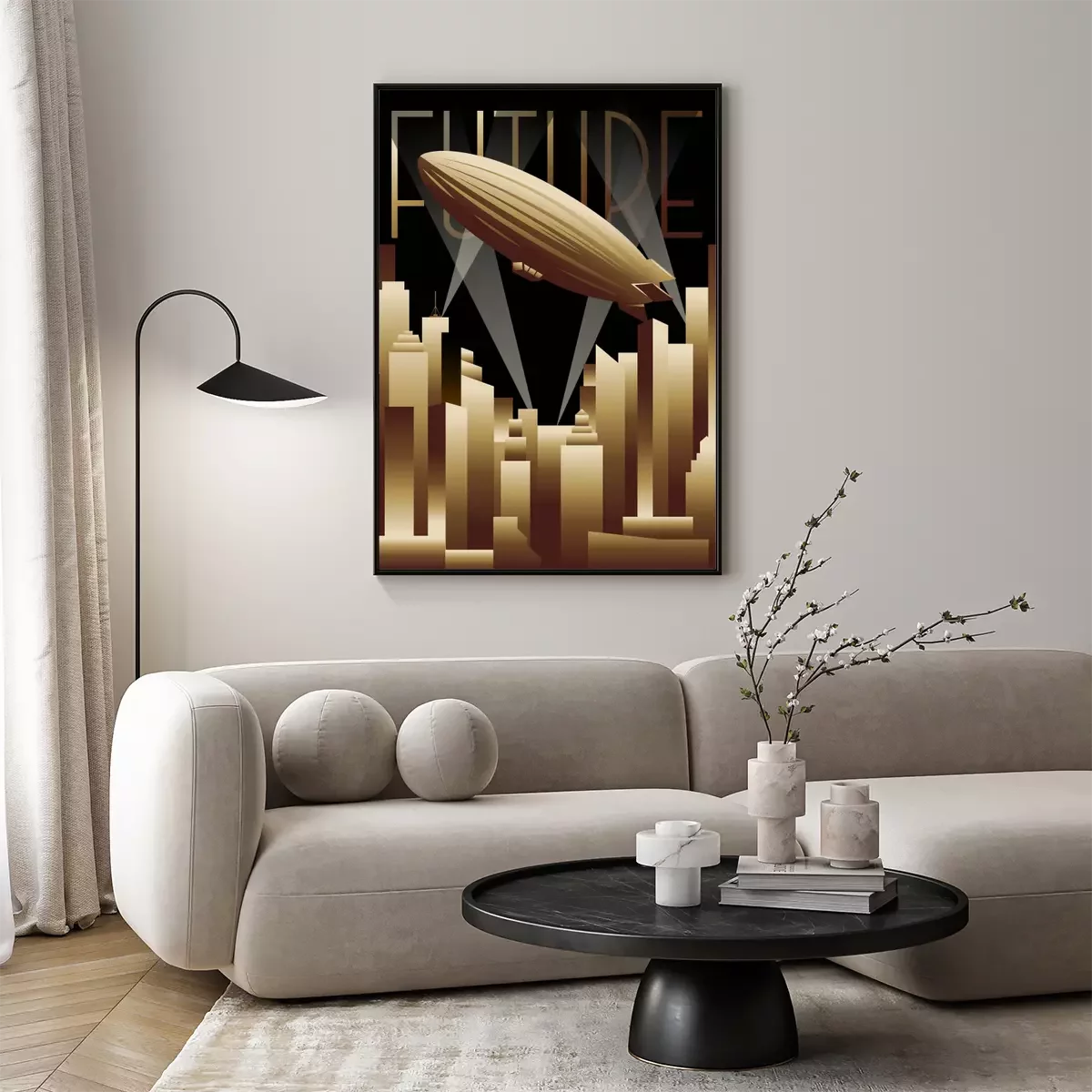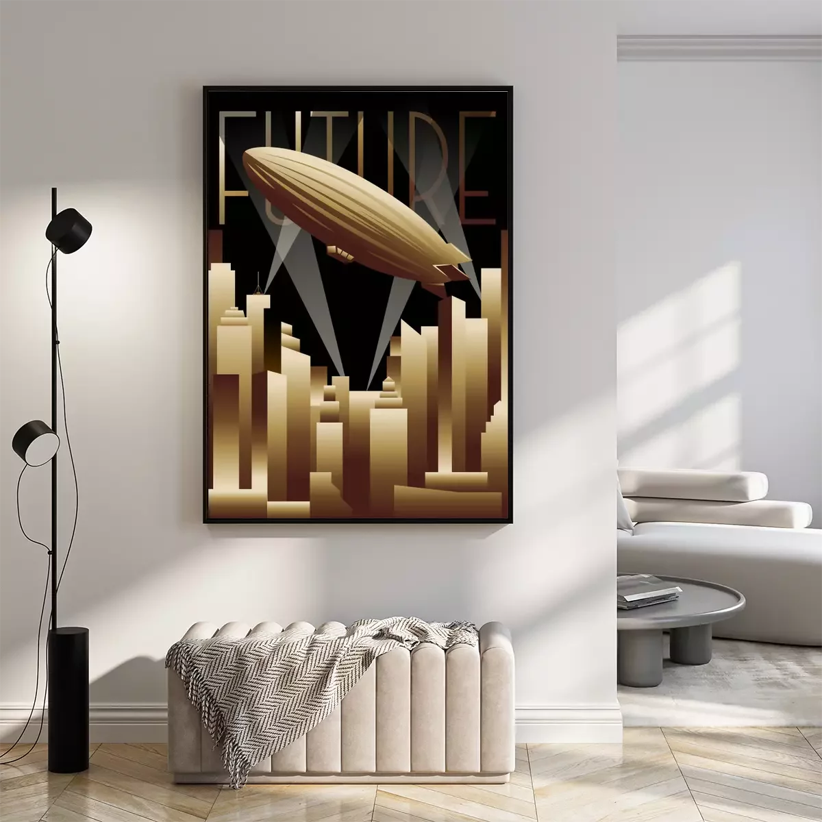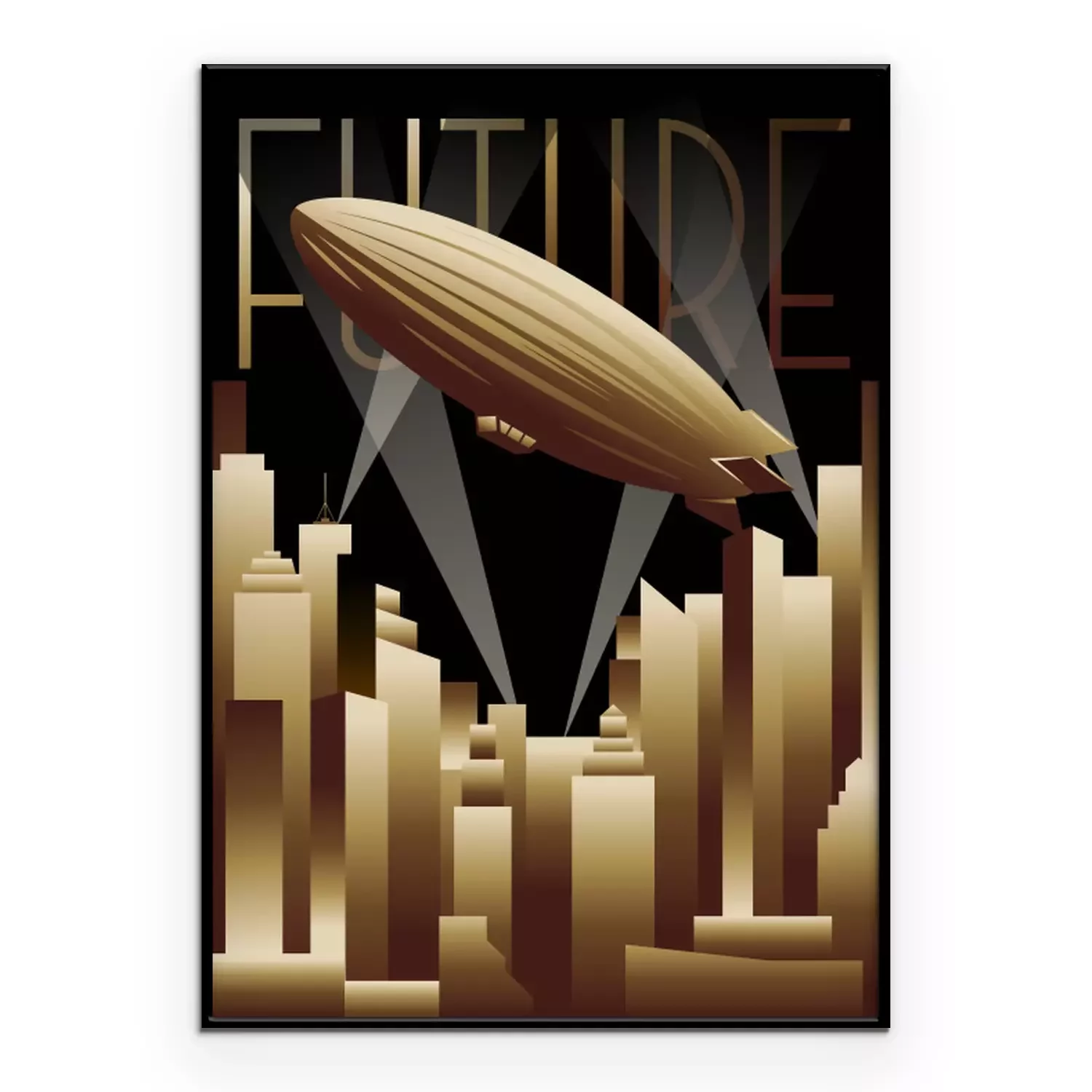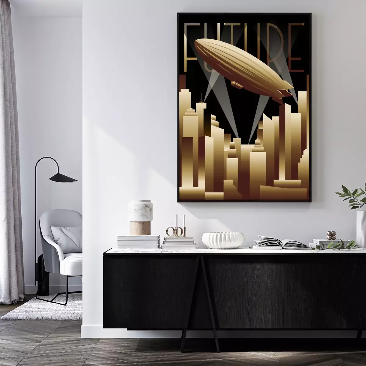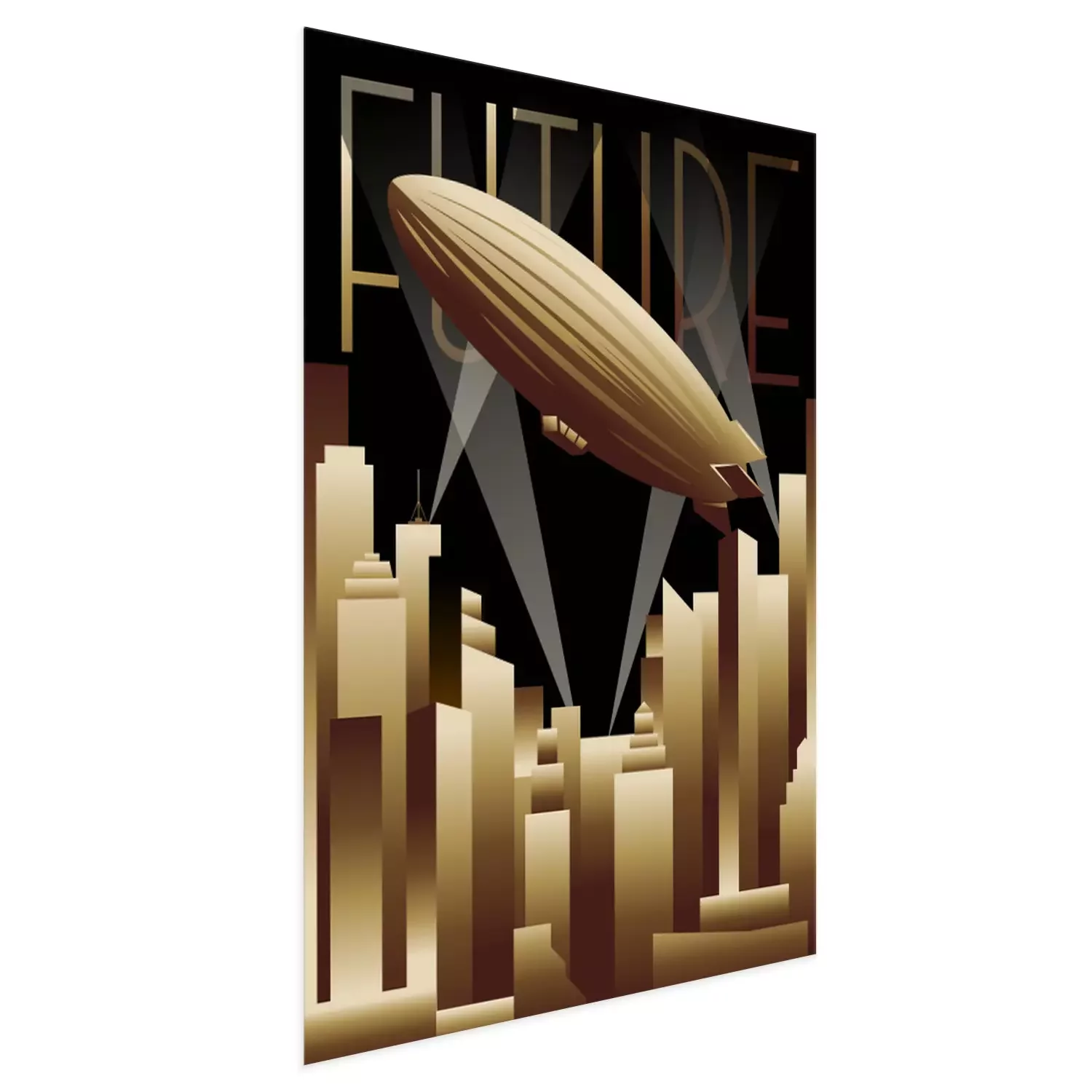 Poster : Dirigeable volant au-dessus des gratte-ciel
