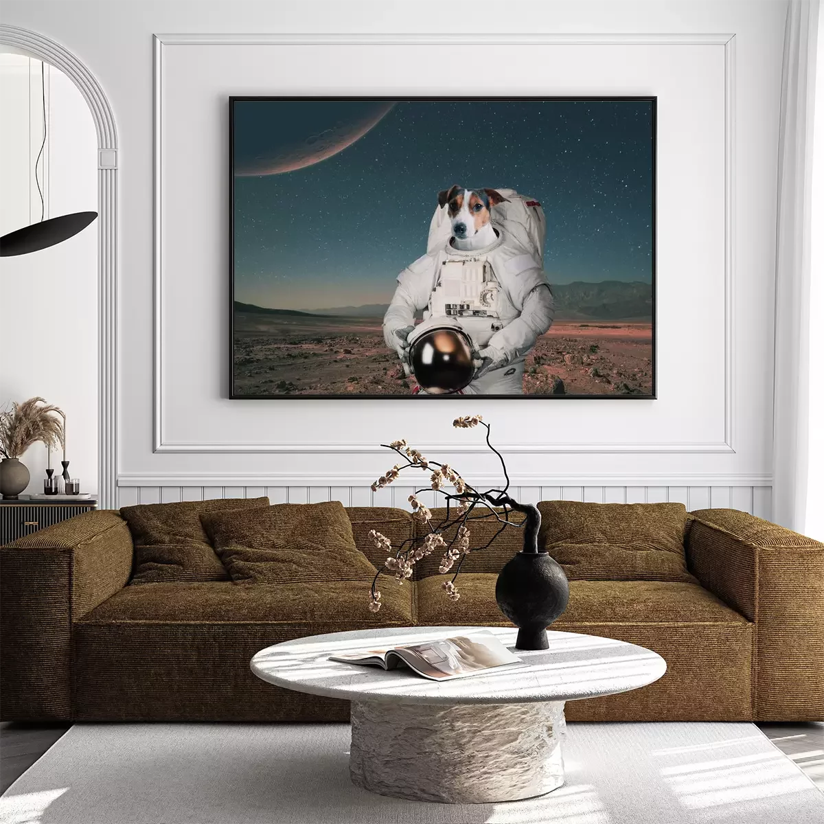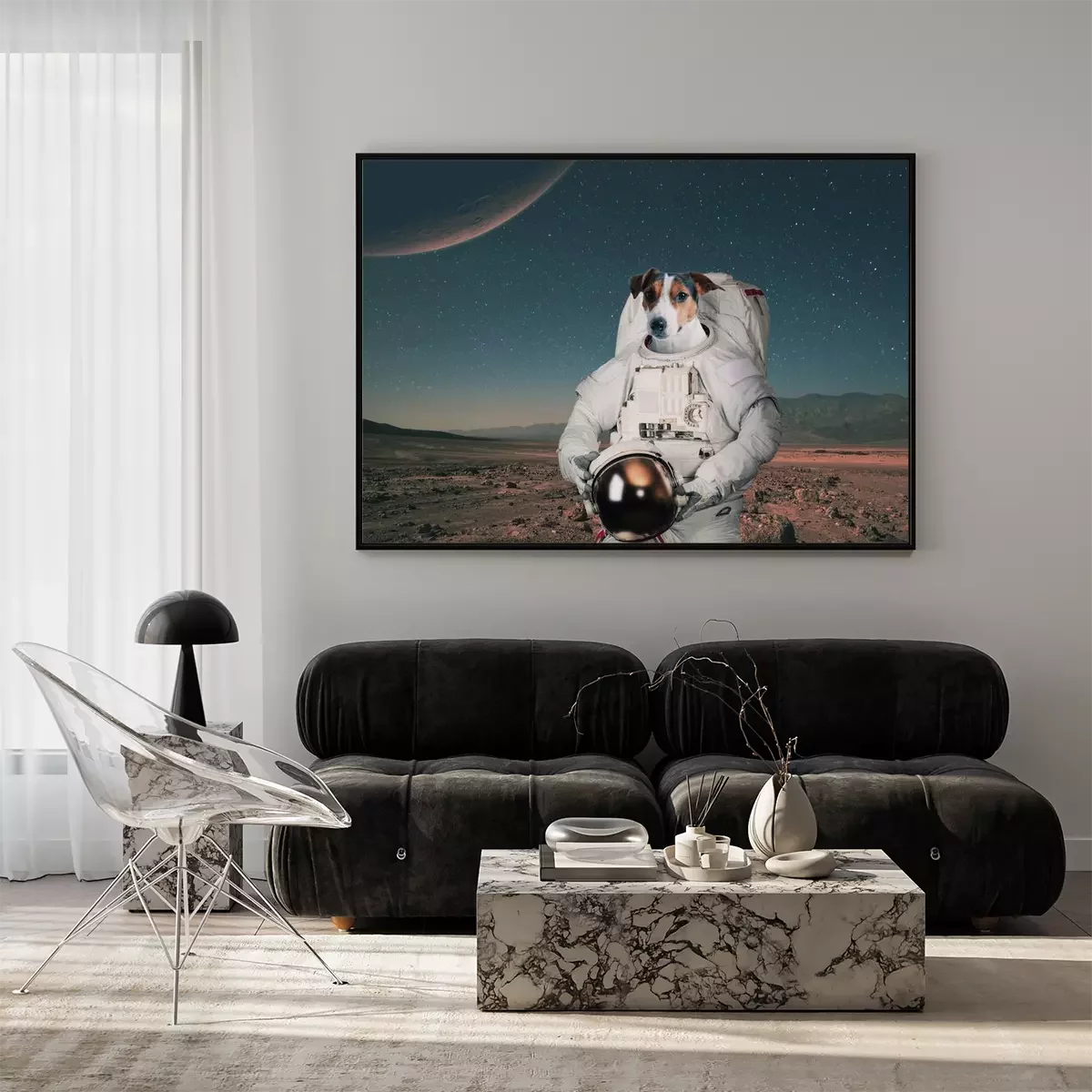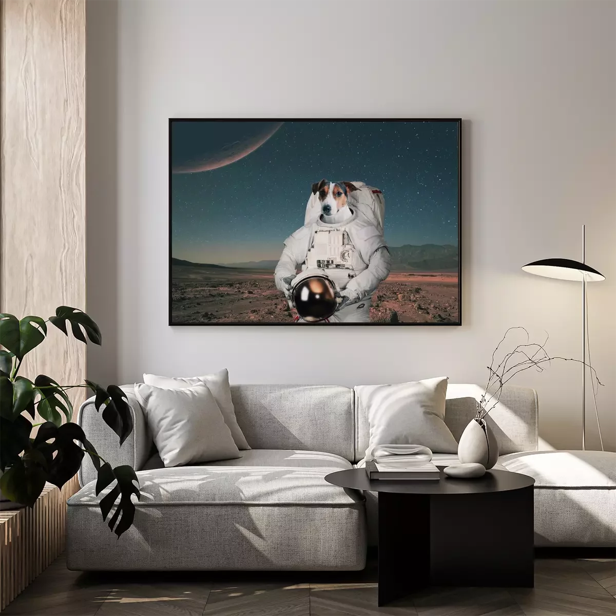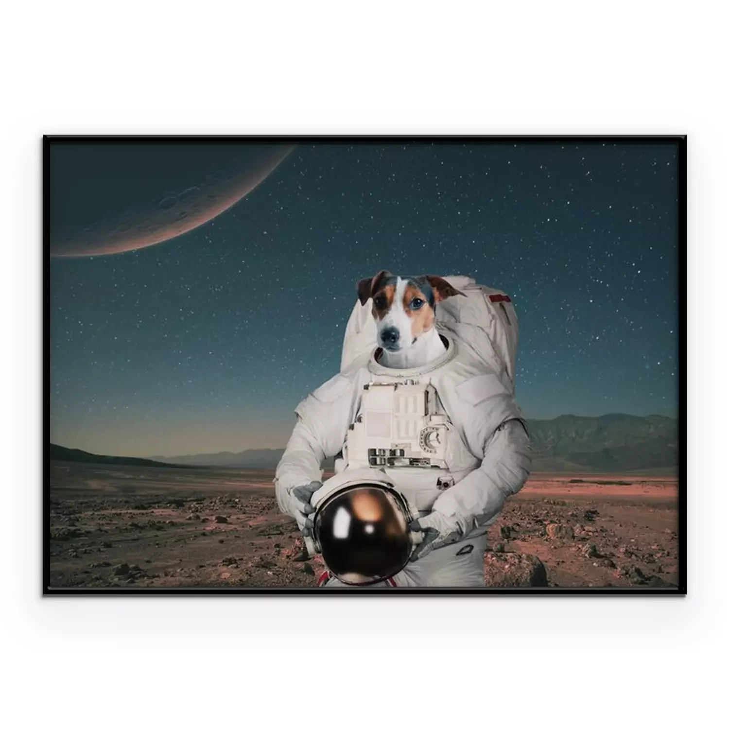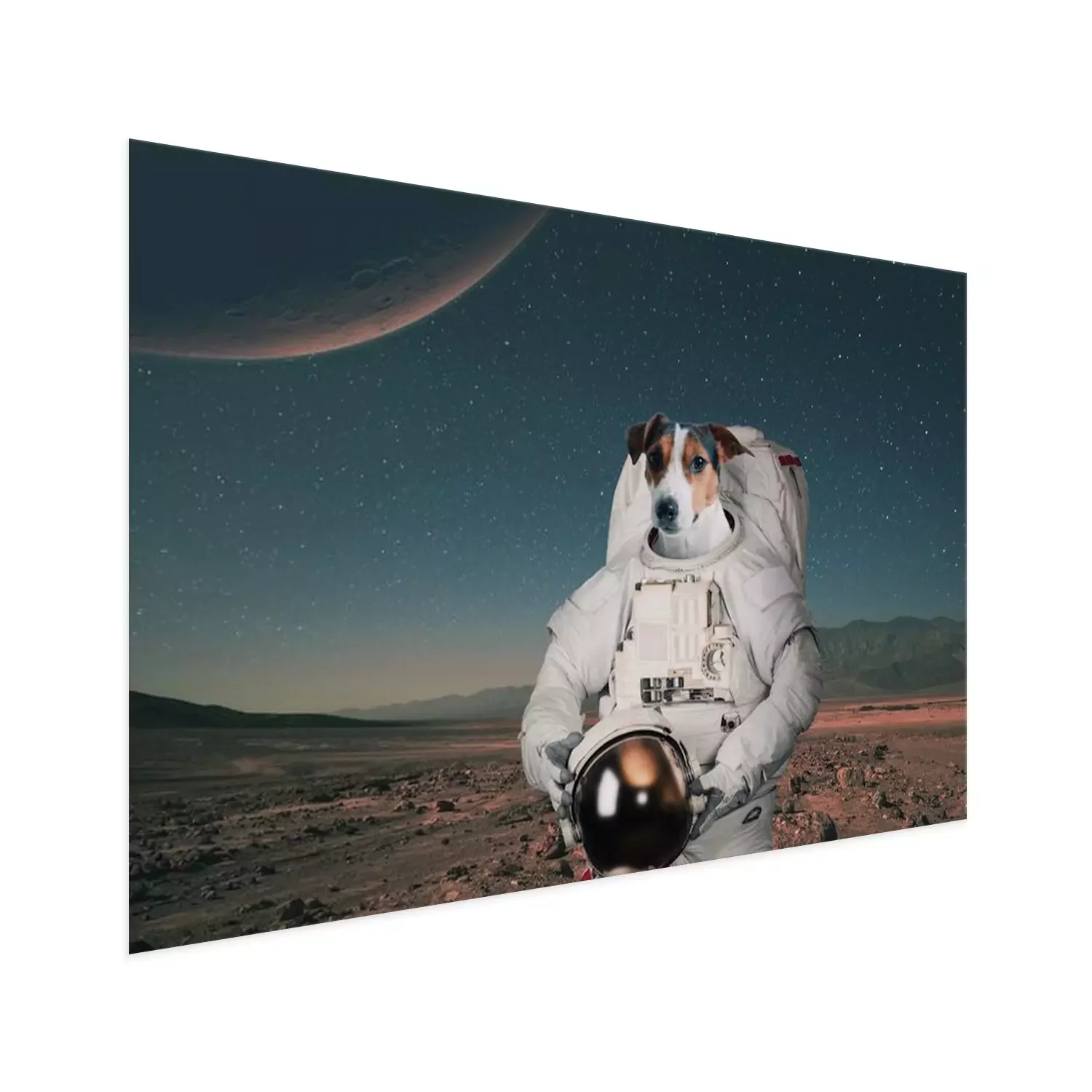 Poster : Dog astronaut in a space suit with a helmet travels on Mars. Spaceman animal on a red planet. Space journey concept