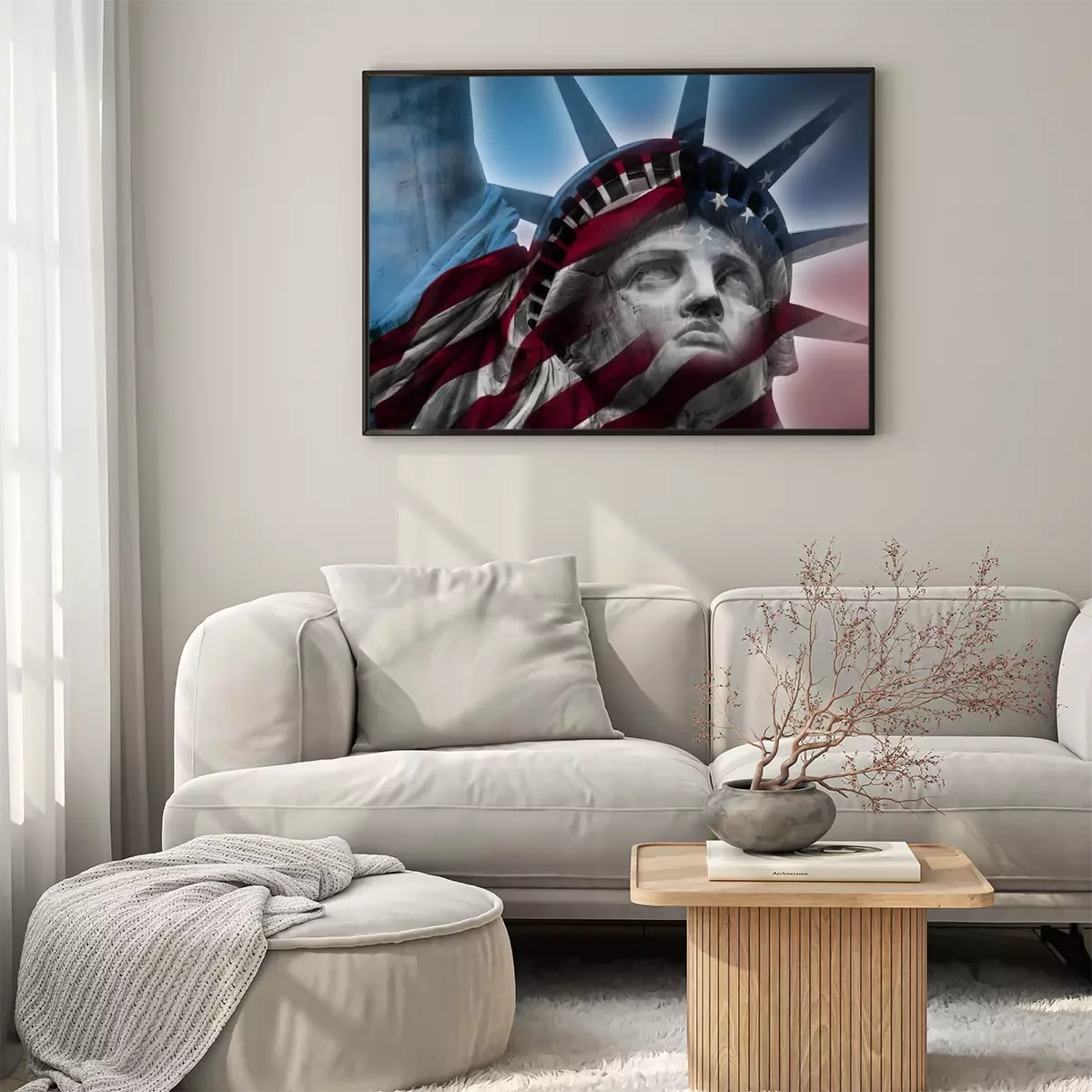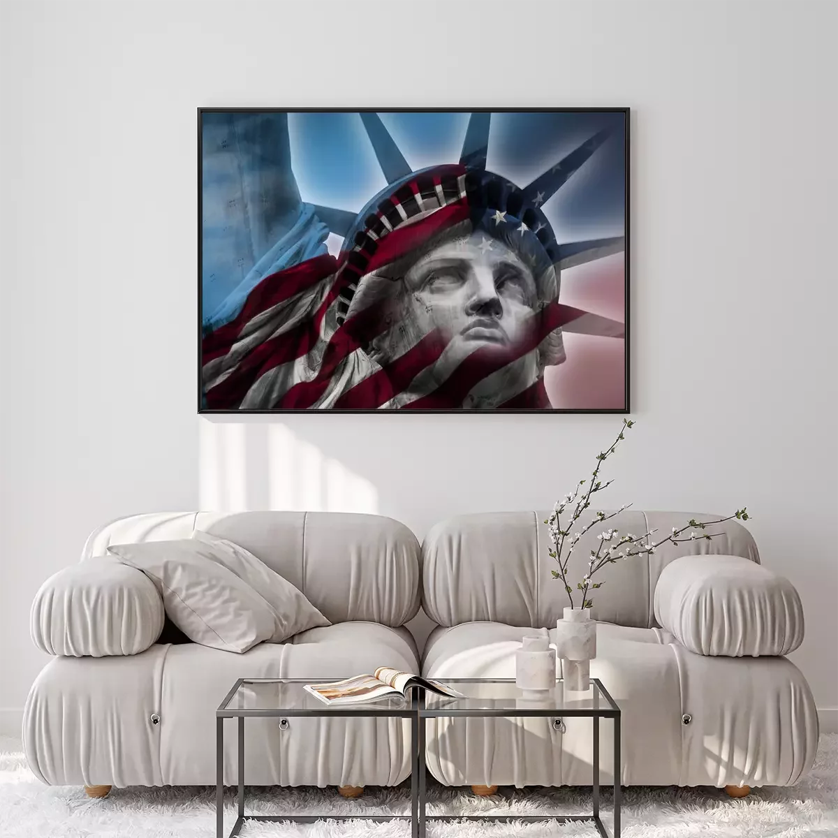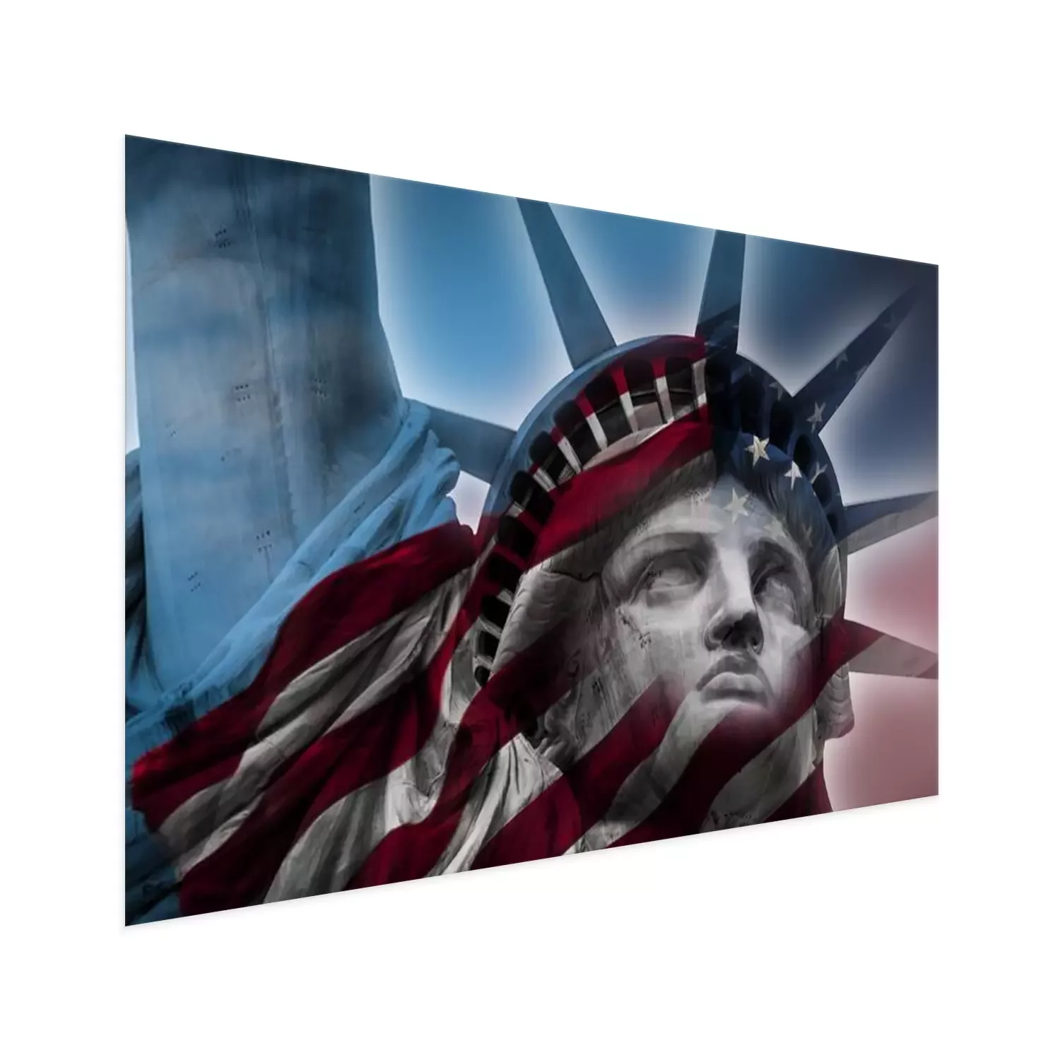 Poster  Double exposure image of the Statue of Liberty and the American flag