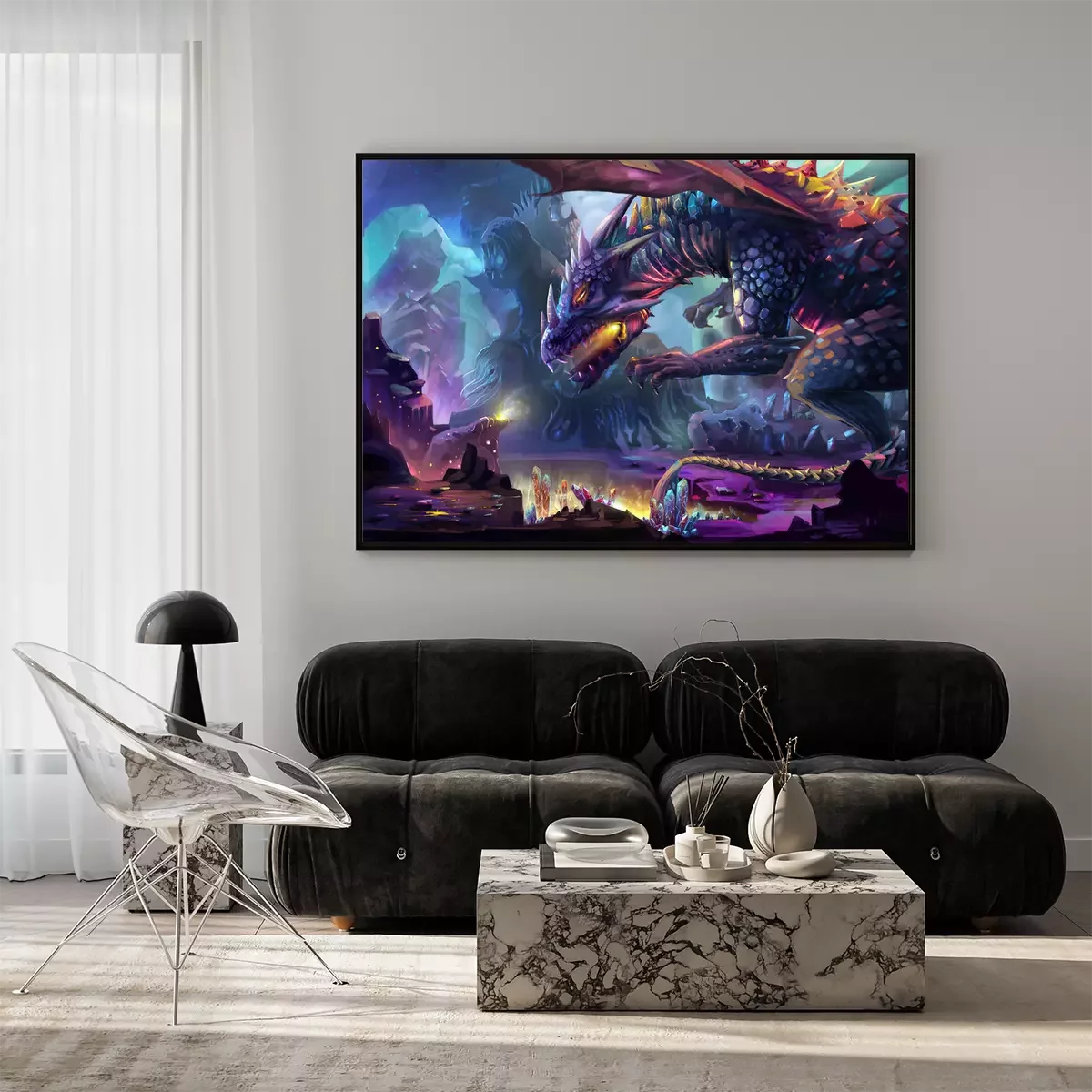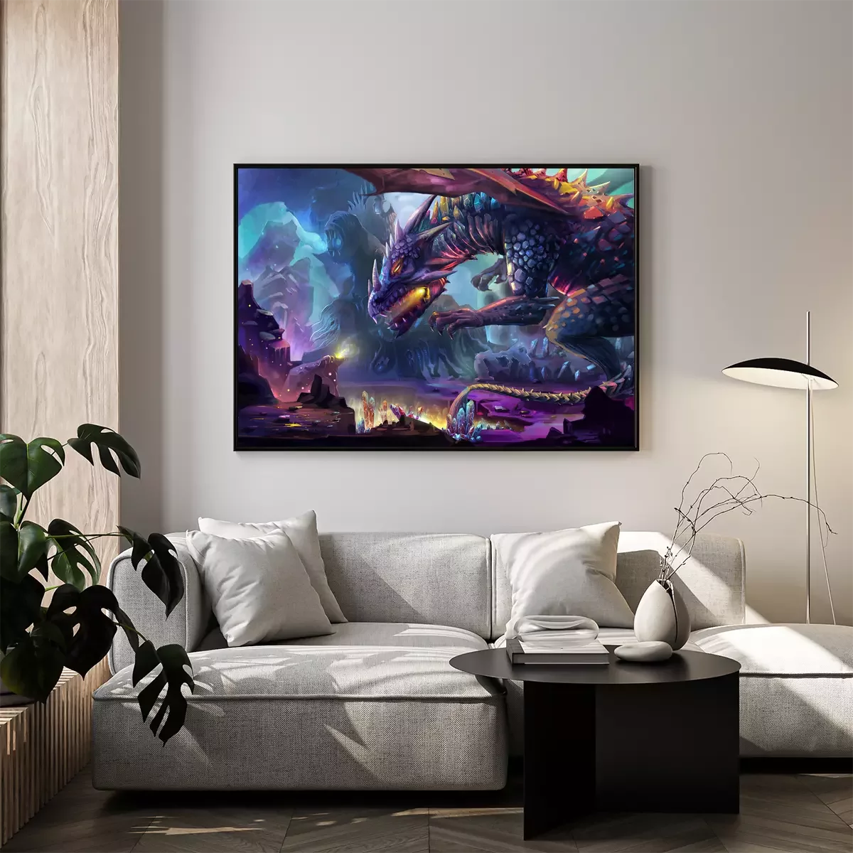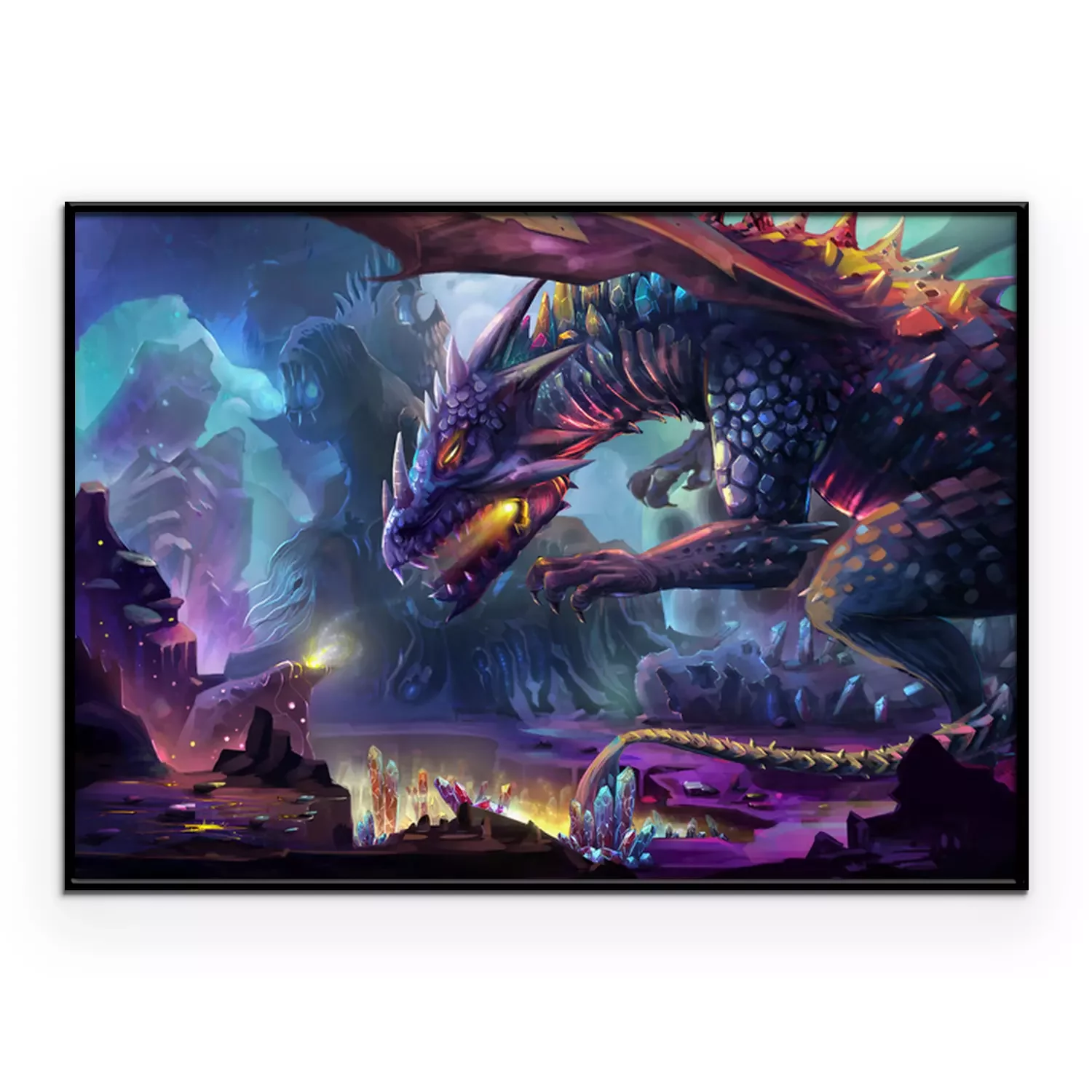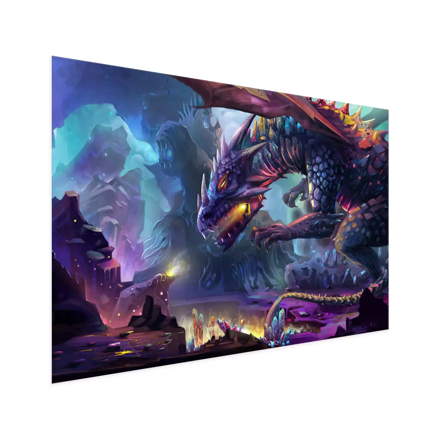 Poster  Dragon effrayant avec du feu dans sa bouche et des rochers