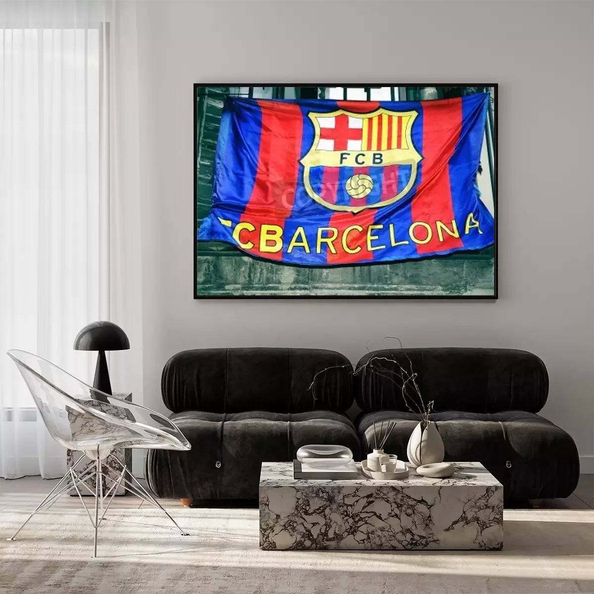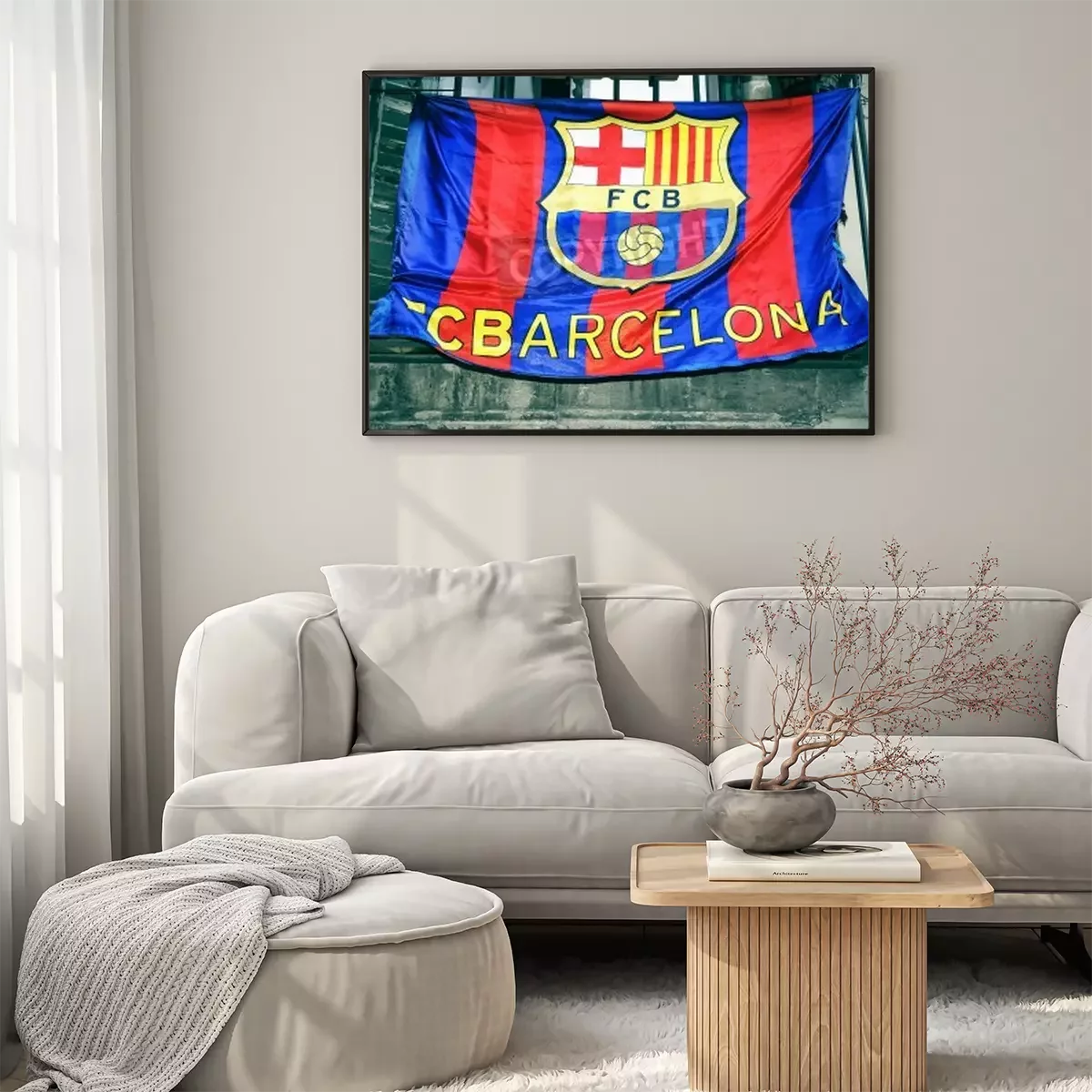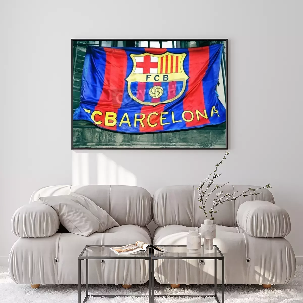 Poster : Drapeau de football avec emblème du FC Barcelone