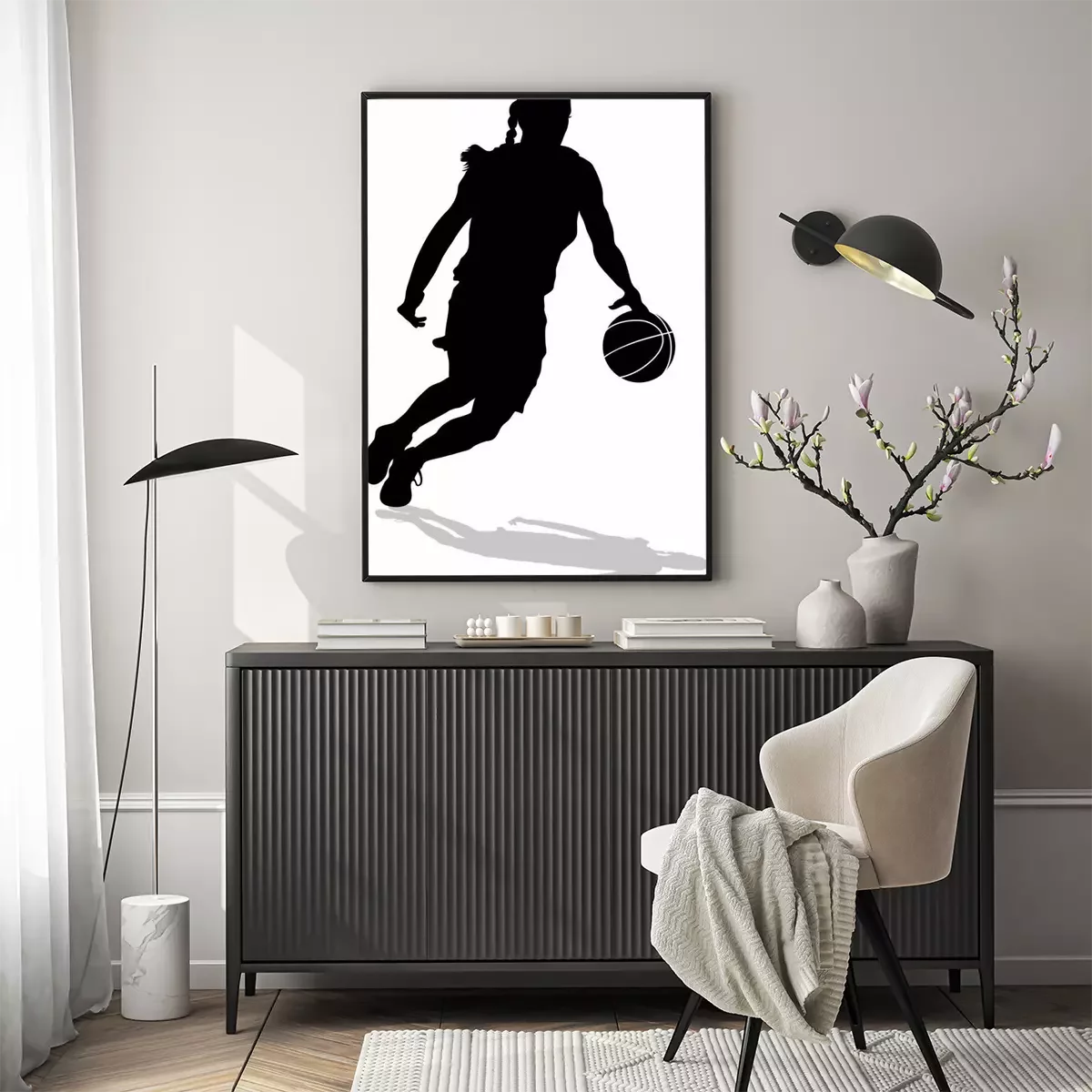 Poster  Dribbler Silhouette Femme Joueur de basket