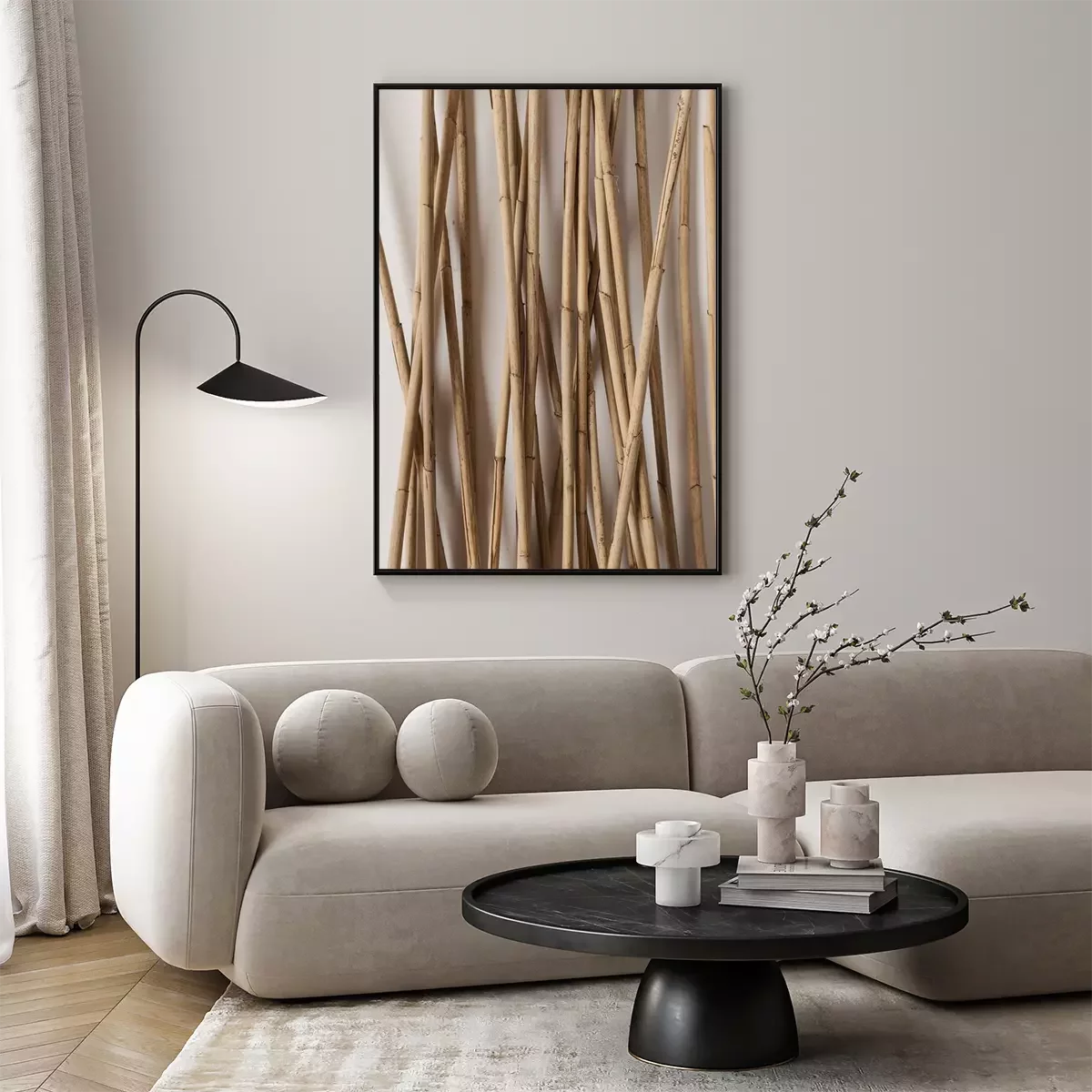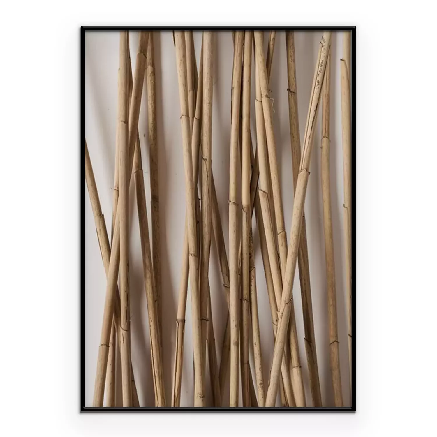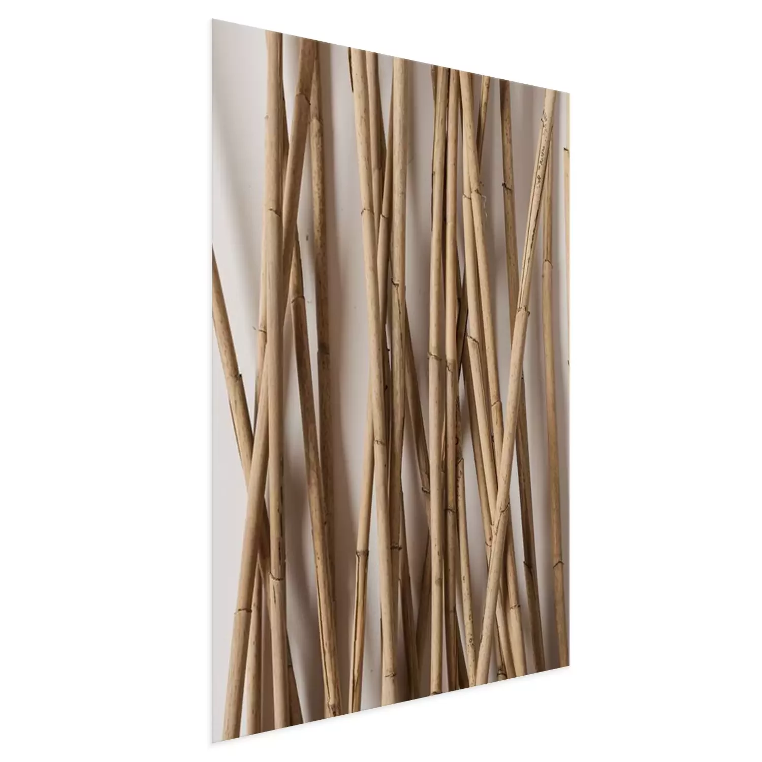 Poster  Dry cane reeds stalks on white background. Minimalist nature concept.