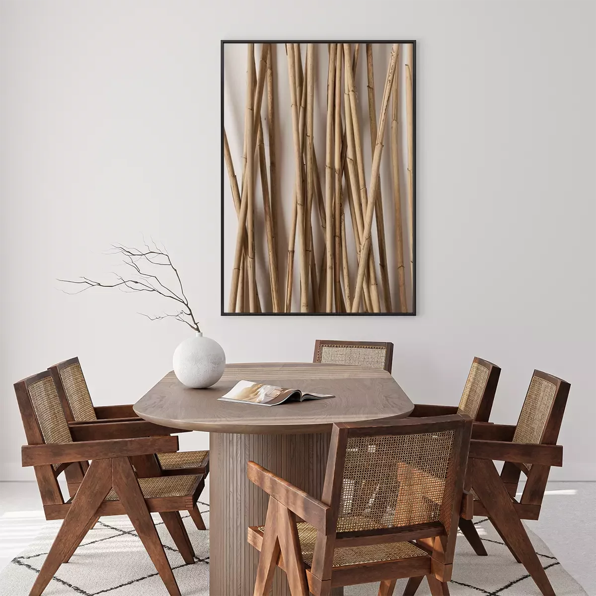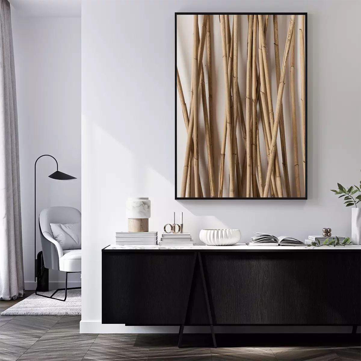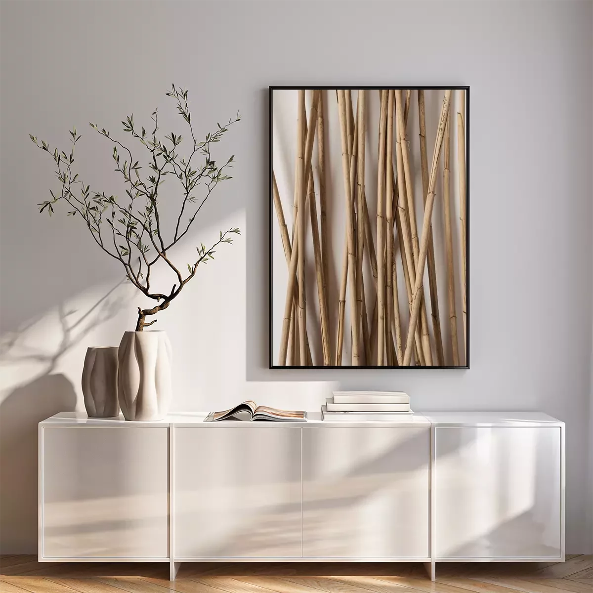 Poster  Dry cane reeds stalks on white background. Minimalist nature concept.