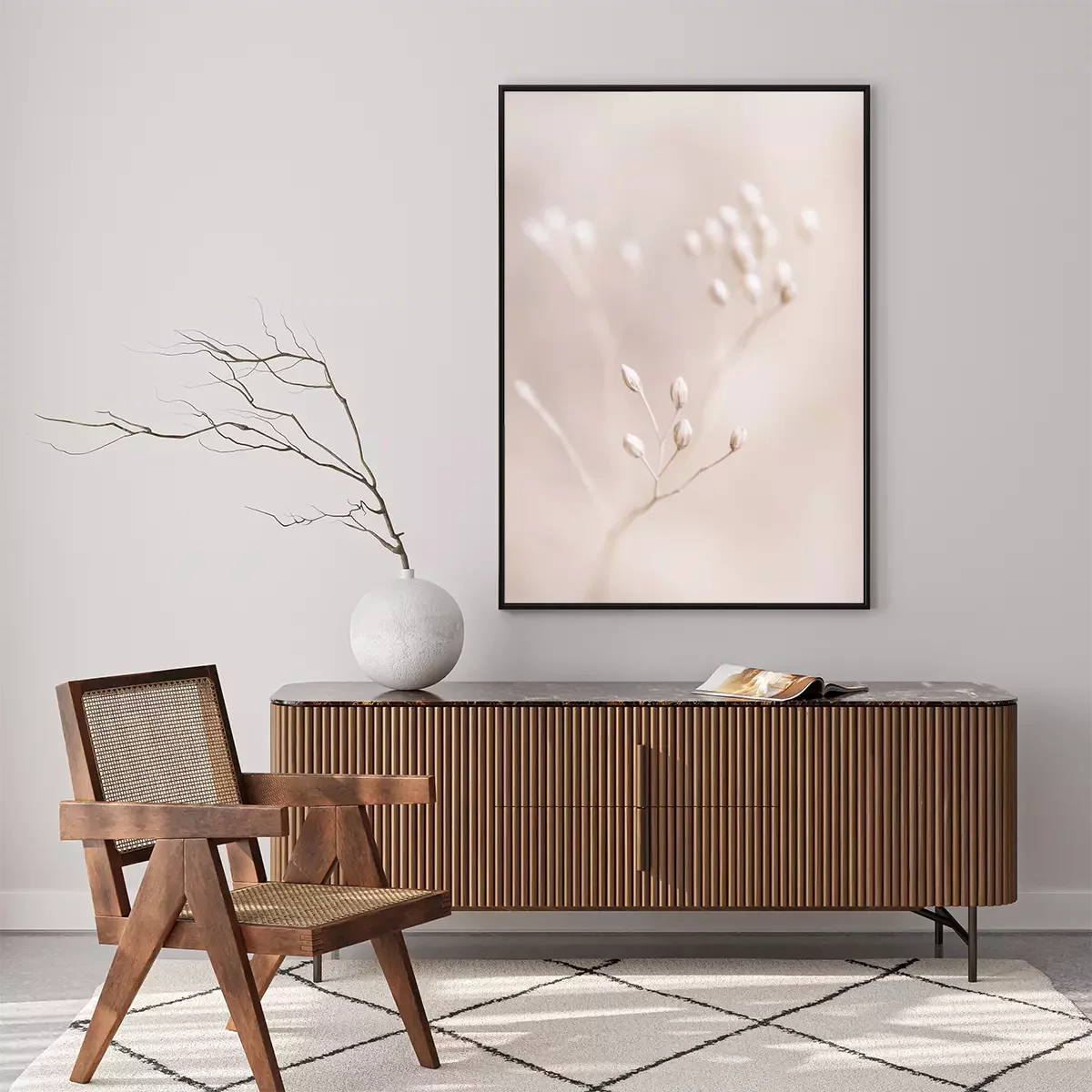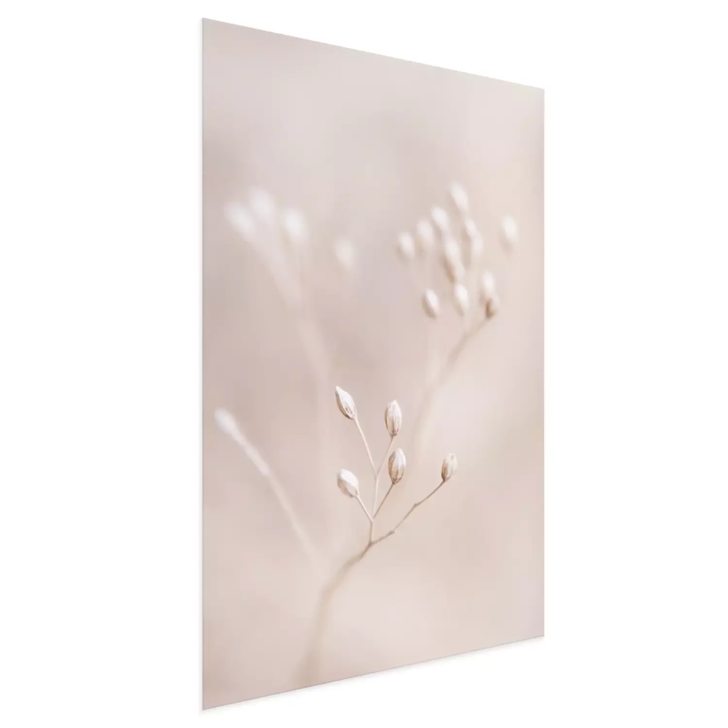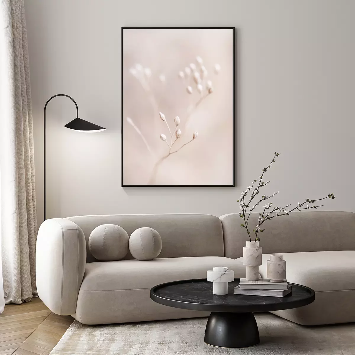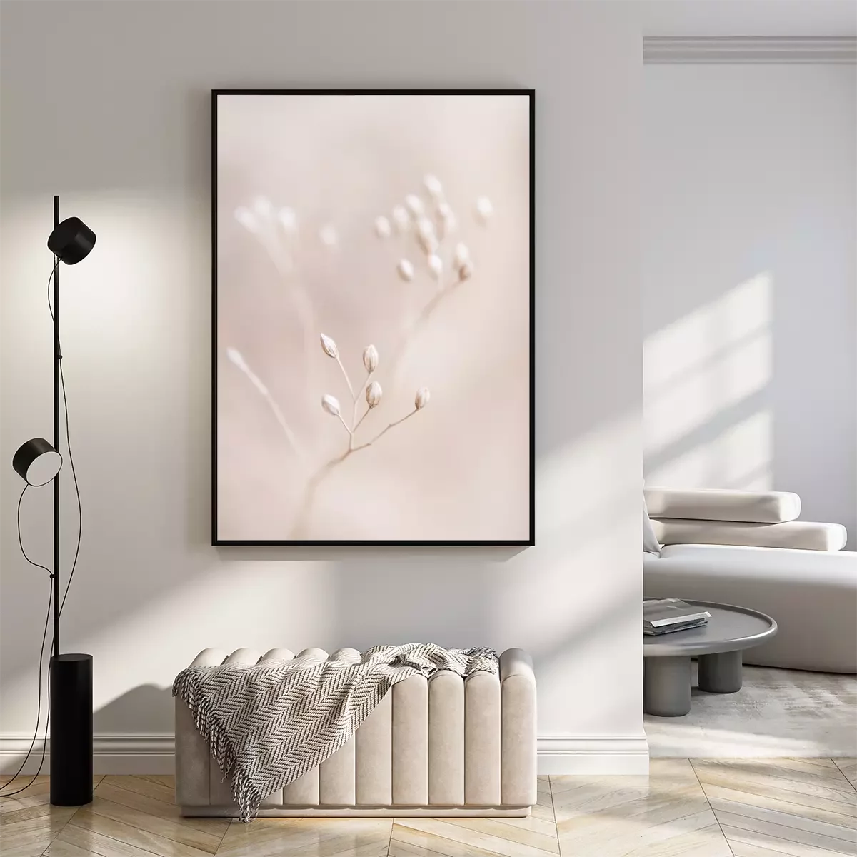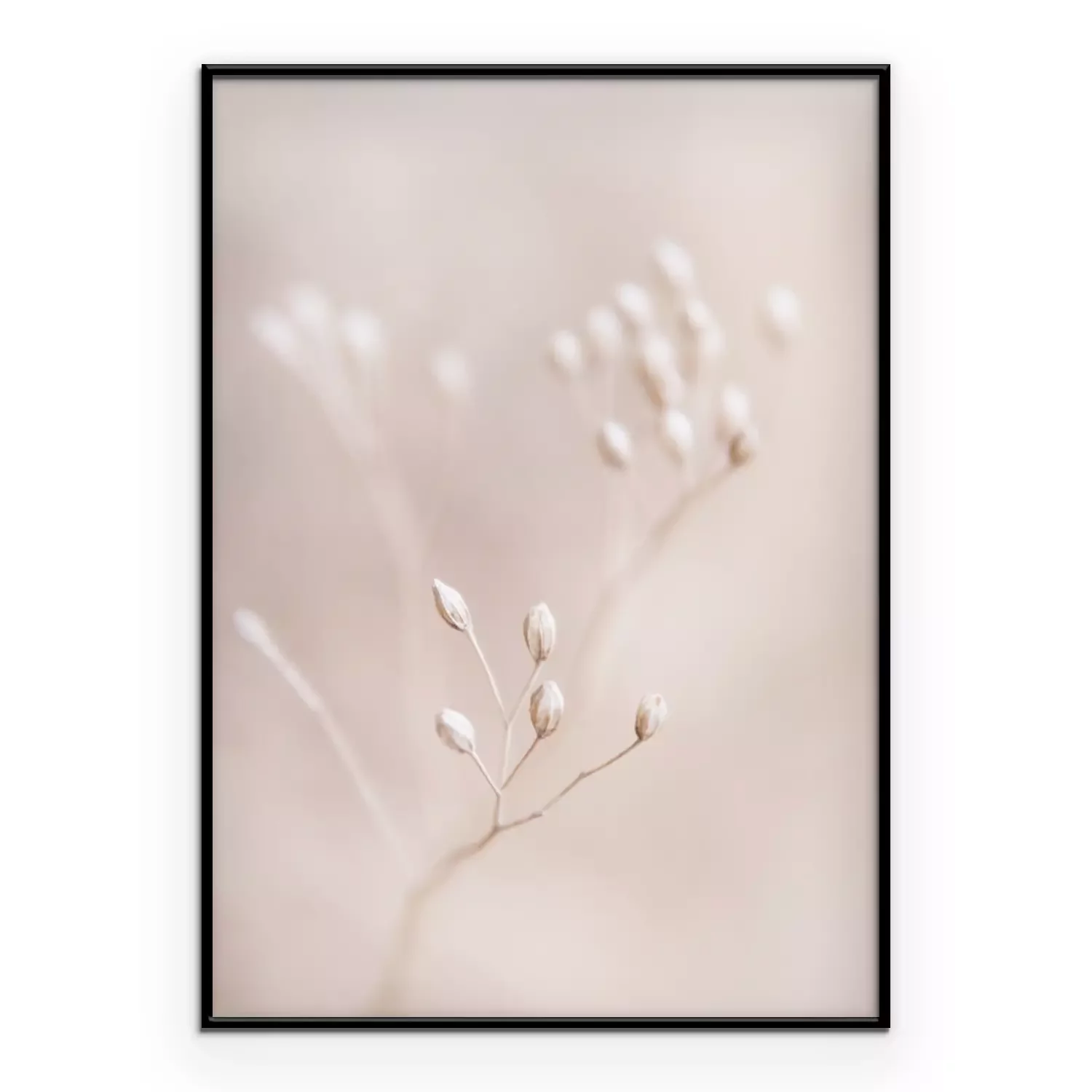 Poster  Dry flowers plant floral branch on soft beige pastel background. Blurred selective focus. Pattern with neutral natural colors.