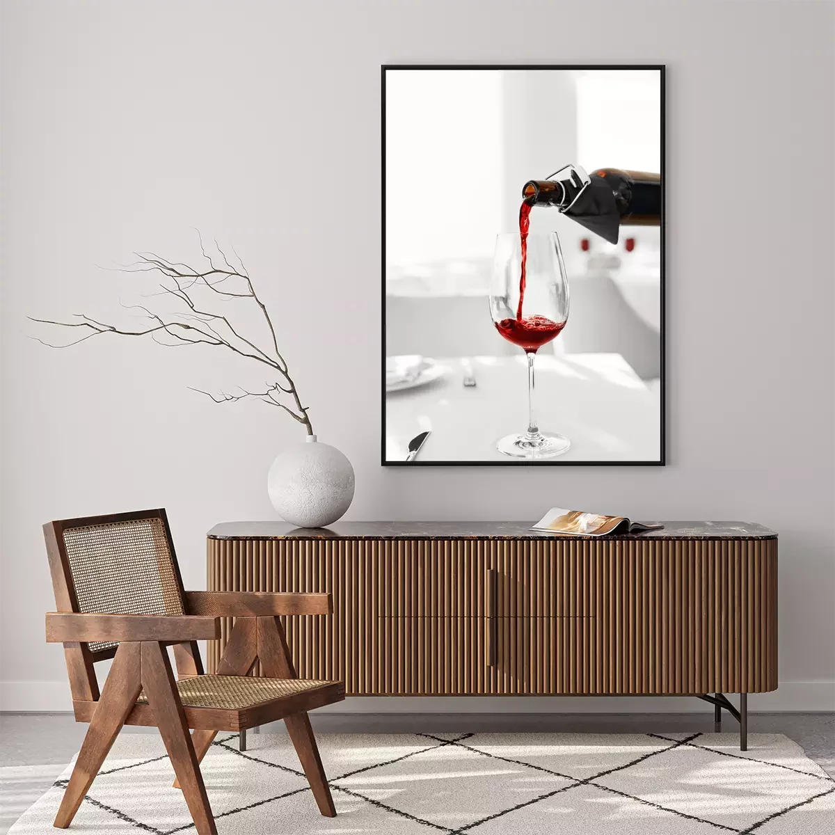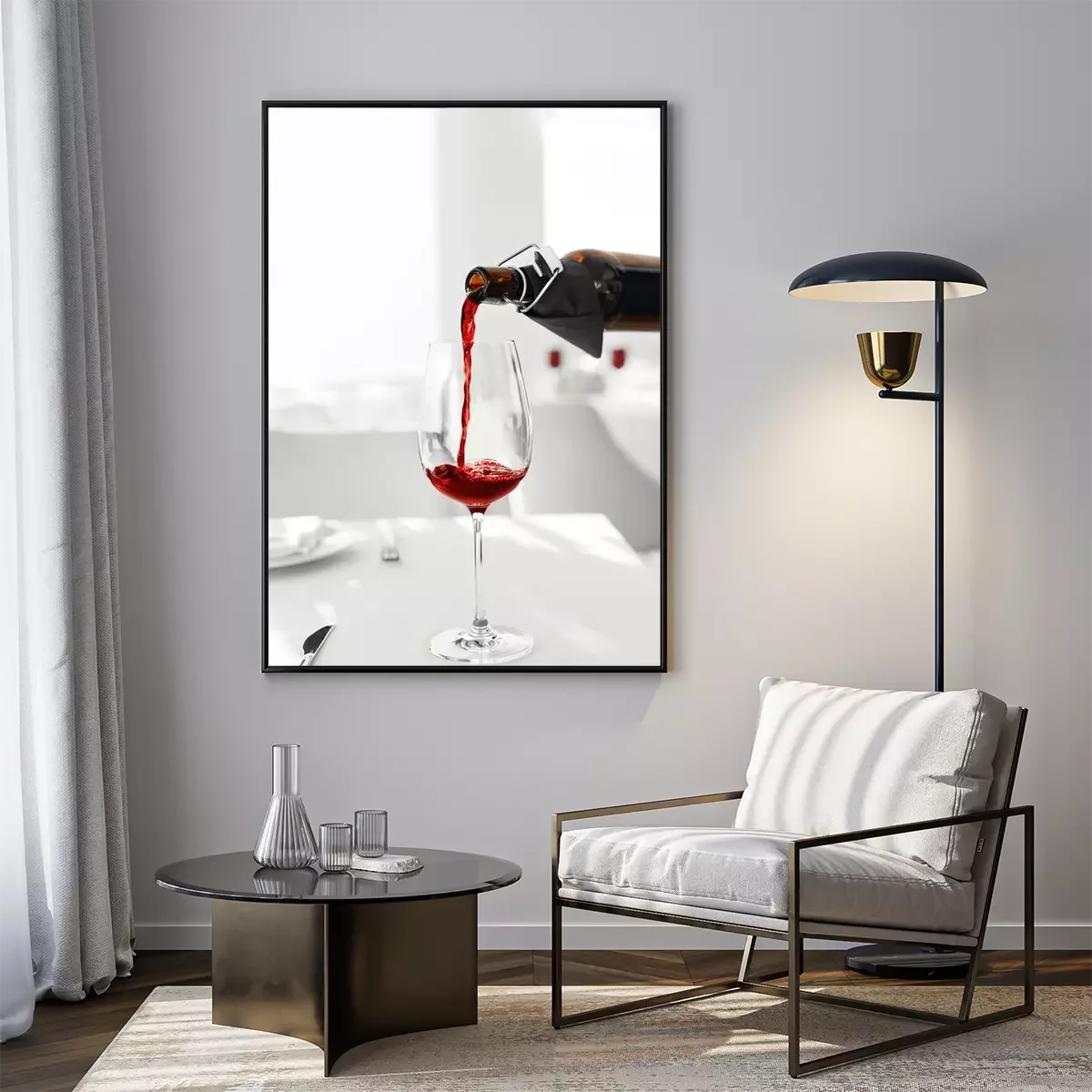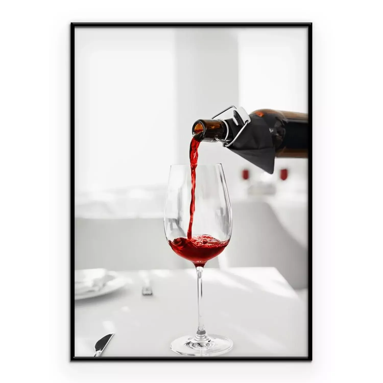 Poster  Du vin. Fin, haut, Verser, rouge, vin, bouteille, vin, verre, restaurant Boissons alcoolisées. Célébration Et Style De Vie.