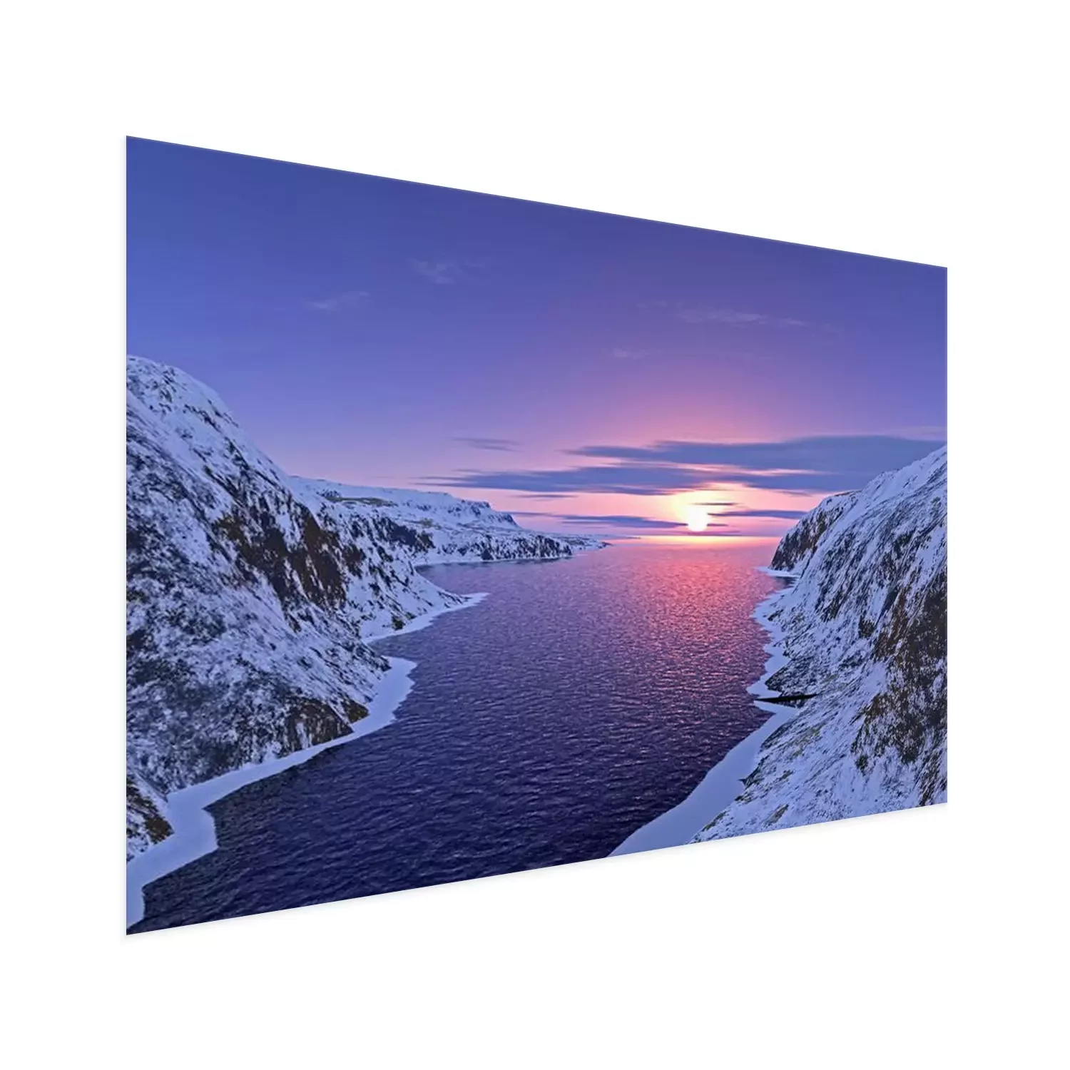 Poster  Eau entourée de pentes enneigées
