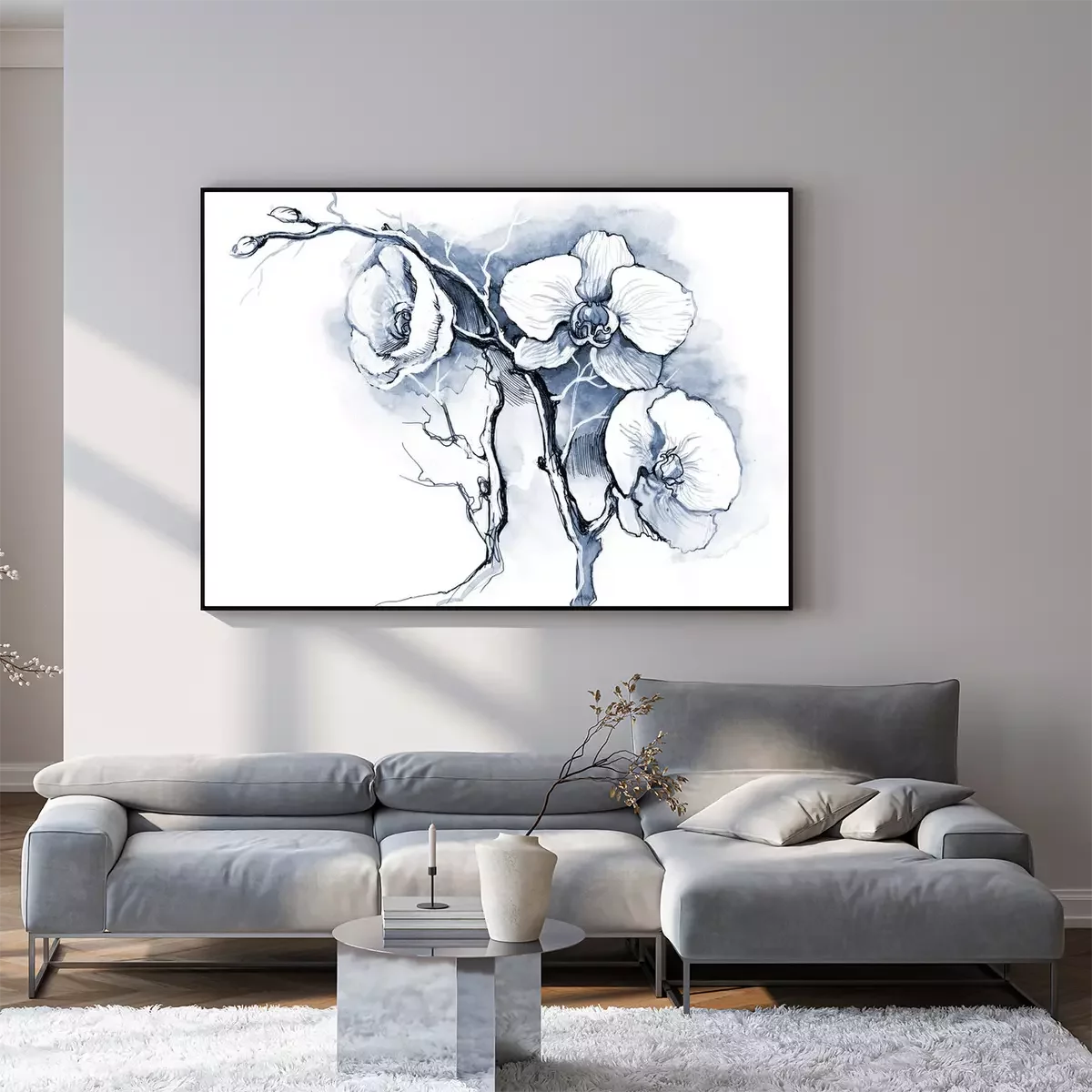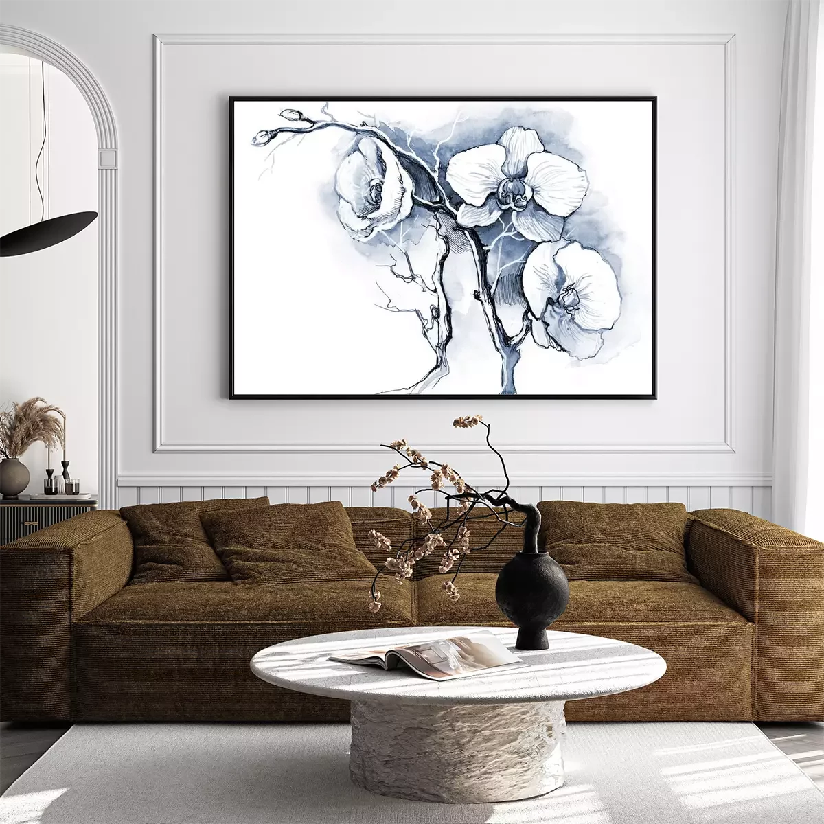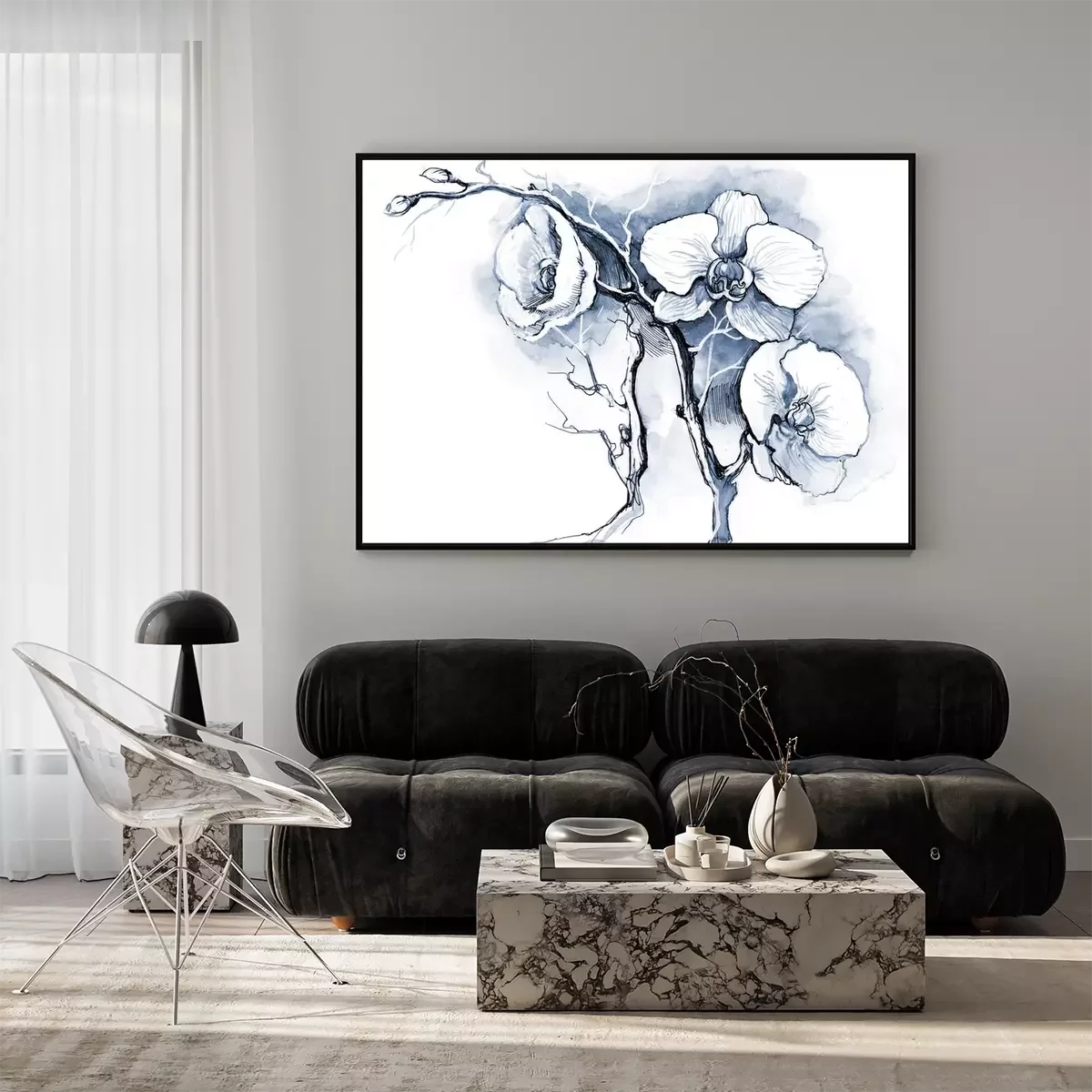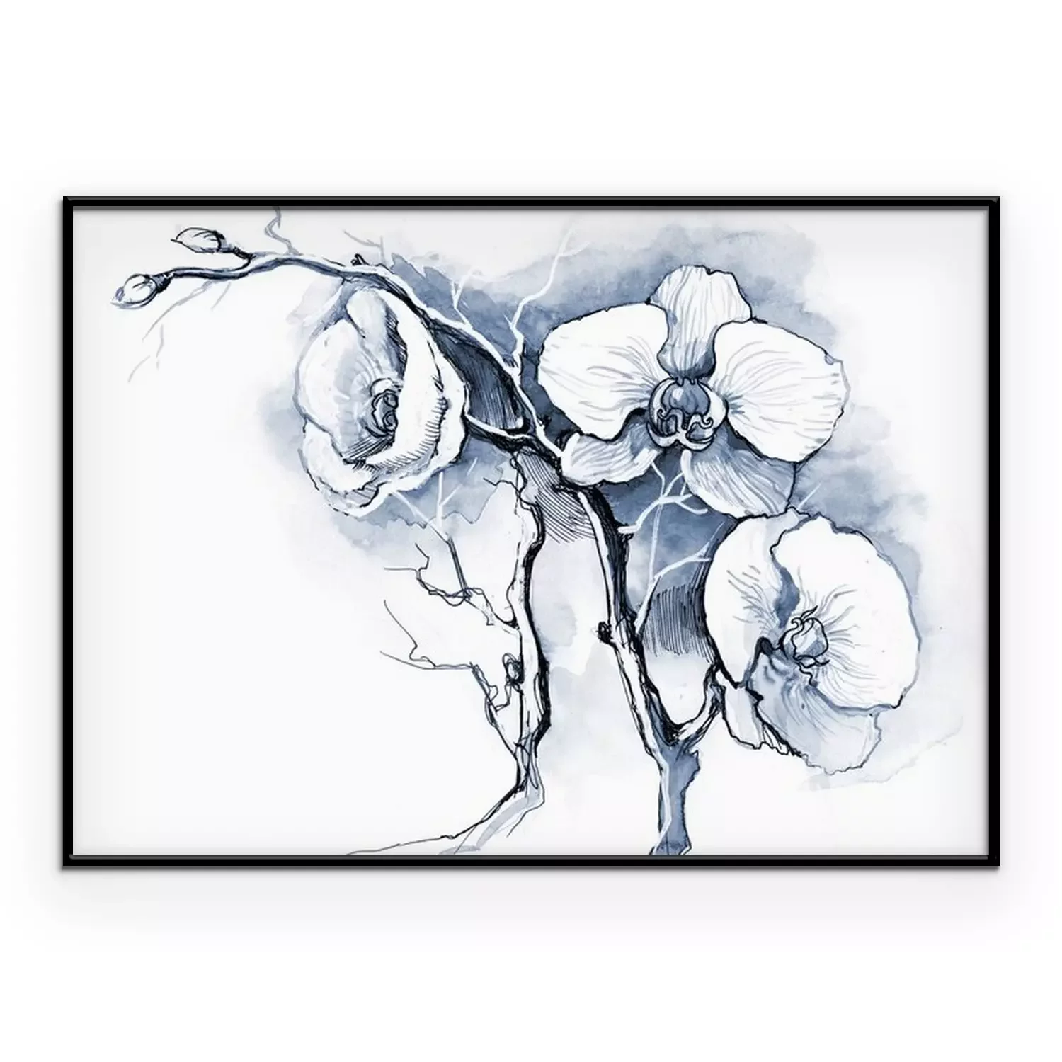 Poster : Een delicate orchidee getekend met een scherpe lijn