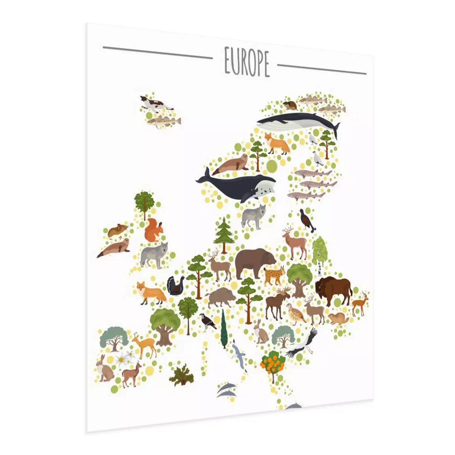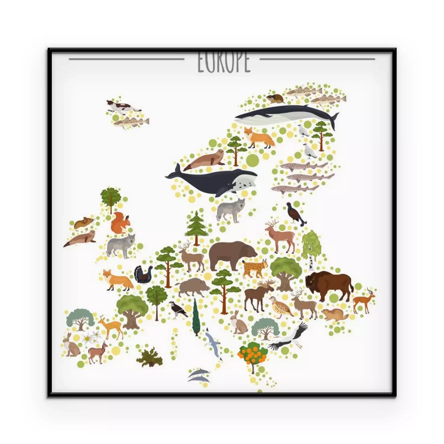 Poster  Éléments de constructeur plat européen flore et faune carte. Animaux, oiseaux et vie marine isolé sur grand ensemble blanc. Construisez votre propre collection d'infographies géographiques