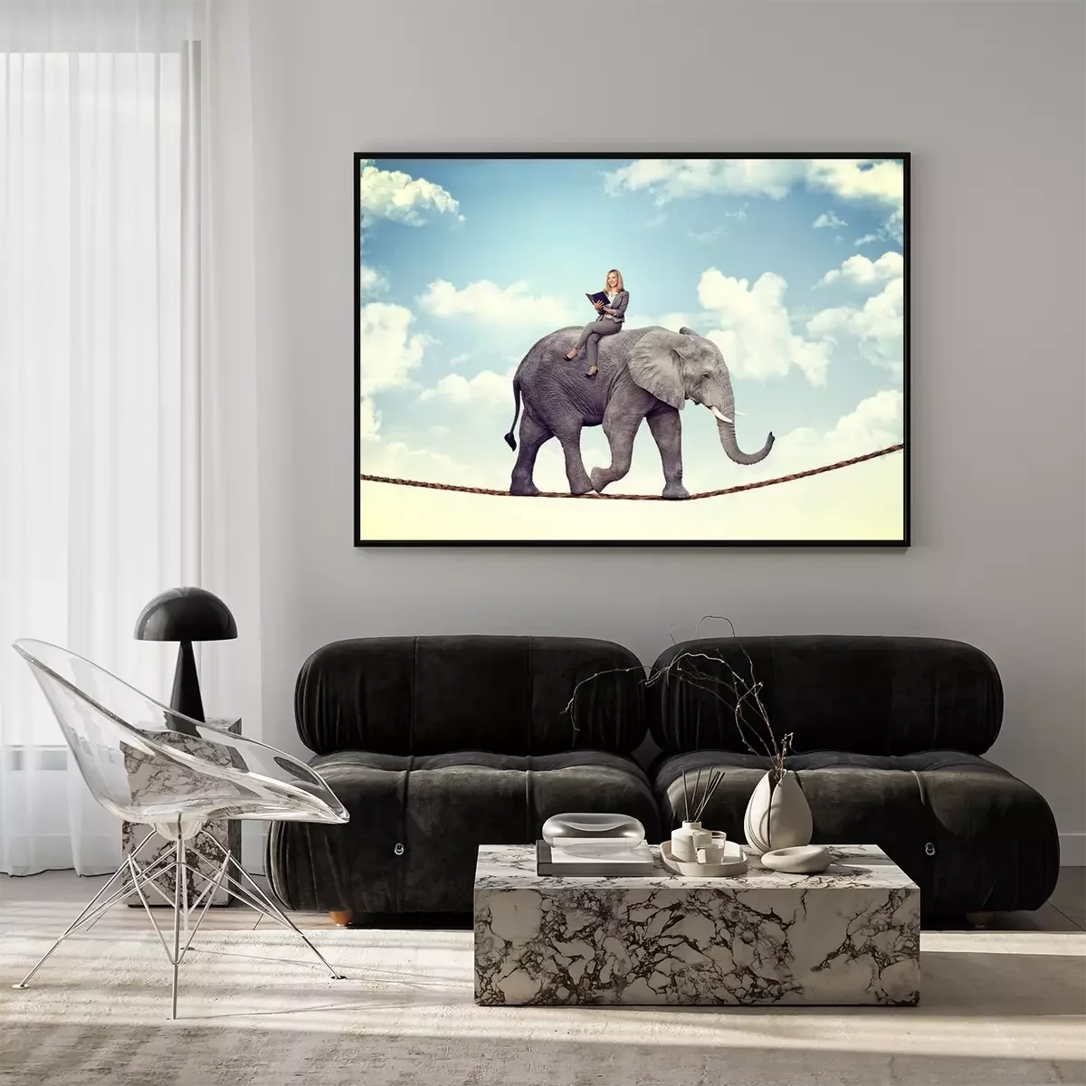 Poster  Éléphant en équilibre sur une corde raide