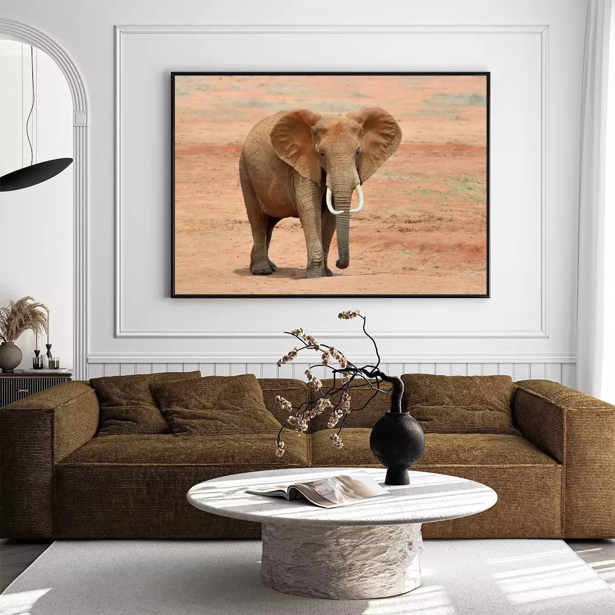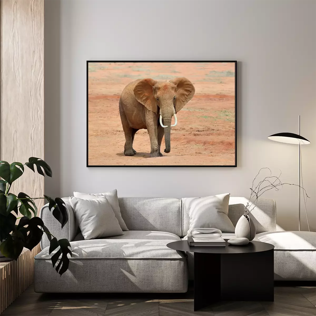 Eléphant dans la poussière rouge