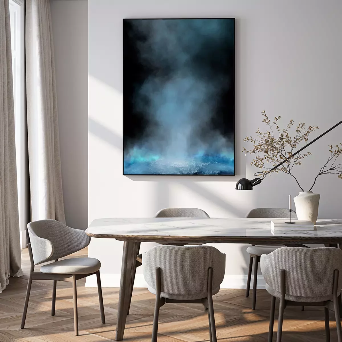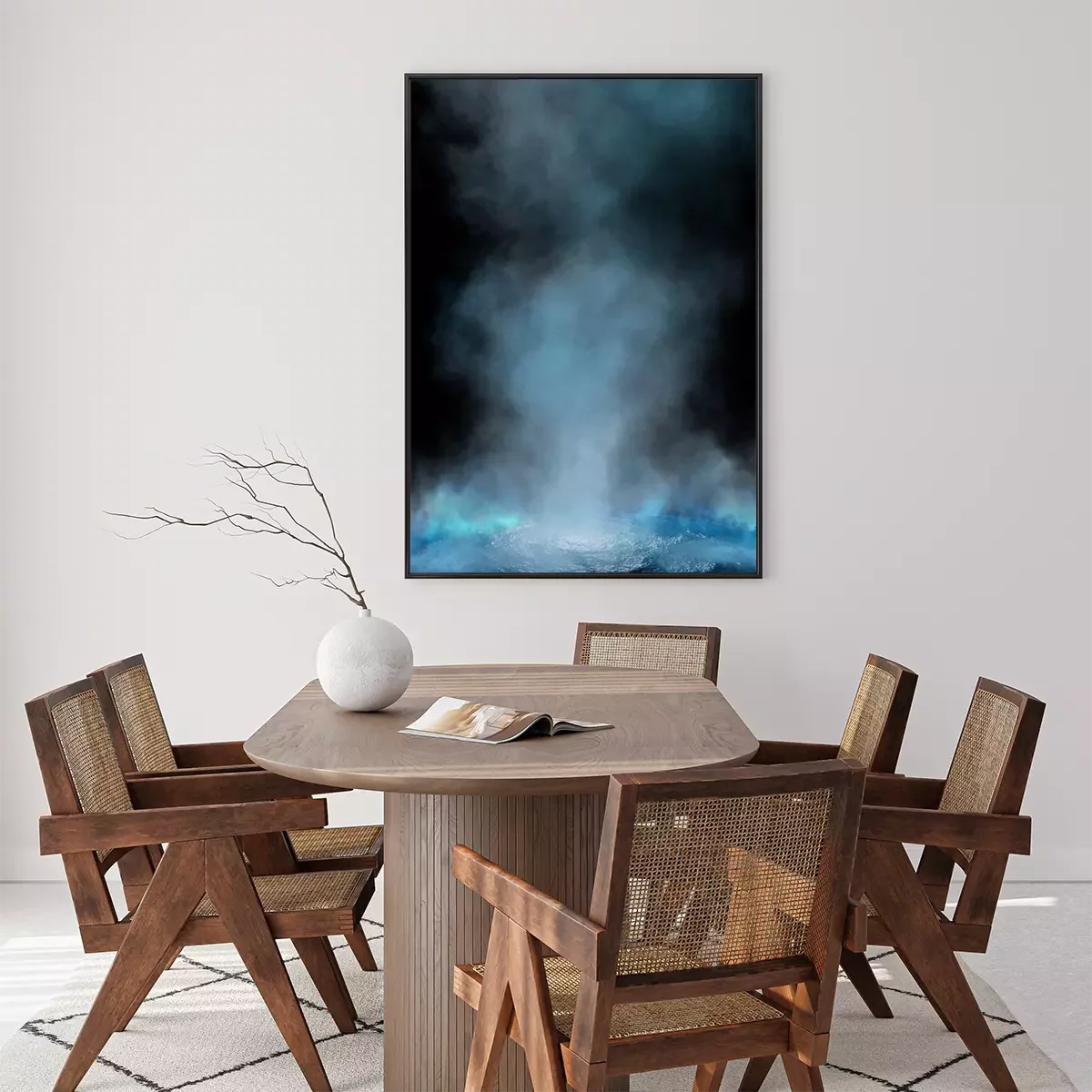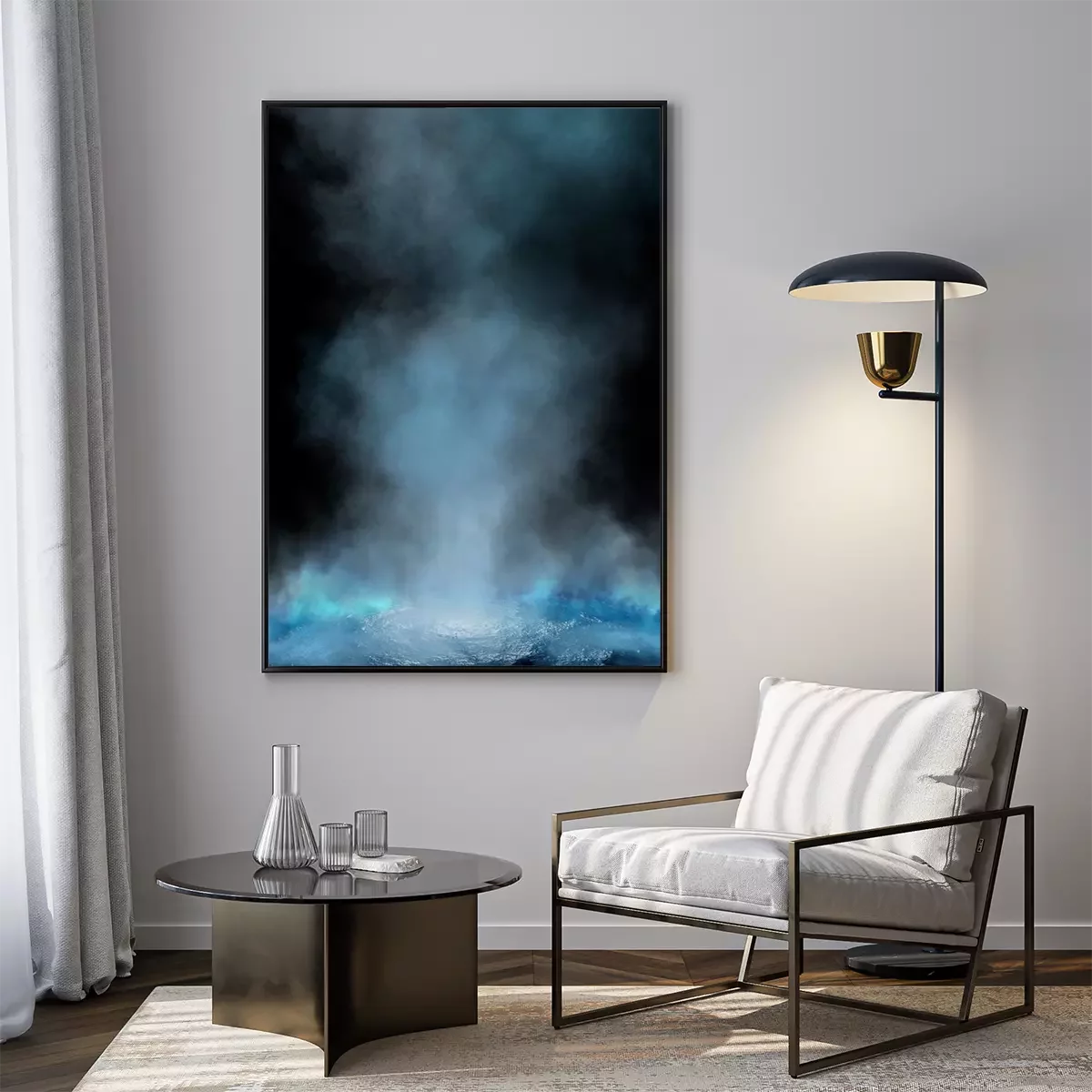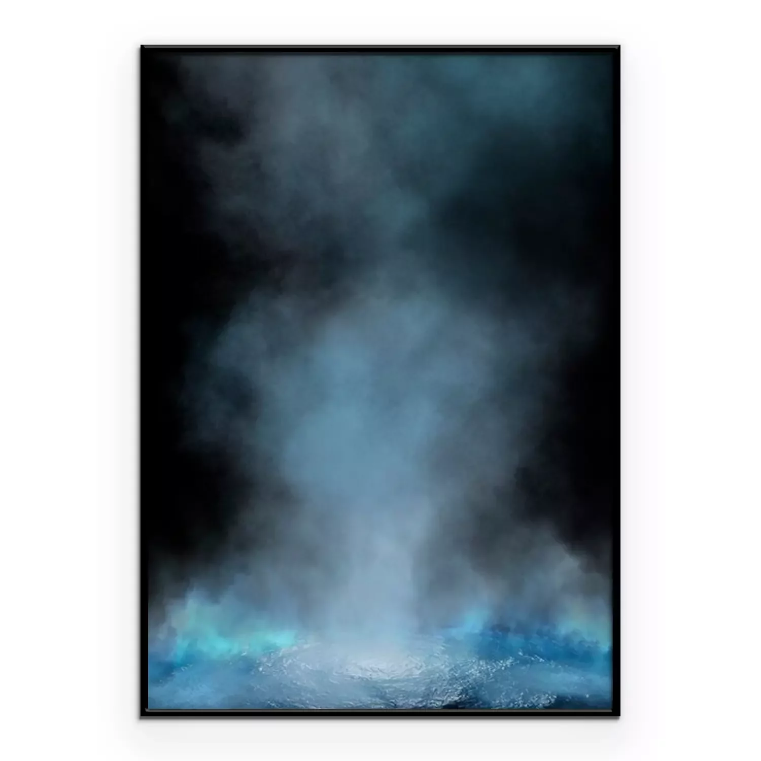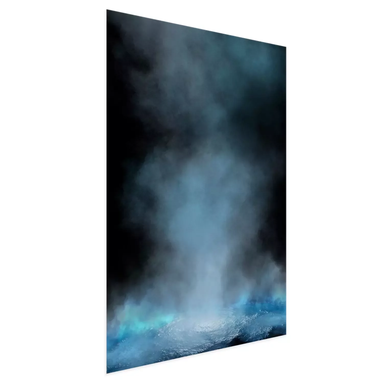 Poster  Empty futuristic dramatic scene. Abstract dark landscape, street. Neon light fluid element. Night view, neon blue light. Fantasy background. 3D illustration