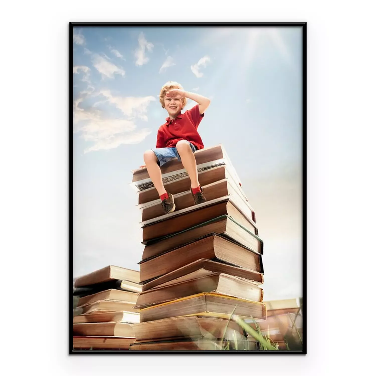 Poster  Enfant assis sur une pile de livres
