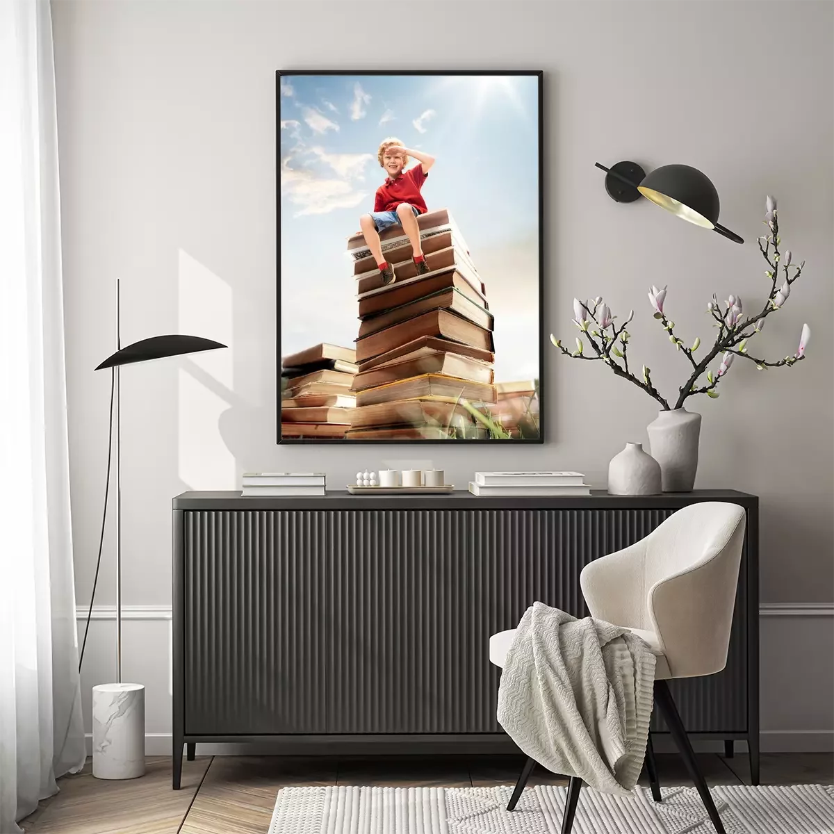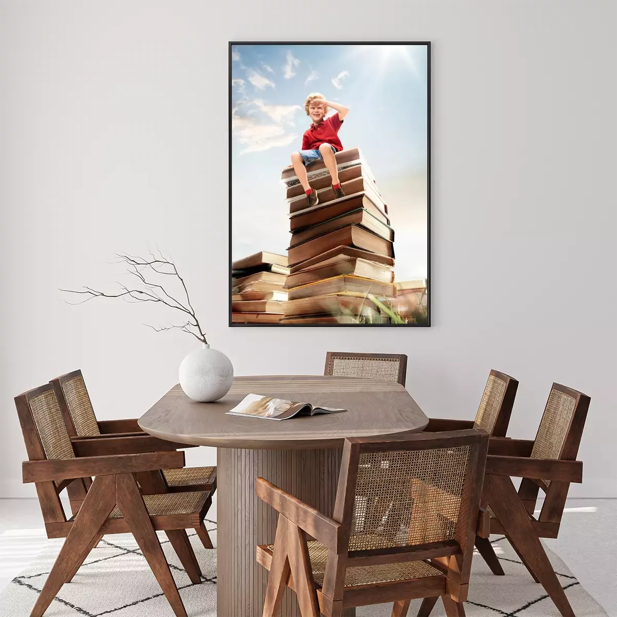 Poster : Enfant assis sur une pile de livres