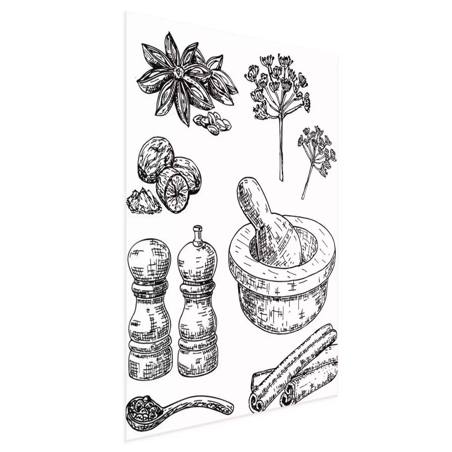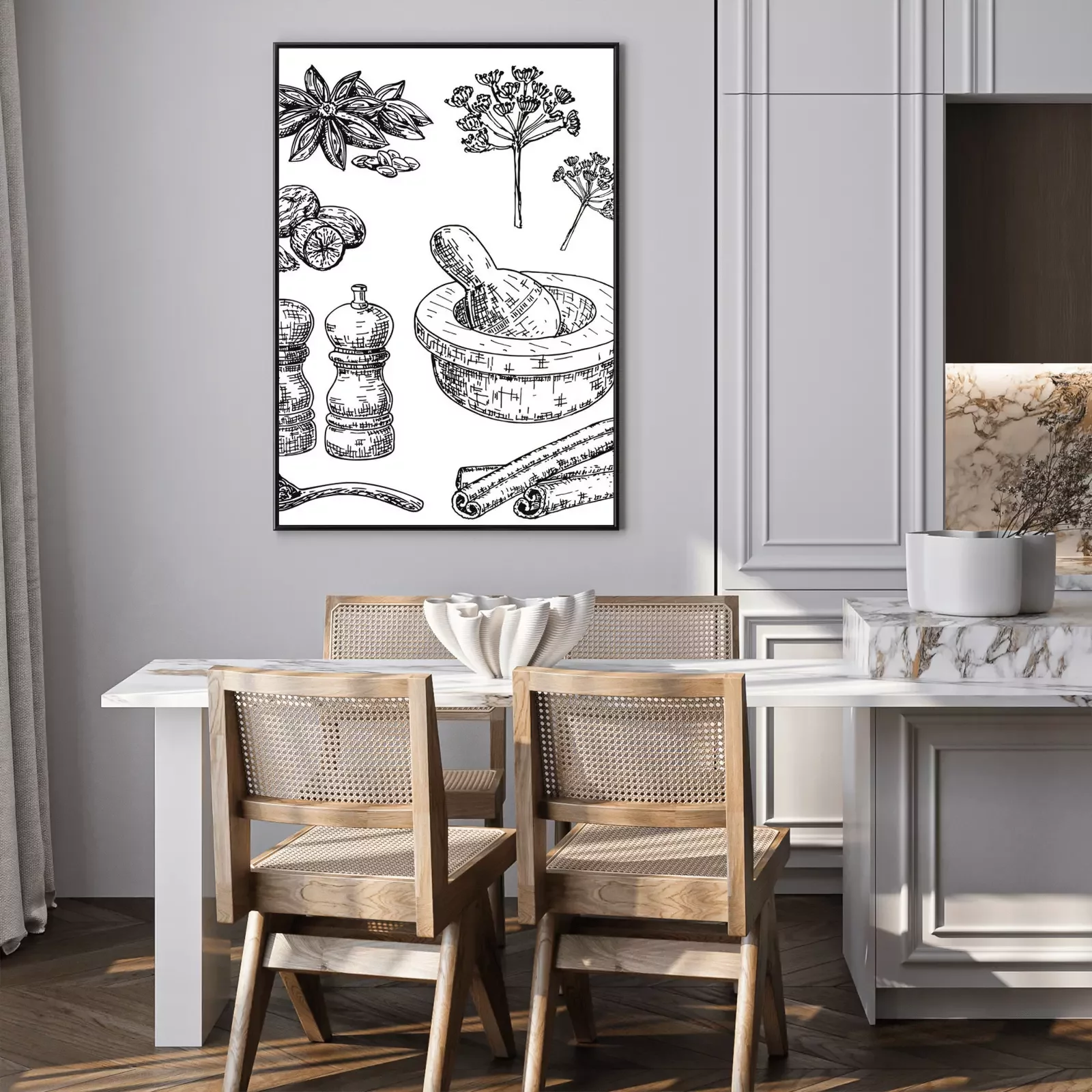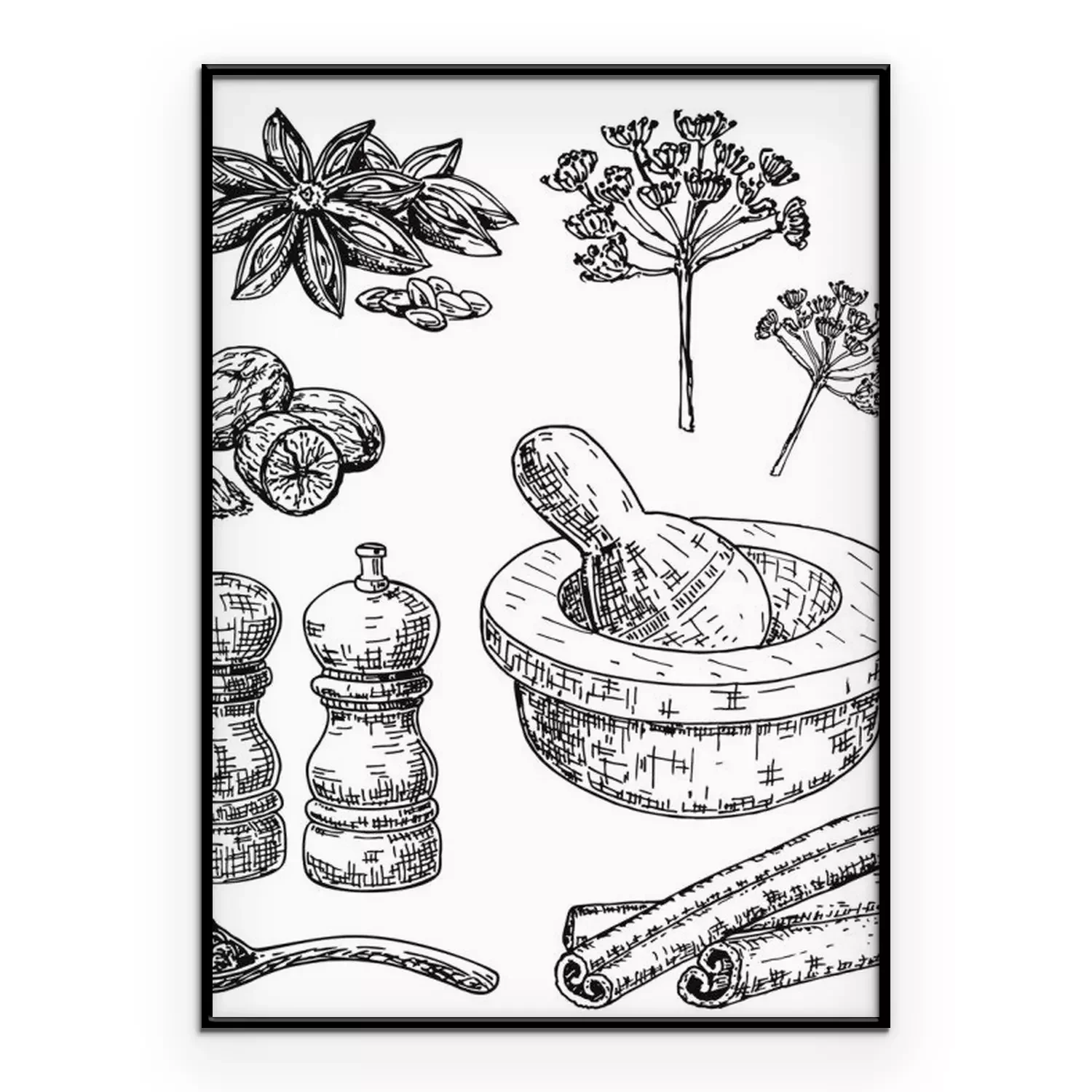 Poster  Ensemble d'herbes et d'épices culinaires dessinés à la main Vector encre