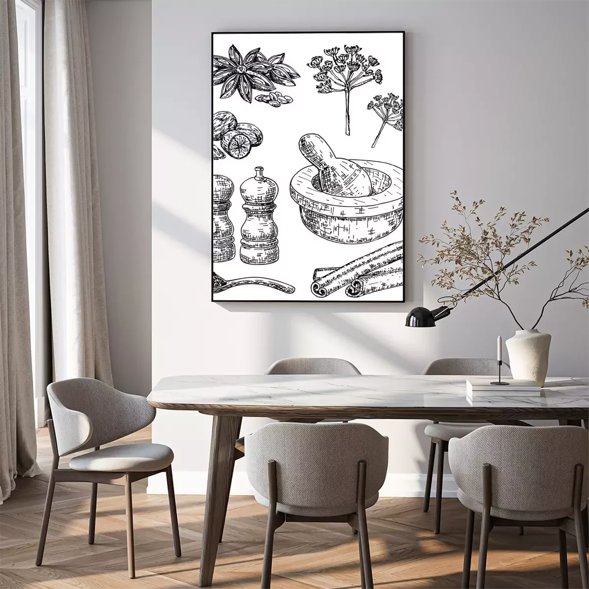 Poster : Ensemble d'herbes et d'épices culinaires dessinés à la main Vector encre