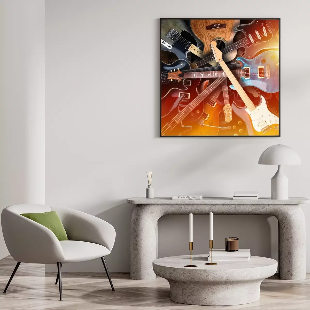 Poster  Ensemble de guitares électriques posées l'une sur l'autre