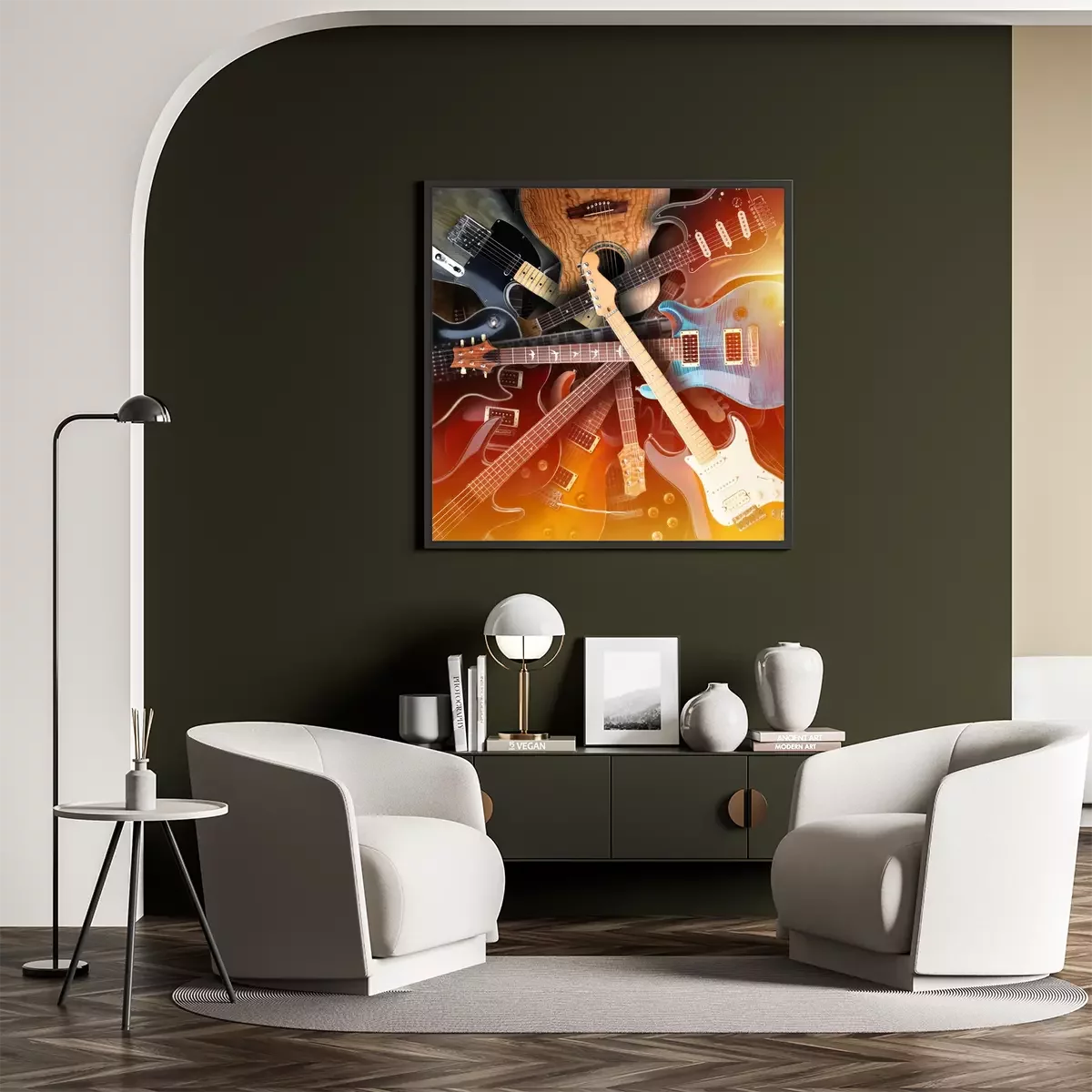 Poster : Ensemble de guitares électriques posées l'une sur l'autre