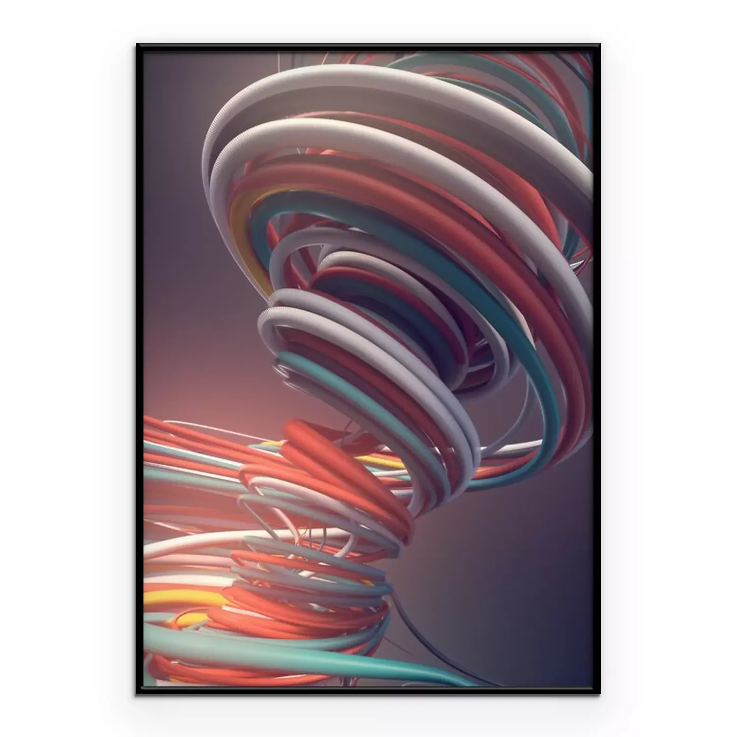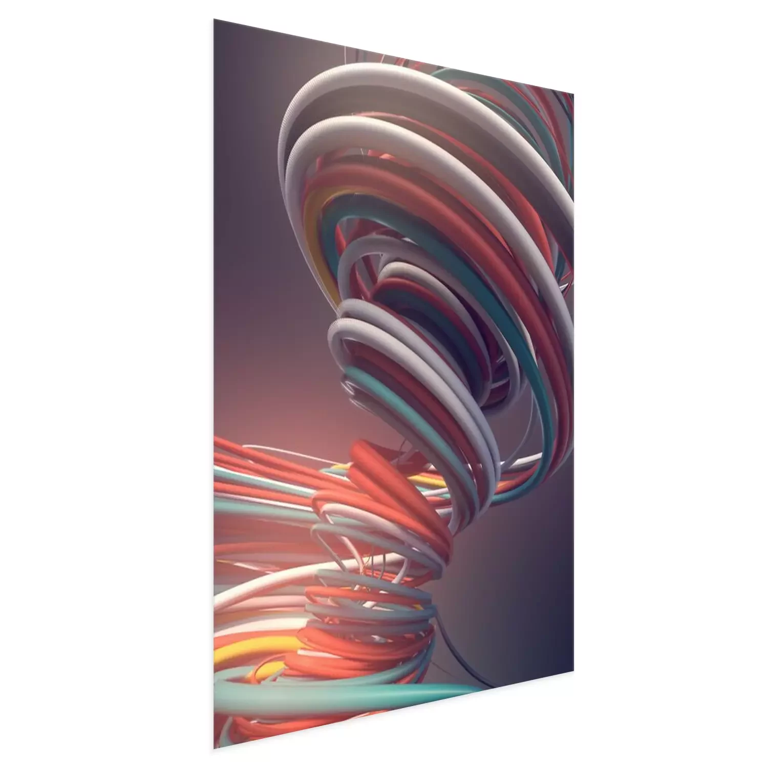 Poster : Entrelacement des courbes bleues rouges et blanches abstraites. Rendu 3D
