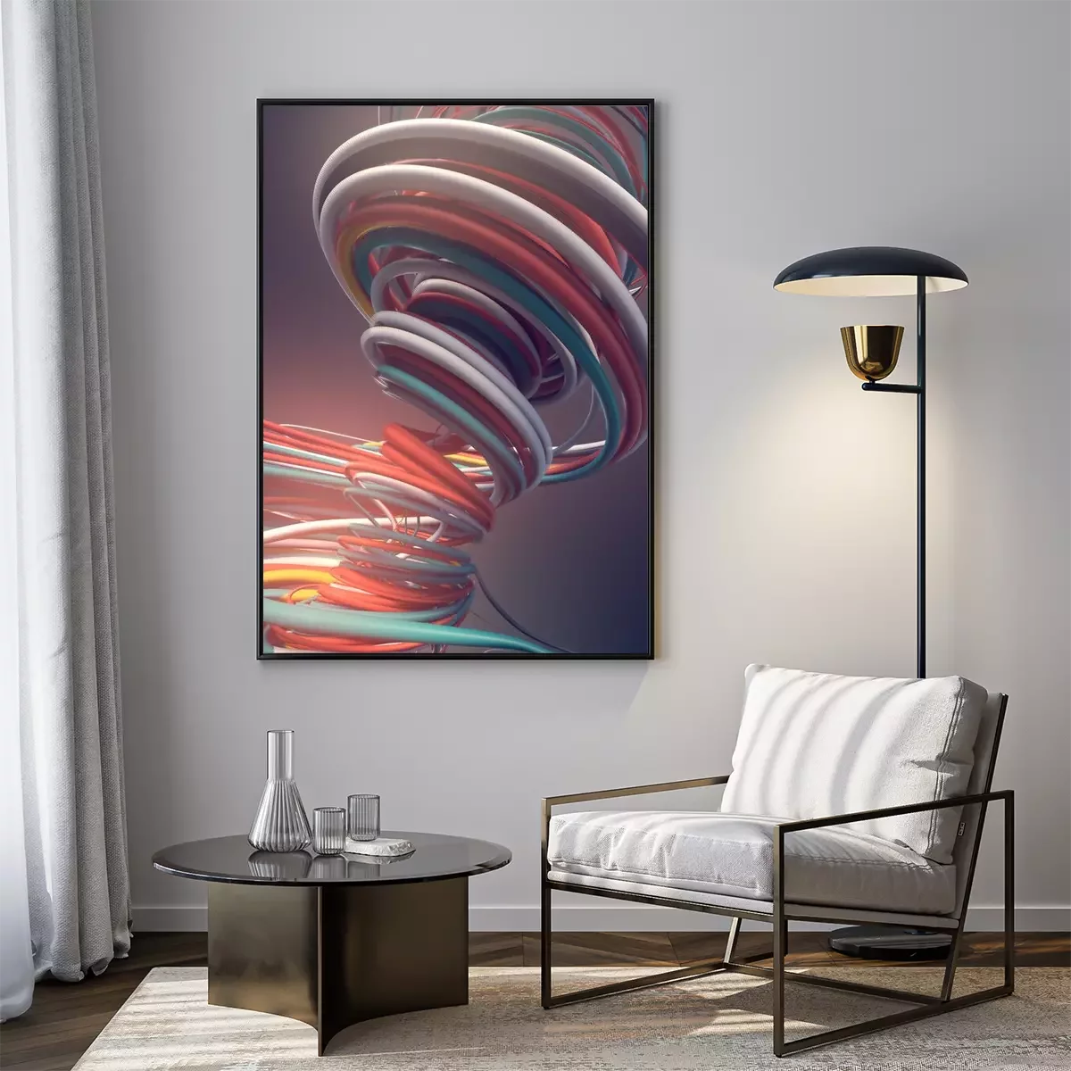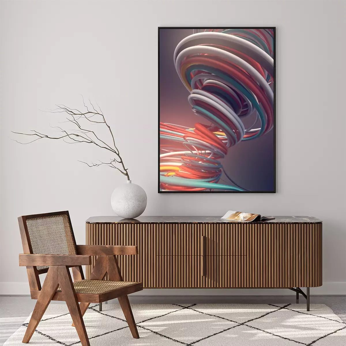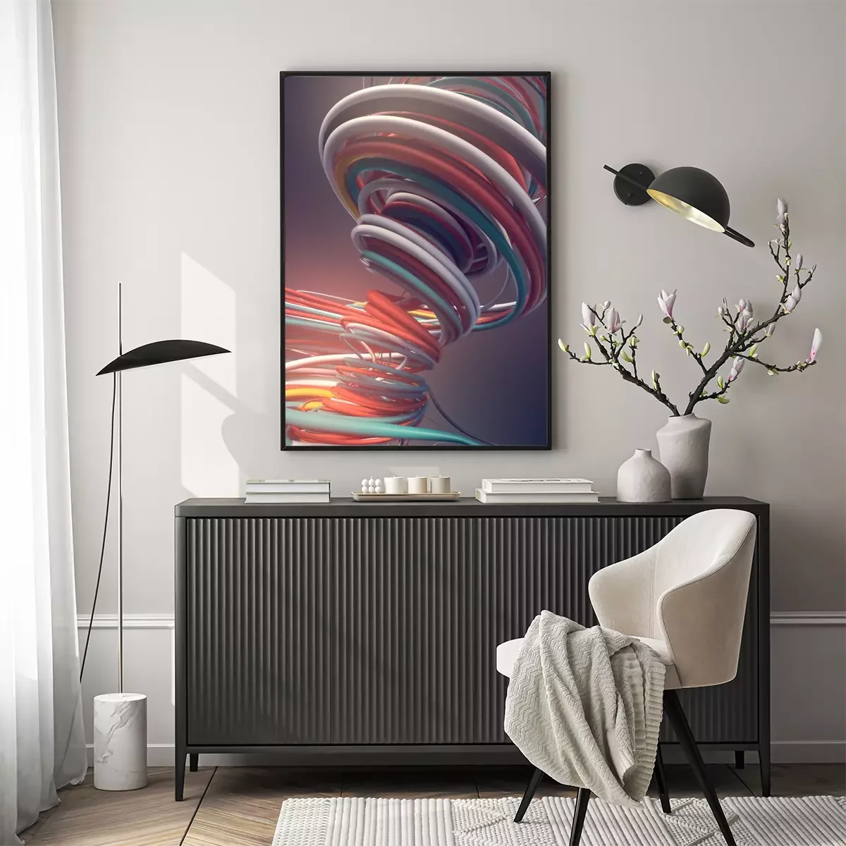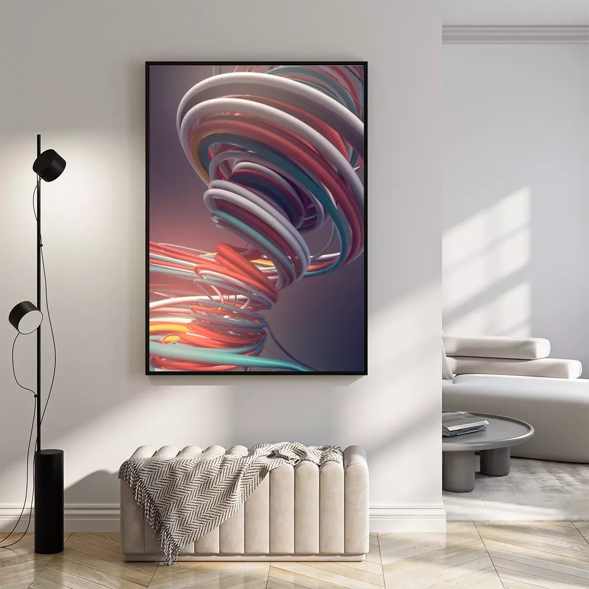 Poster  Entrelacement des courbes bleues rouges et blanches abstraites. Rendu 3D