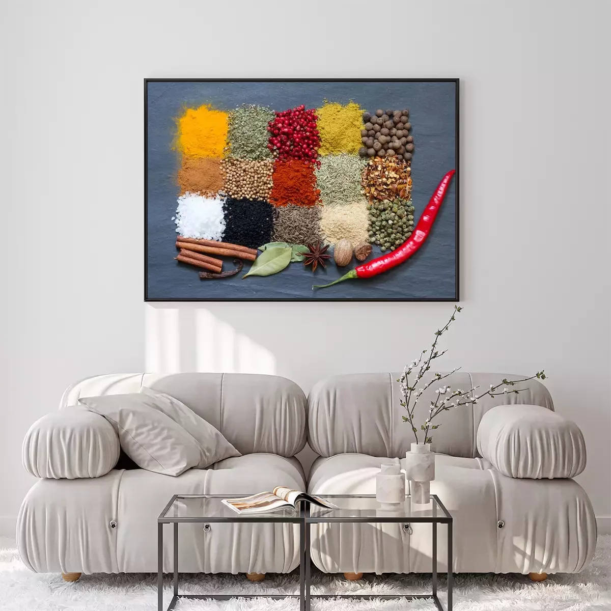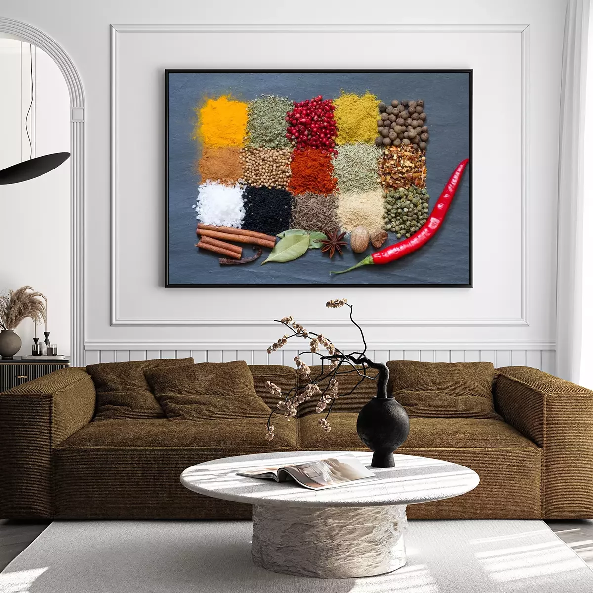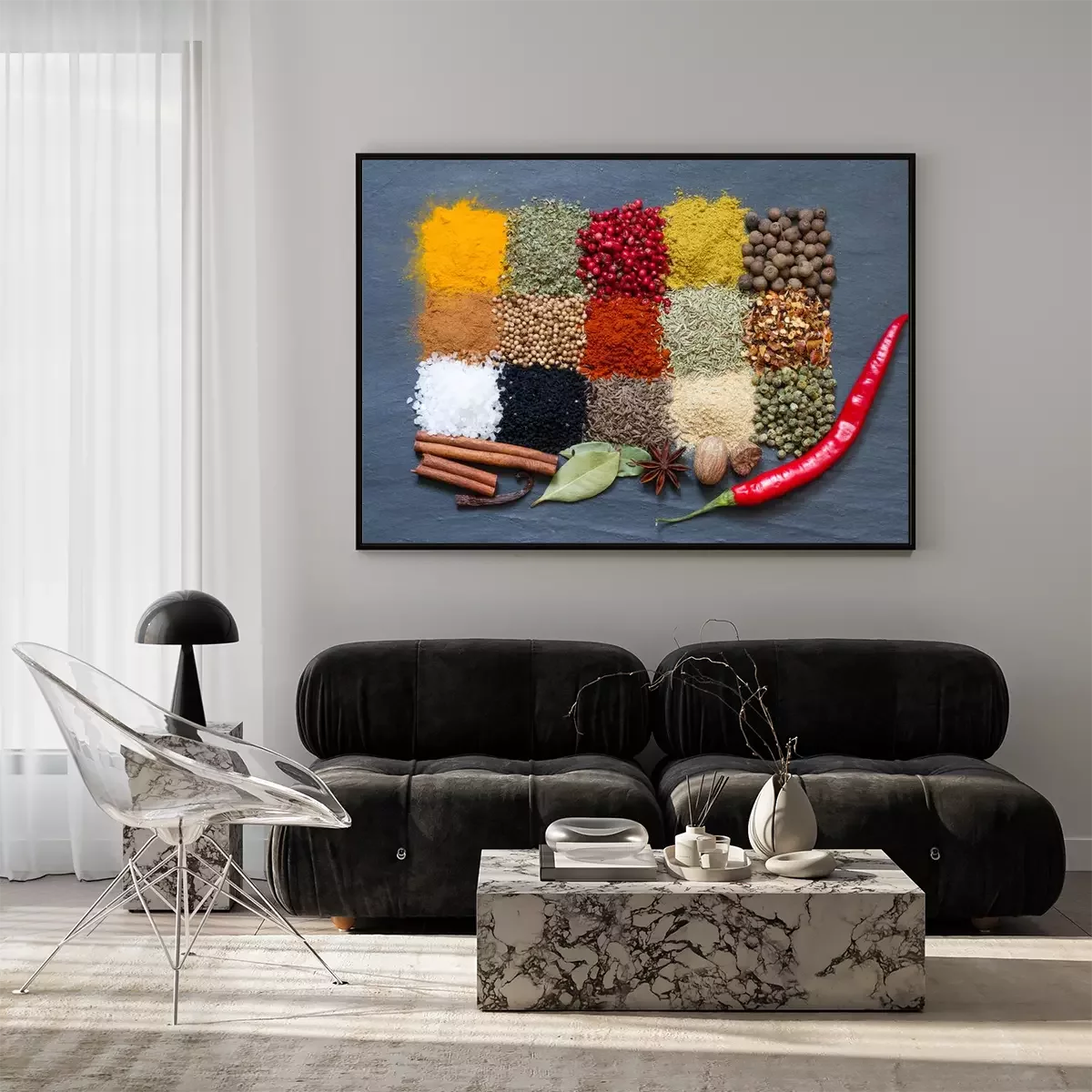 Poster : Épices, aromates, noir, marbre, résumé, fond