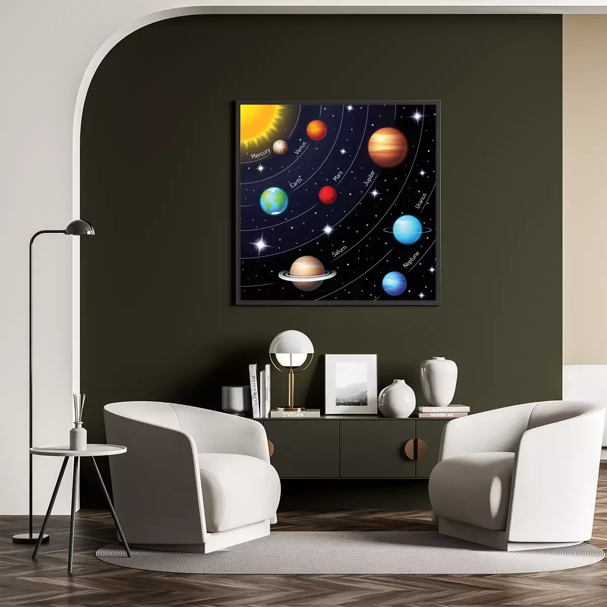 Poster : Espace extra-atmosphérique pour enfants planètes de dessin animé avec des noms