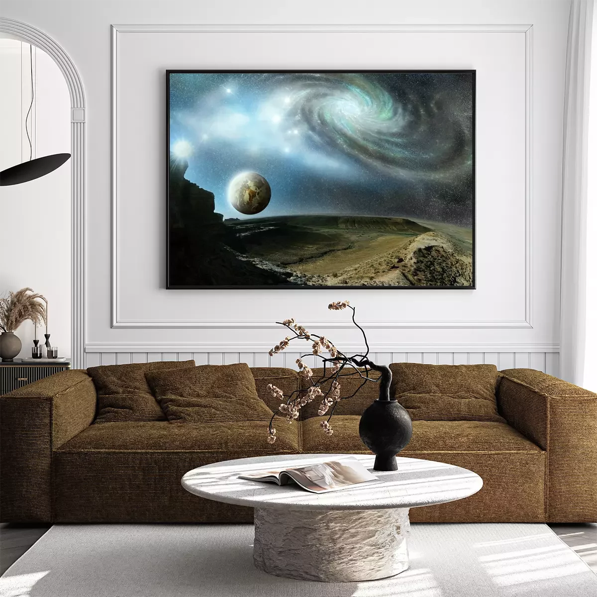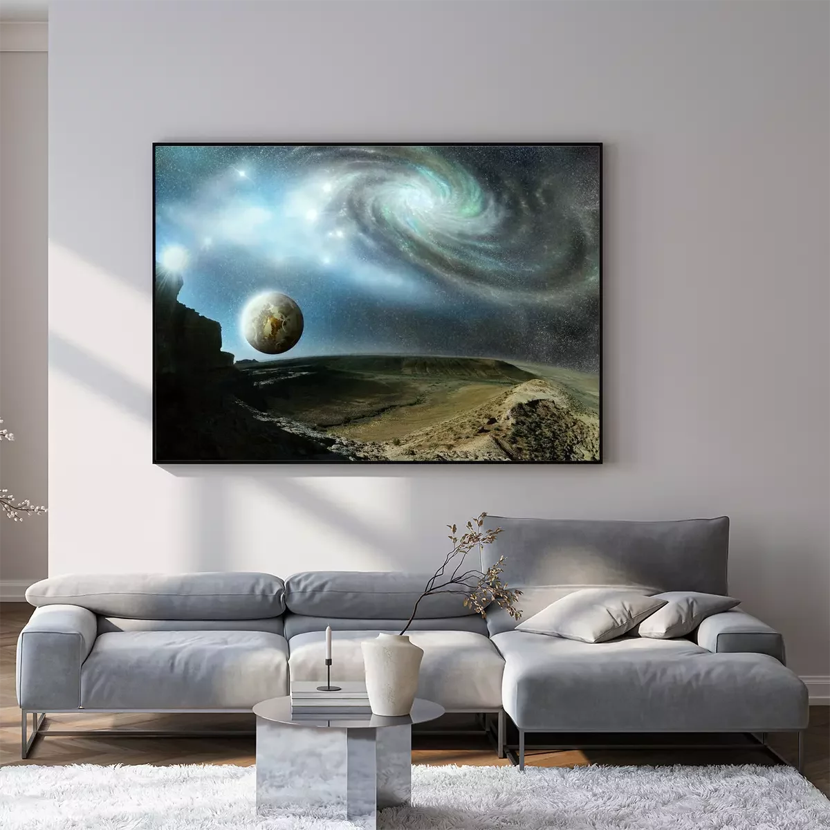Poster  Espace extra-atmosphérique s'étendant sur une planète inconnue