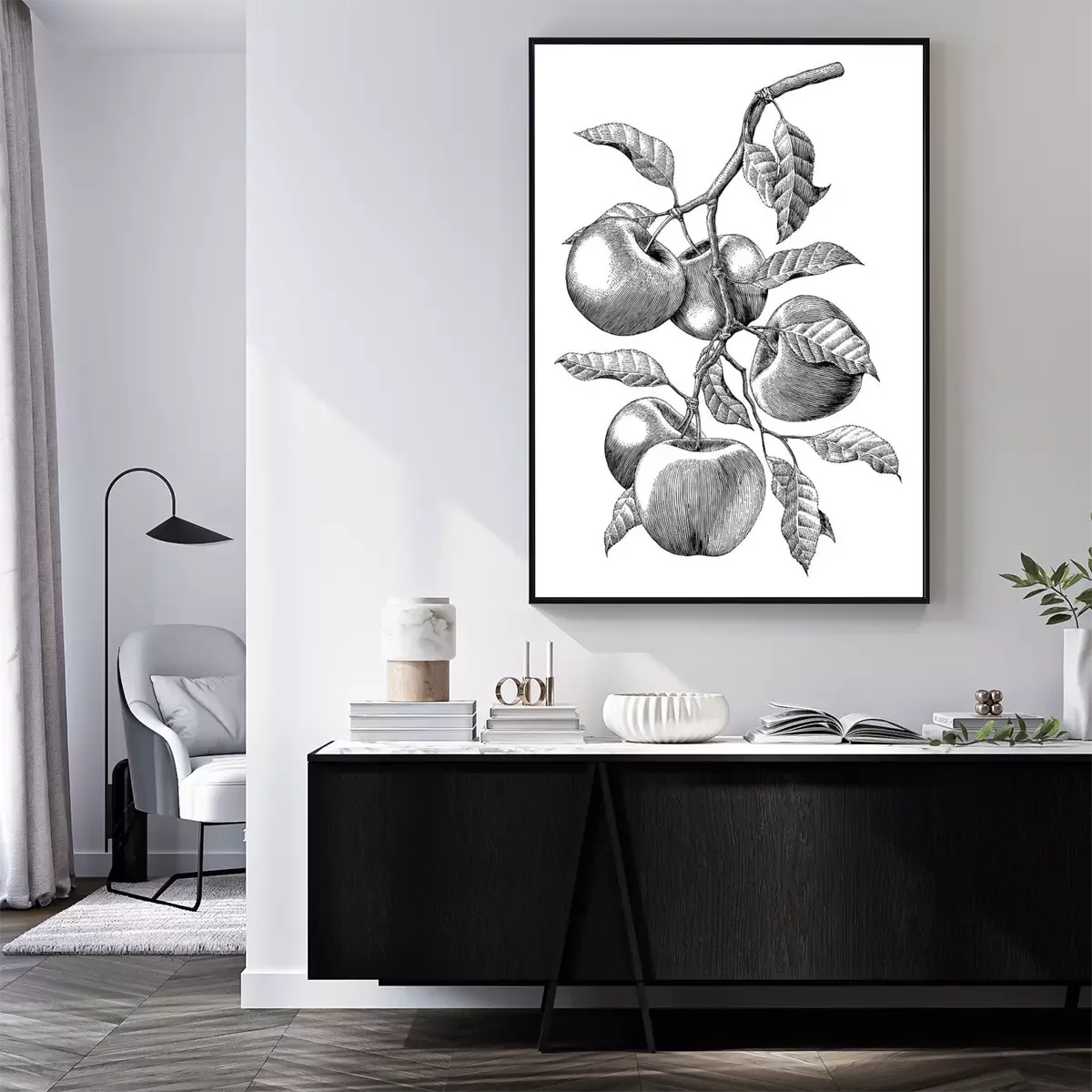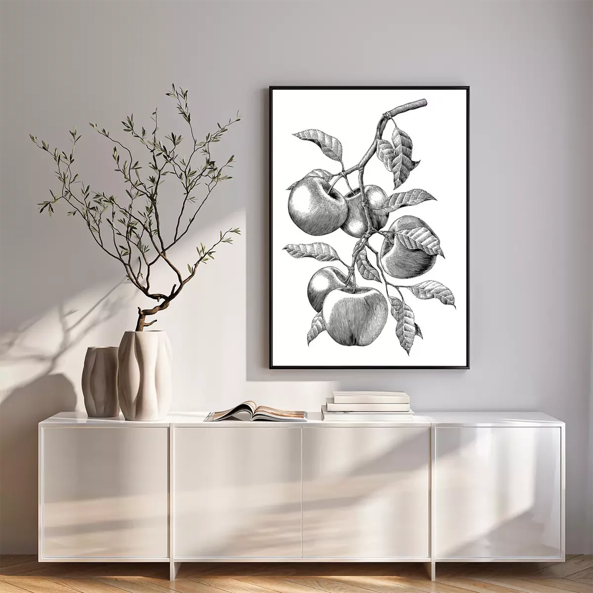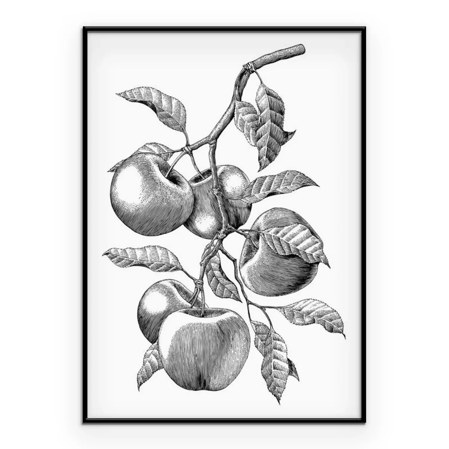 Poster : Esquisse d'une branche de pommier avec des fruits