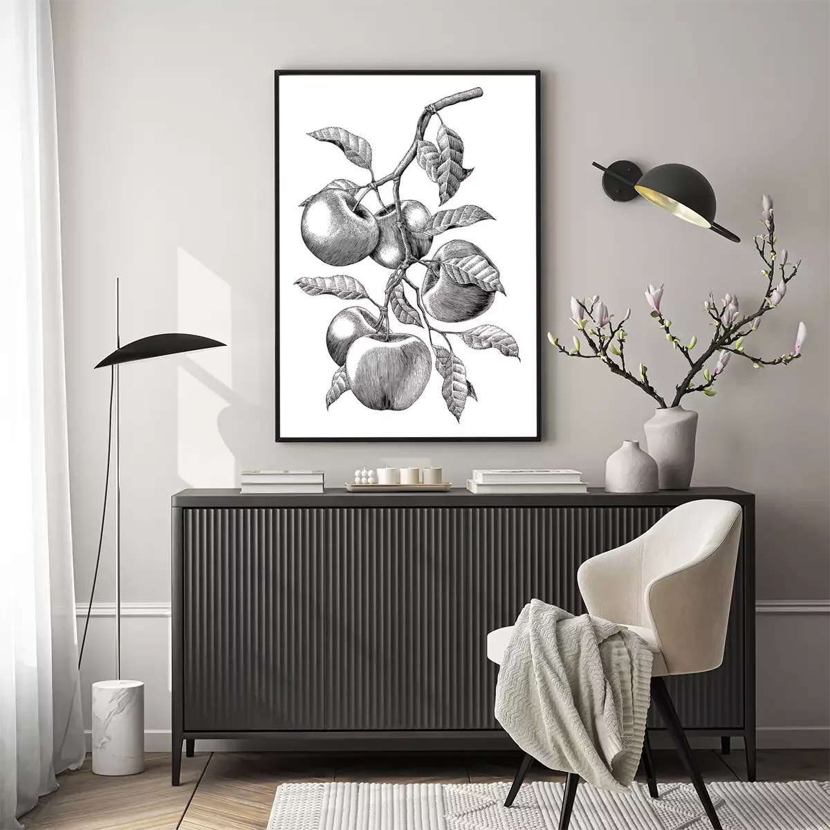 Poster  Esquisse d'une branche de pommier avec des fruits