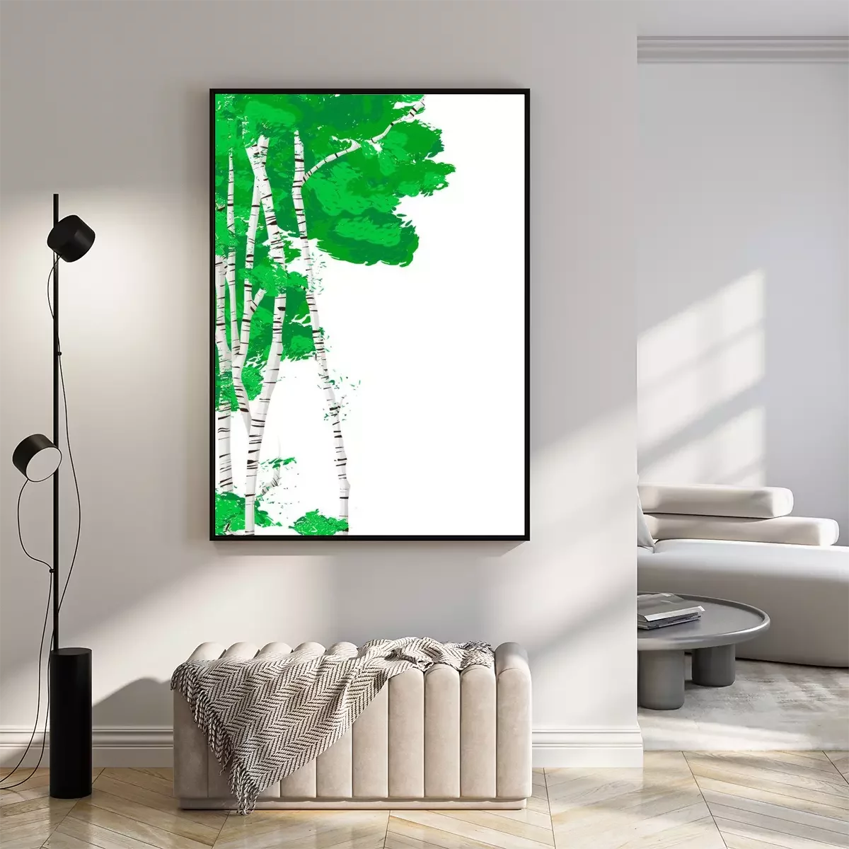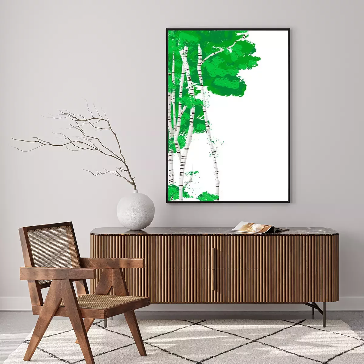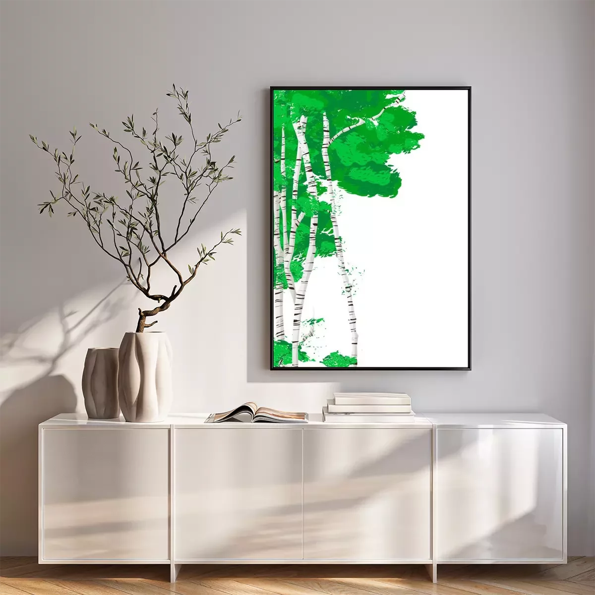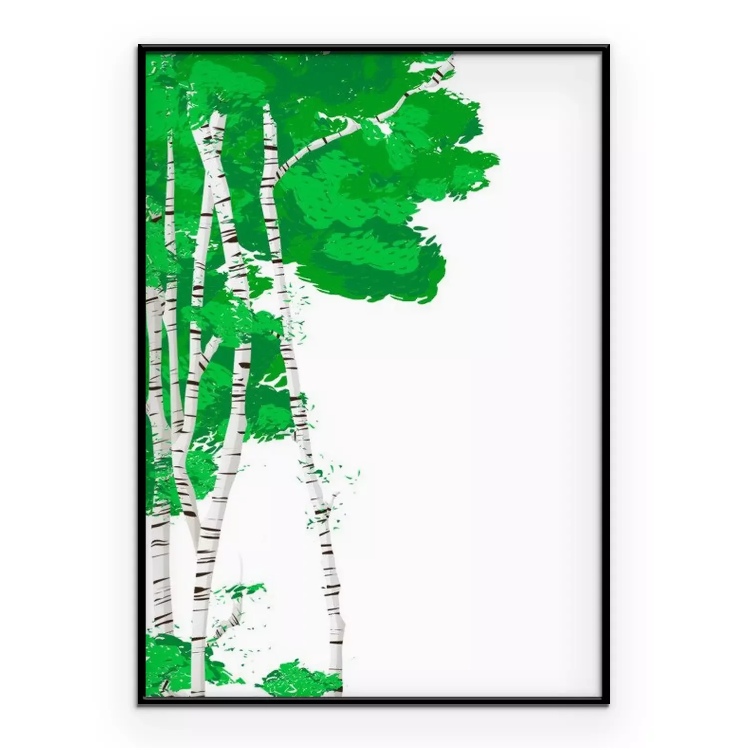 Poster  Esquisse en noir et blanc d'un bouleau parmi des fleurs