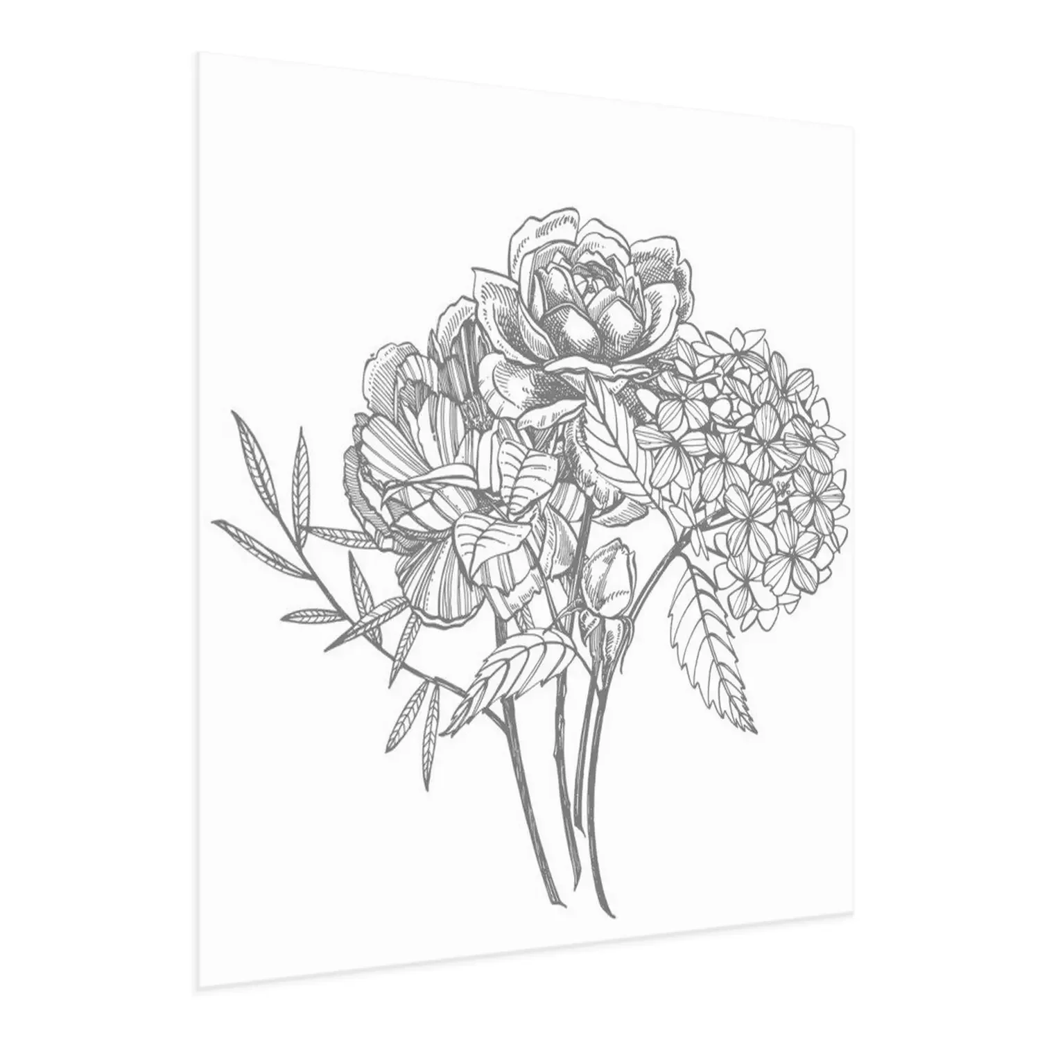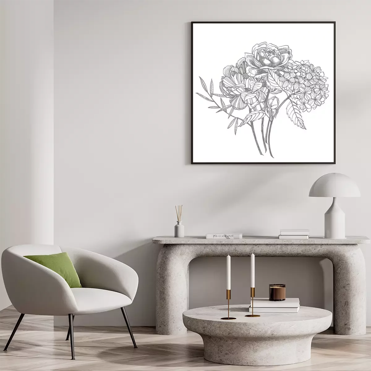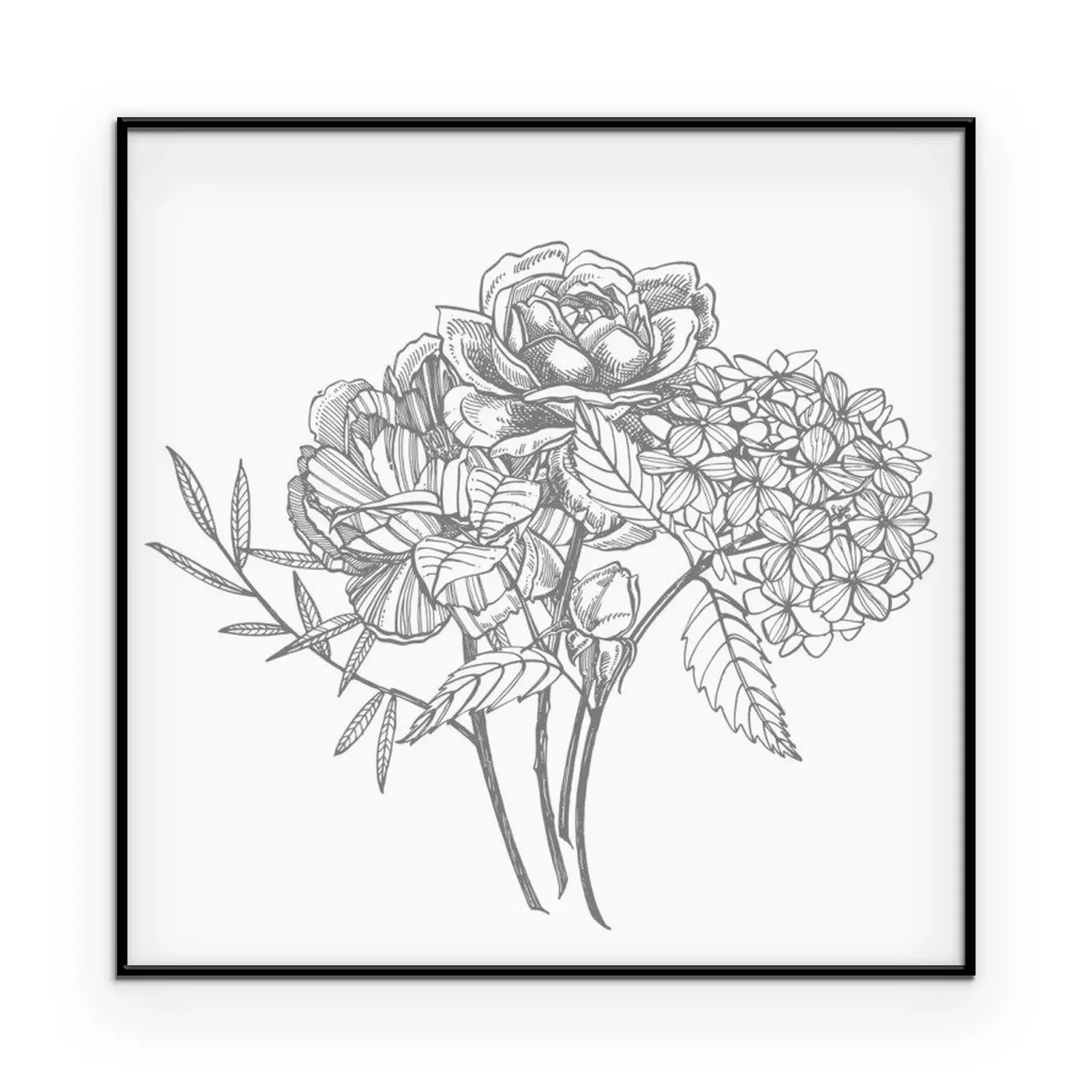 Poster  Esquisse ombragée au crayon de pivoines et d'hortensias