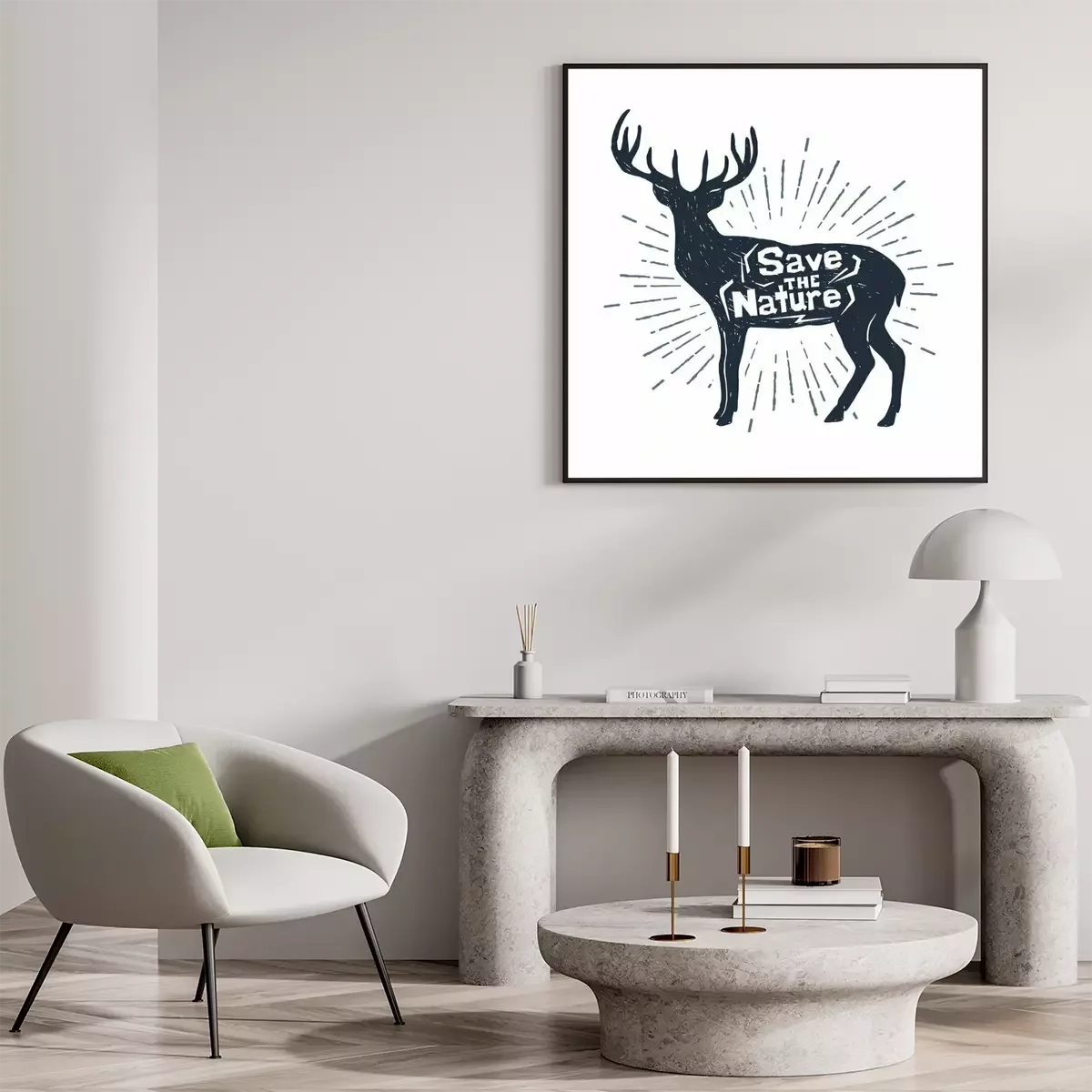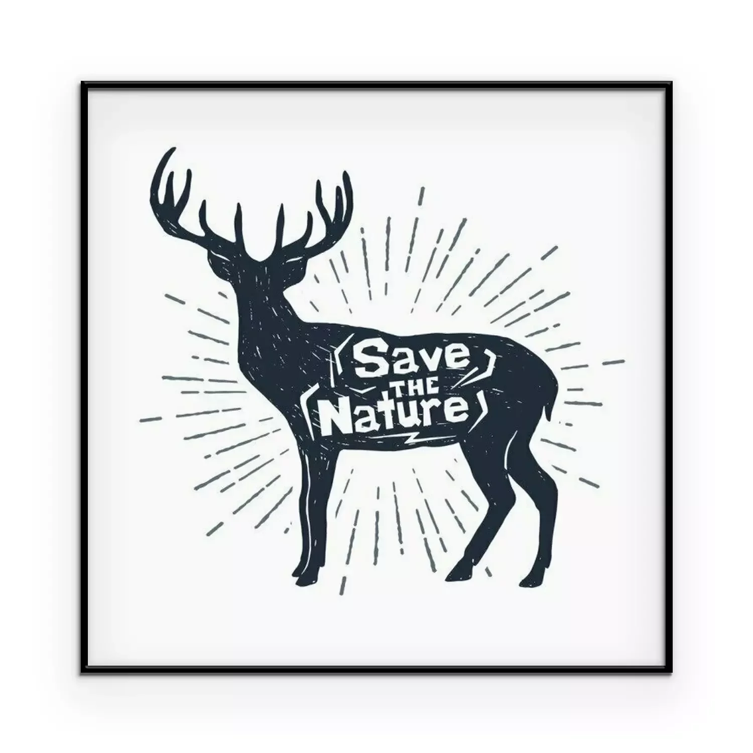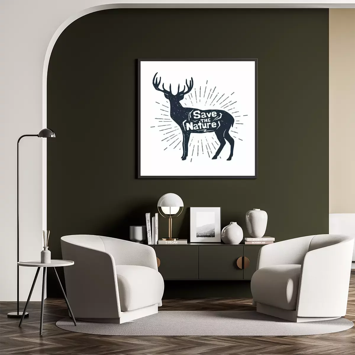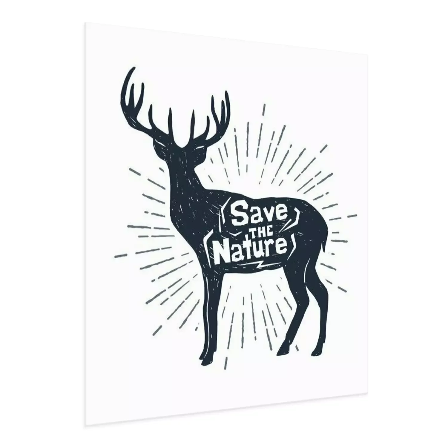 Poster  Étiquette tirée par la main avec l'illustration de vecteur texturée de cerfs communs et "sauvez le lettrage inspiré de nature".