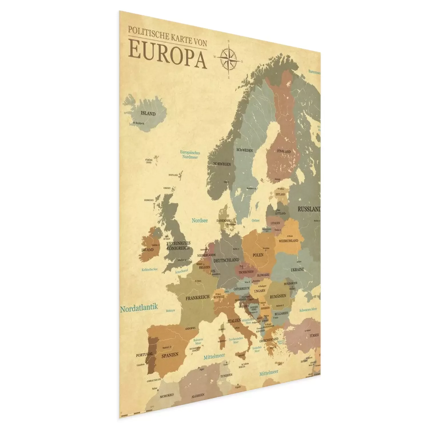 Poster  Europakarte mit hauptstädten - Vintage effekt - Version Deutsch - Vektor