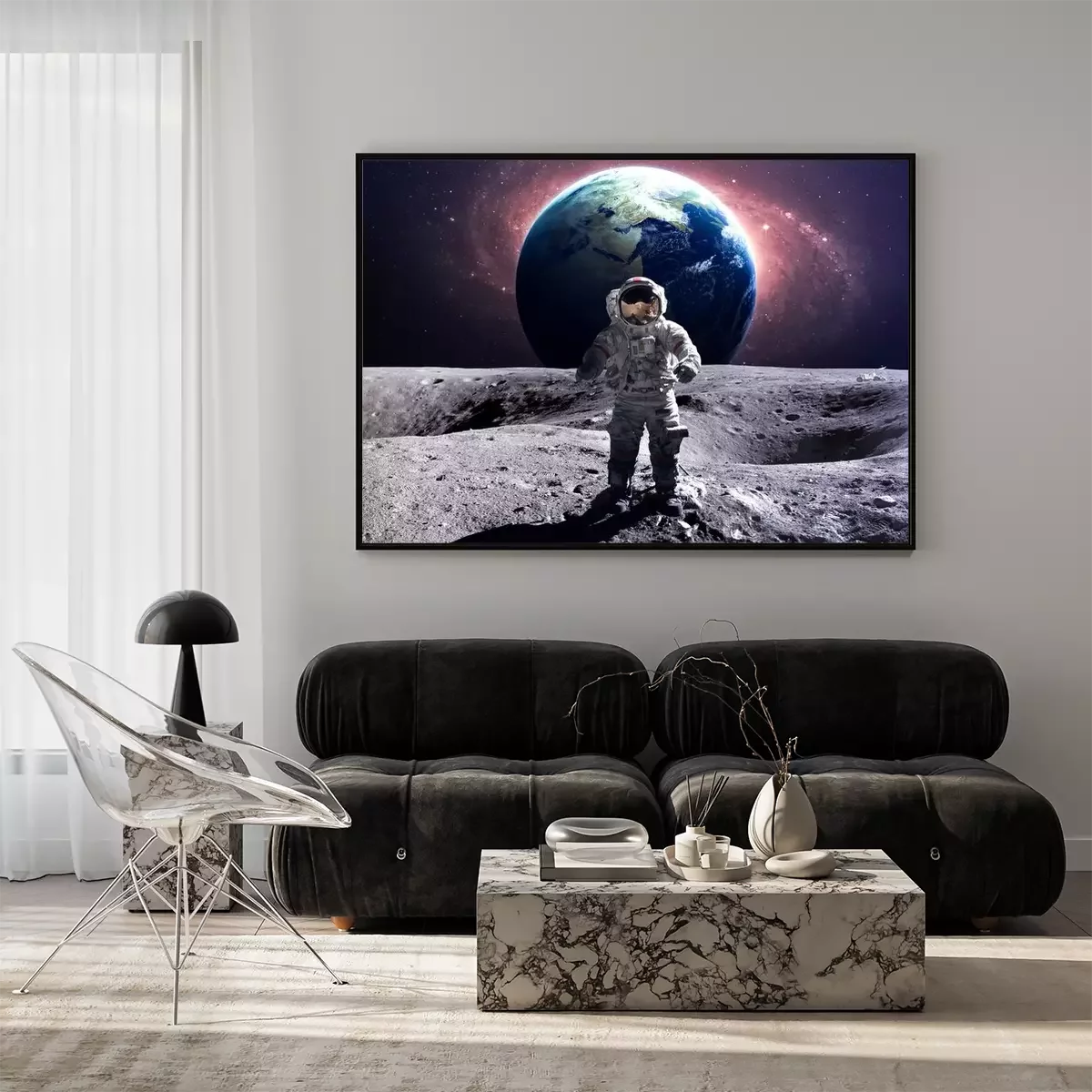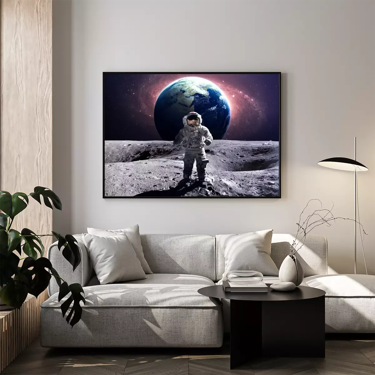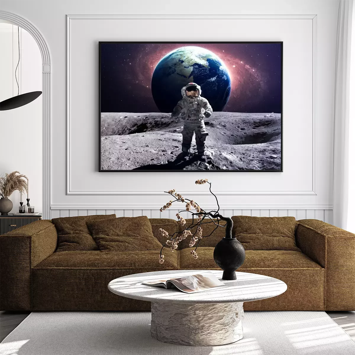 Cosmonaute sur la lune avec la Terre en arrière-plan