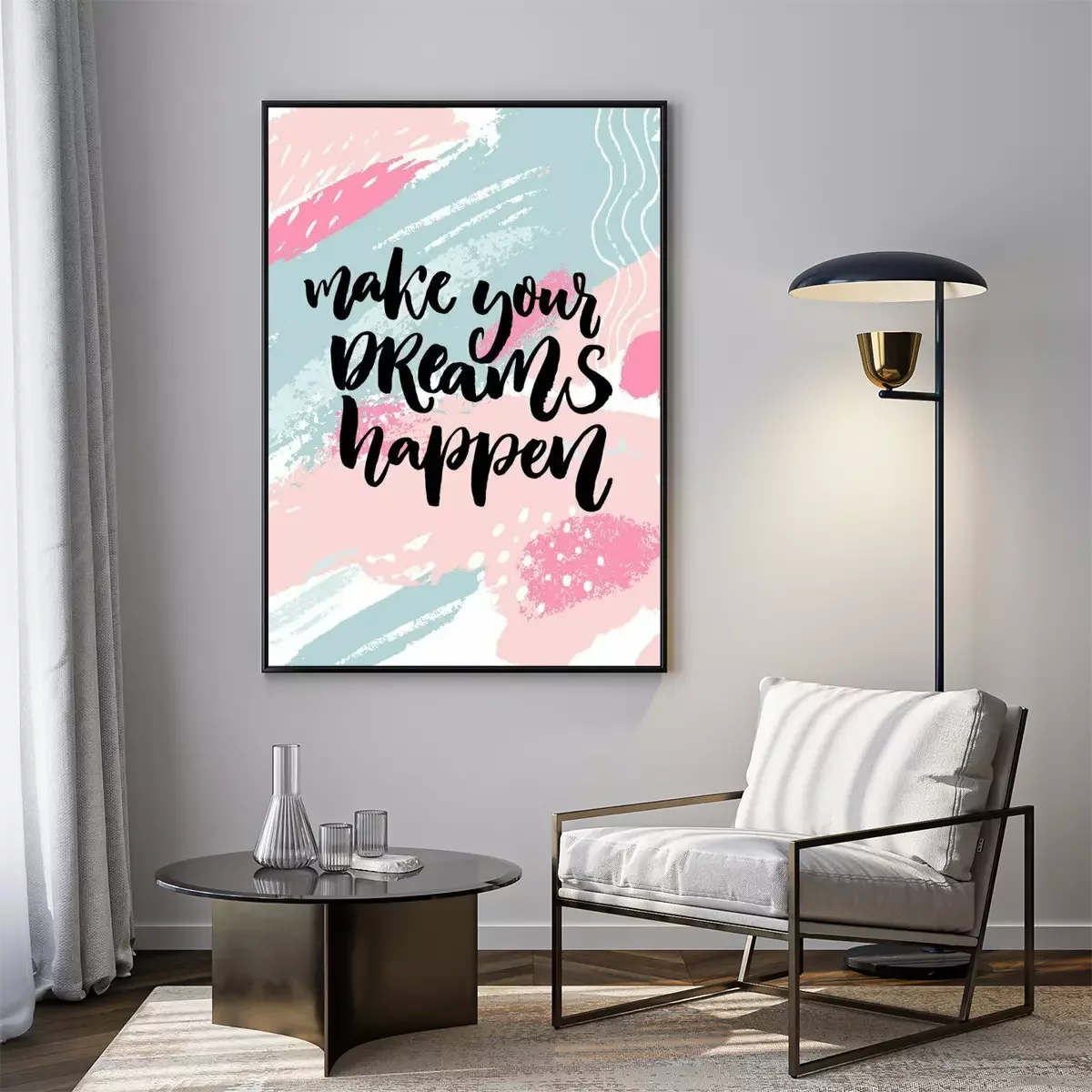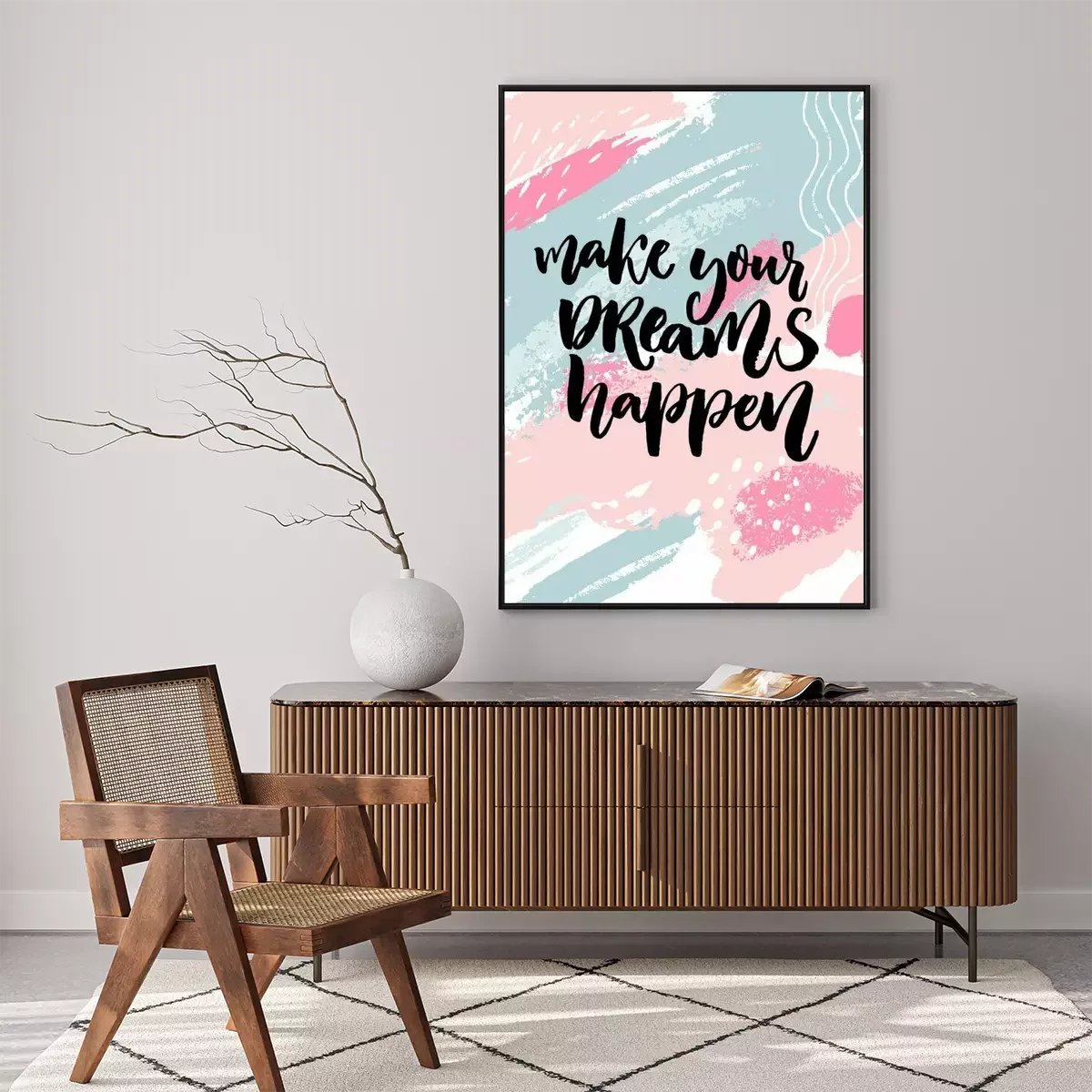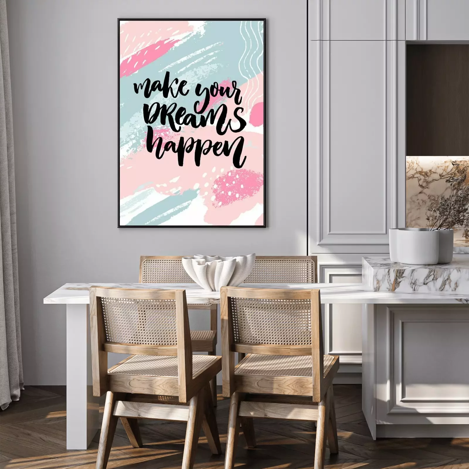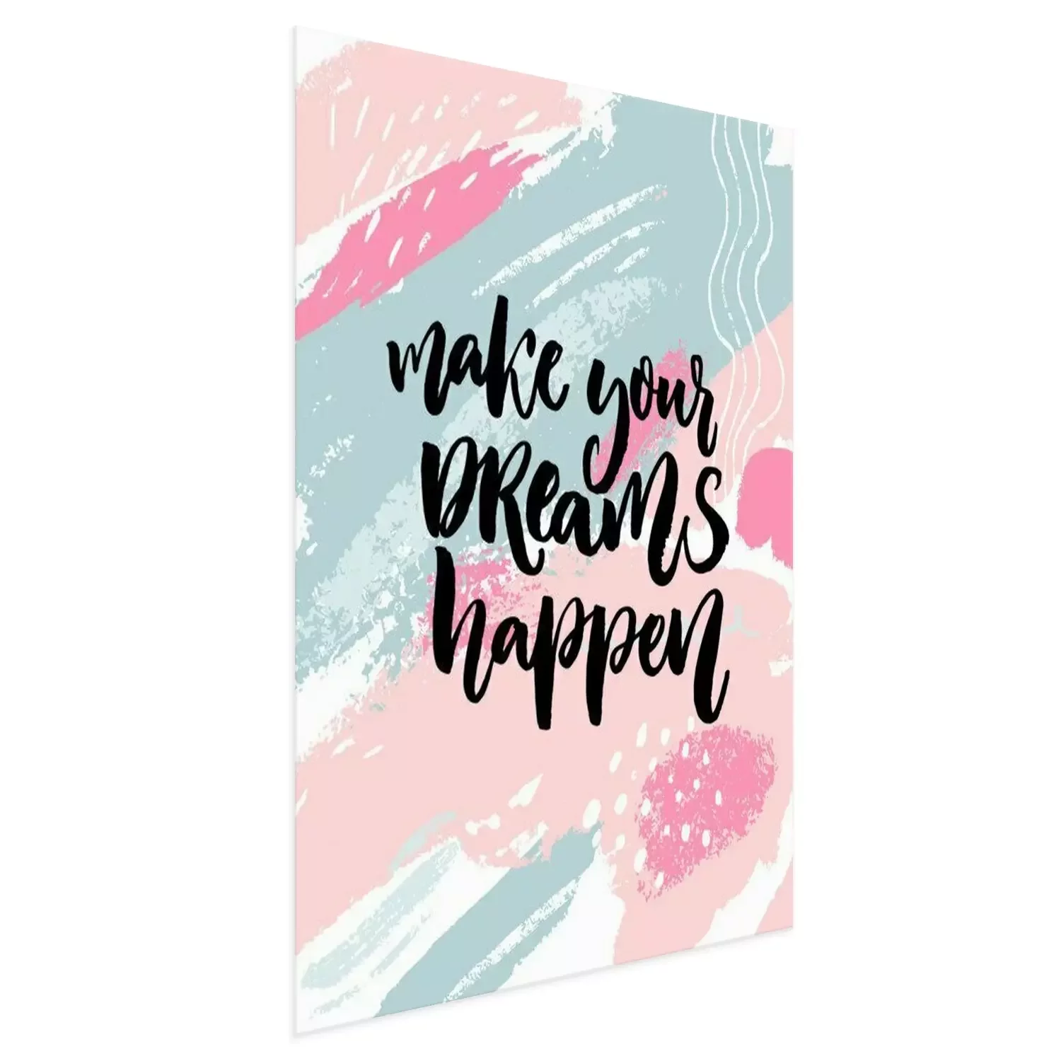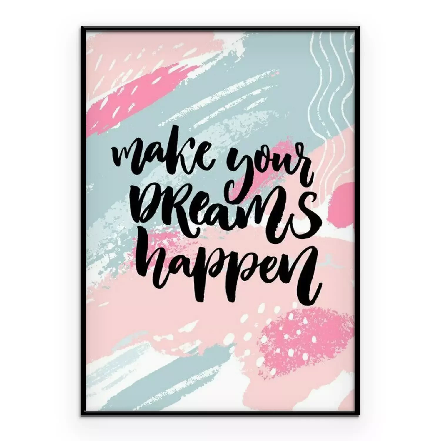 Poster : Faites vos rêves. Citation d'inspiration sur texture pastel rose et bleu pastel avec des taches de peinture.