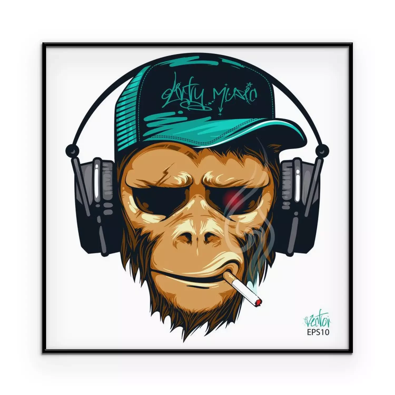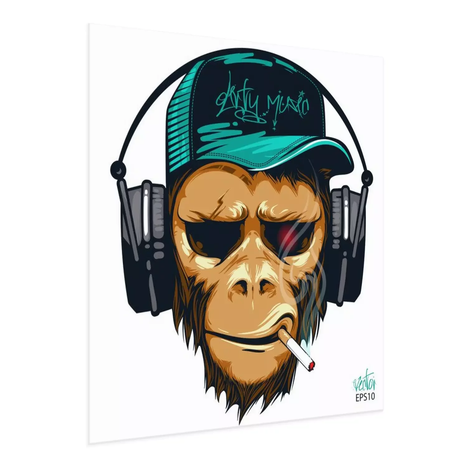 Poster  Fan de musique hipster singe dans le casque. DJ chimpanzé
