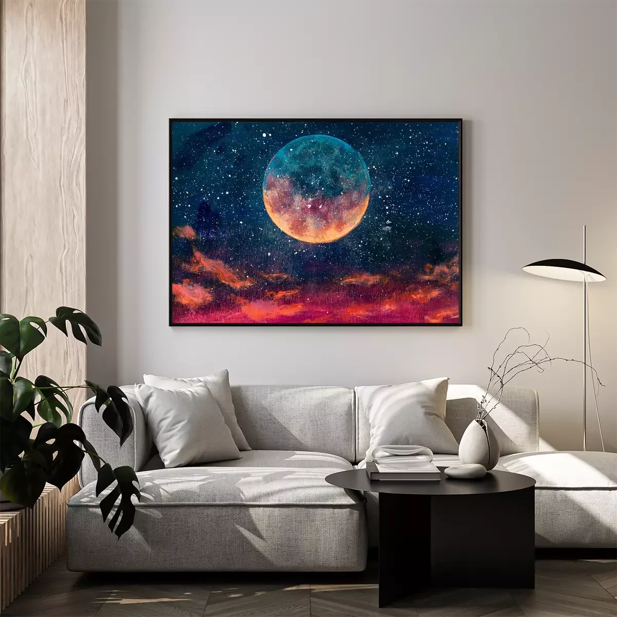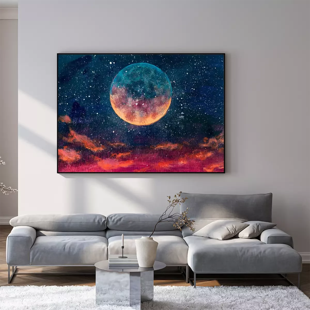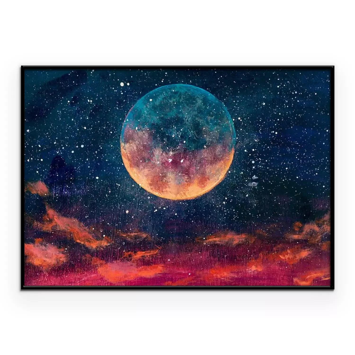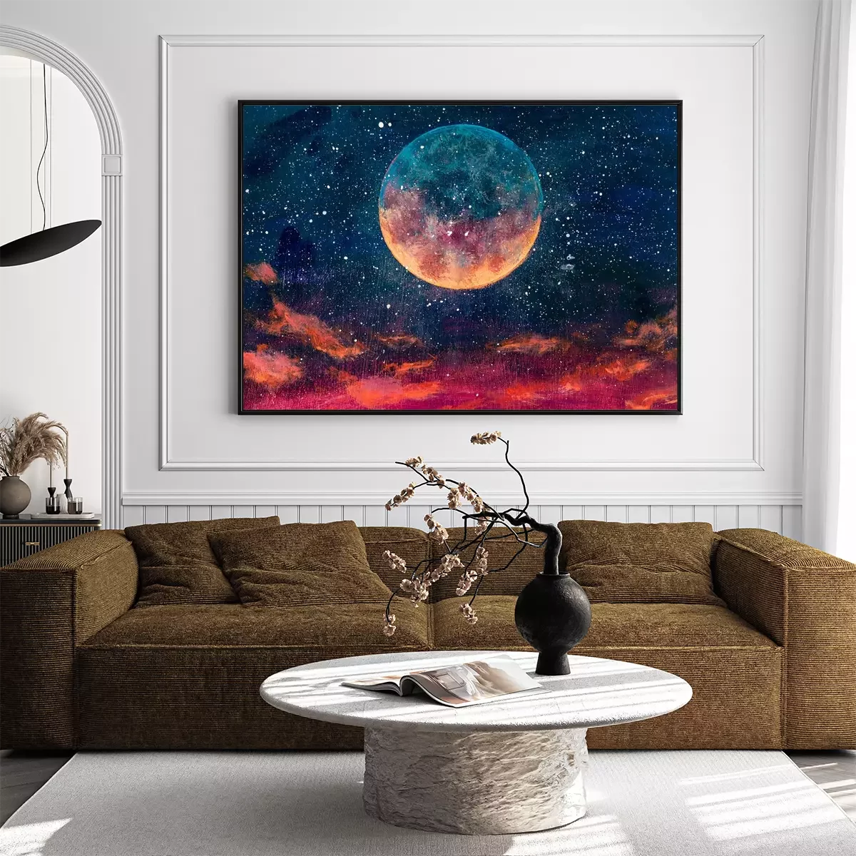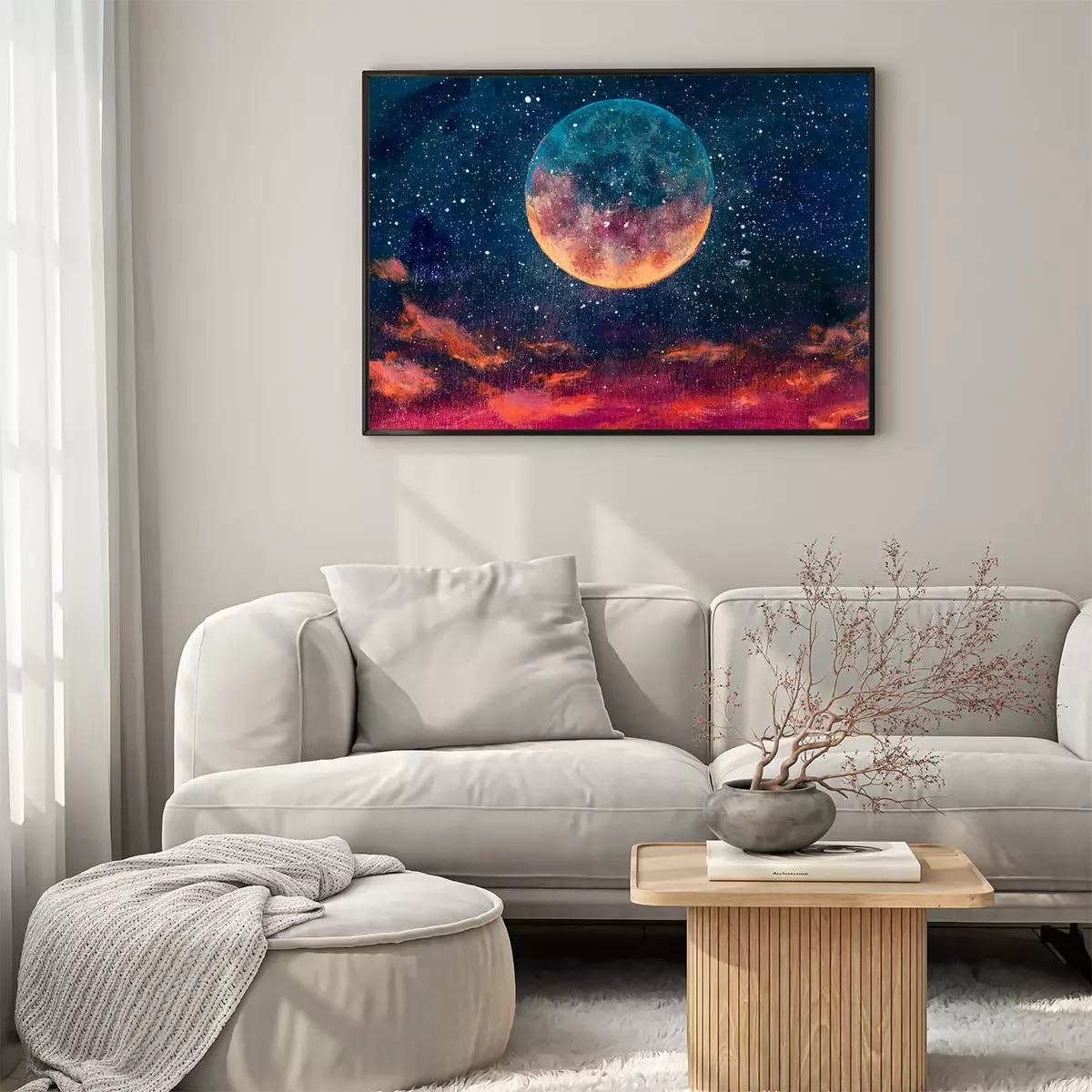 Poster : Fantastic oil painting beautiful big planet moon among stars in universe. Fantasy concept cosmos fine art paintingartwork for book illustration