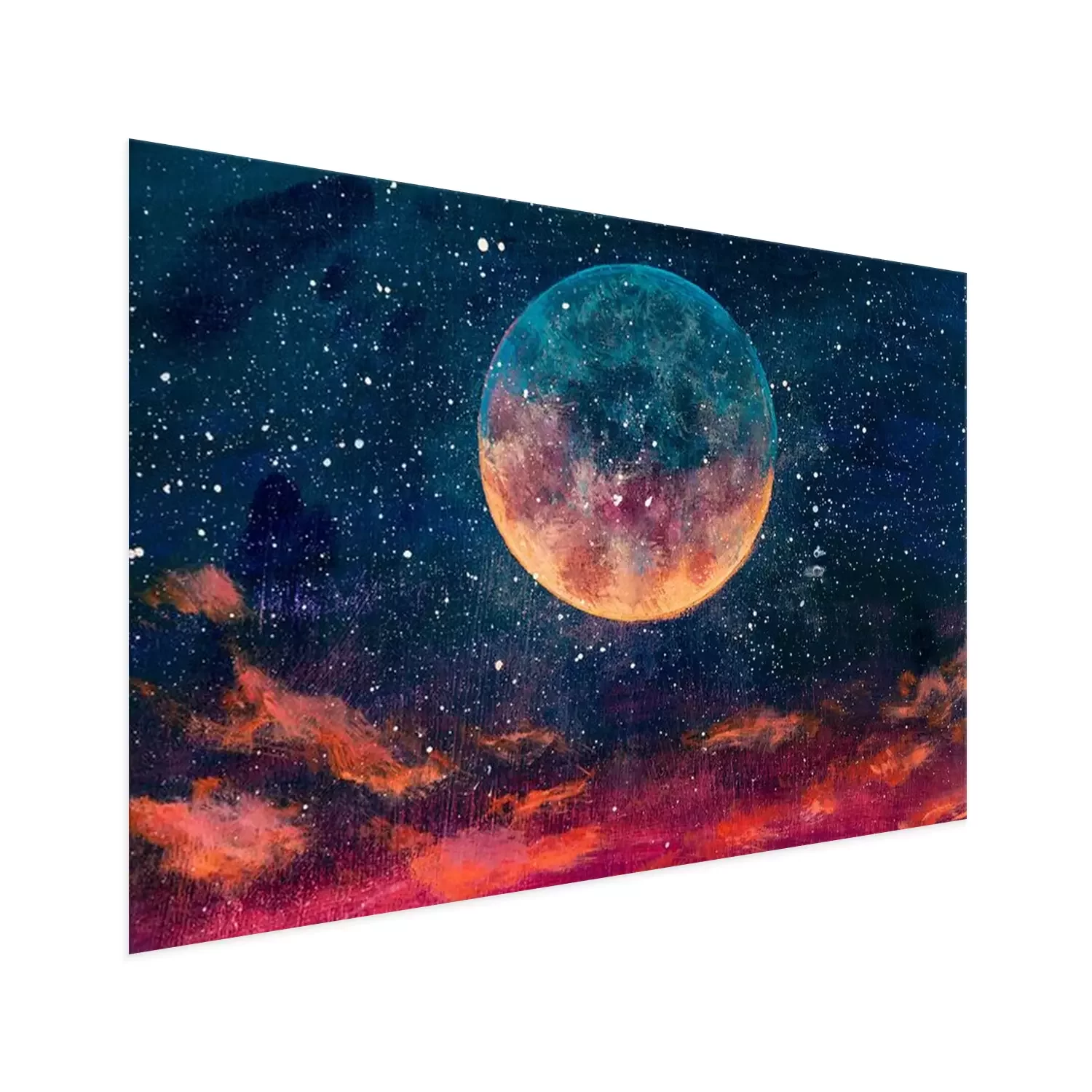 Poster  Fantastic oil painting beautiful big planet moon among stars in universe. Fantasy concept cosmos fine art paintingartwork for book illustration