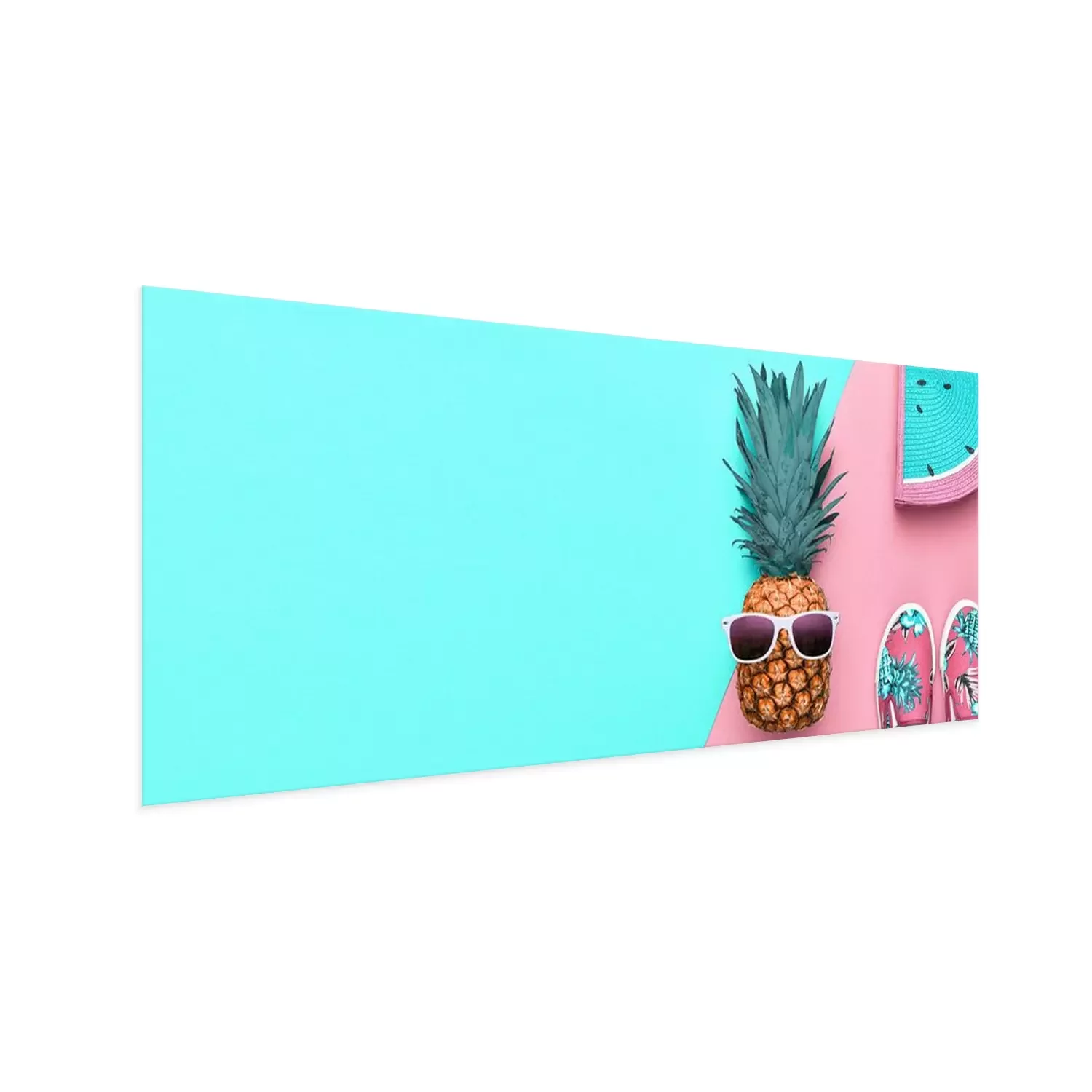 Poster : Fashion. Pineapple hipster in sunglasses, stylish sneakers, handbag. Minimal concept, summer accessories, tropical pineapple. Creative art fashionable concept, summertime, banner