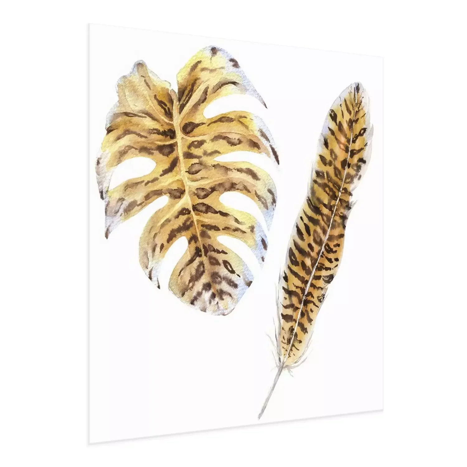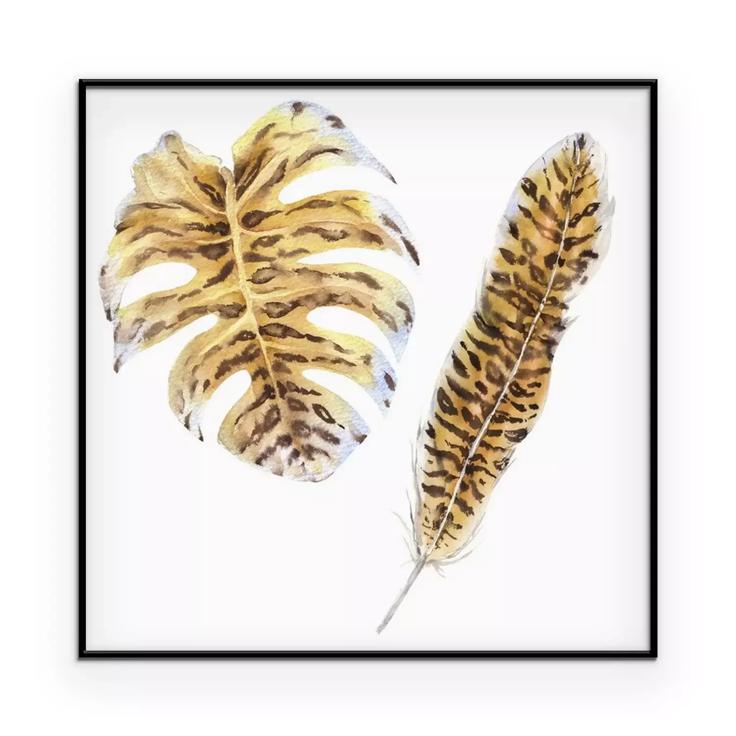 Poster  Feathers And Leaves Wild Animals Watercolor Set. Tiger Skin