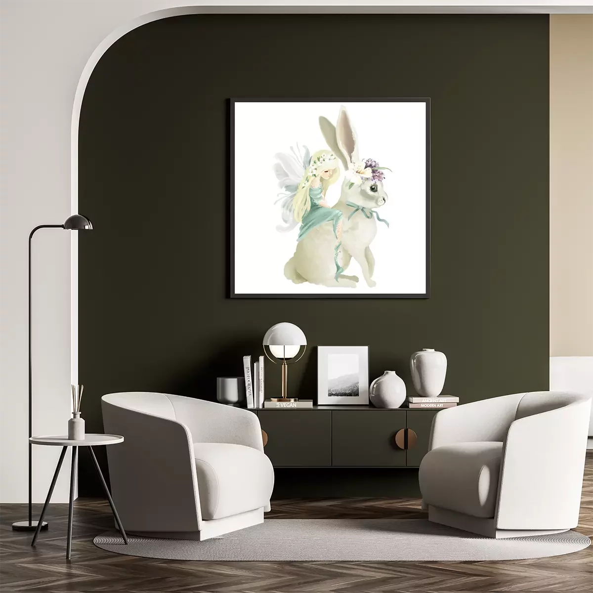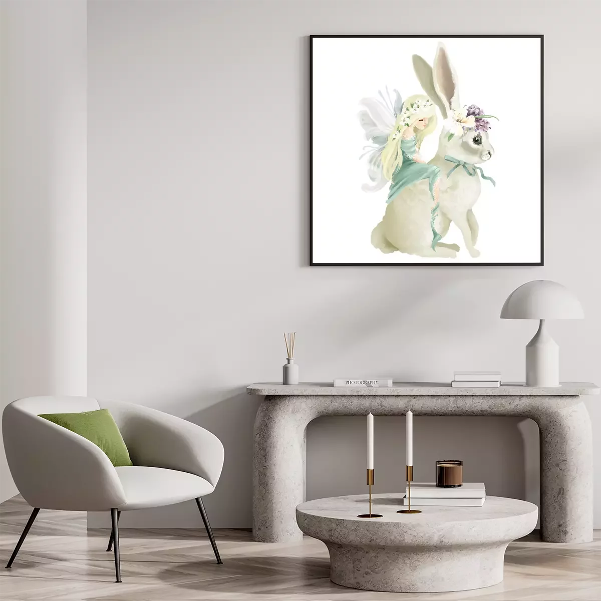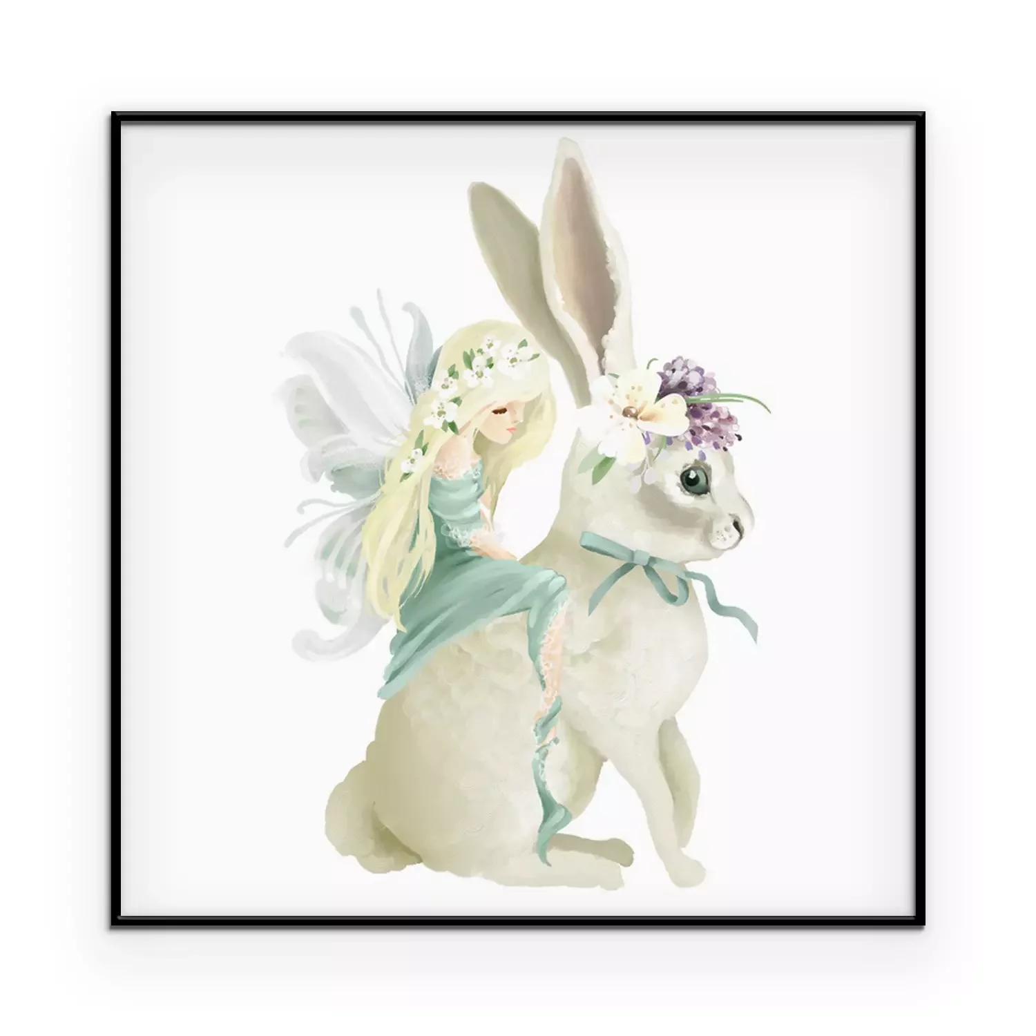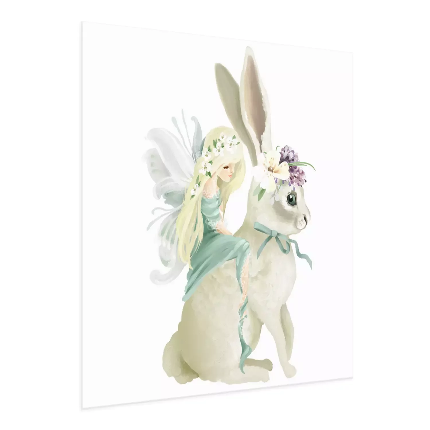 Poster : Fée aux cheveux blonds assise sur un lièvre