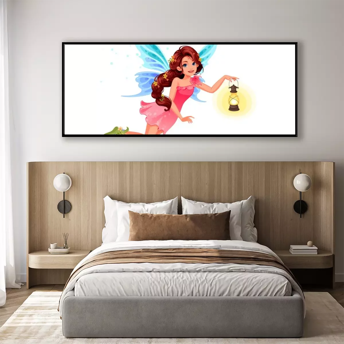 Poster  Fée volante avec une lanterne à la main