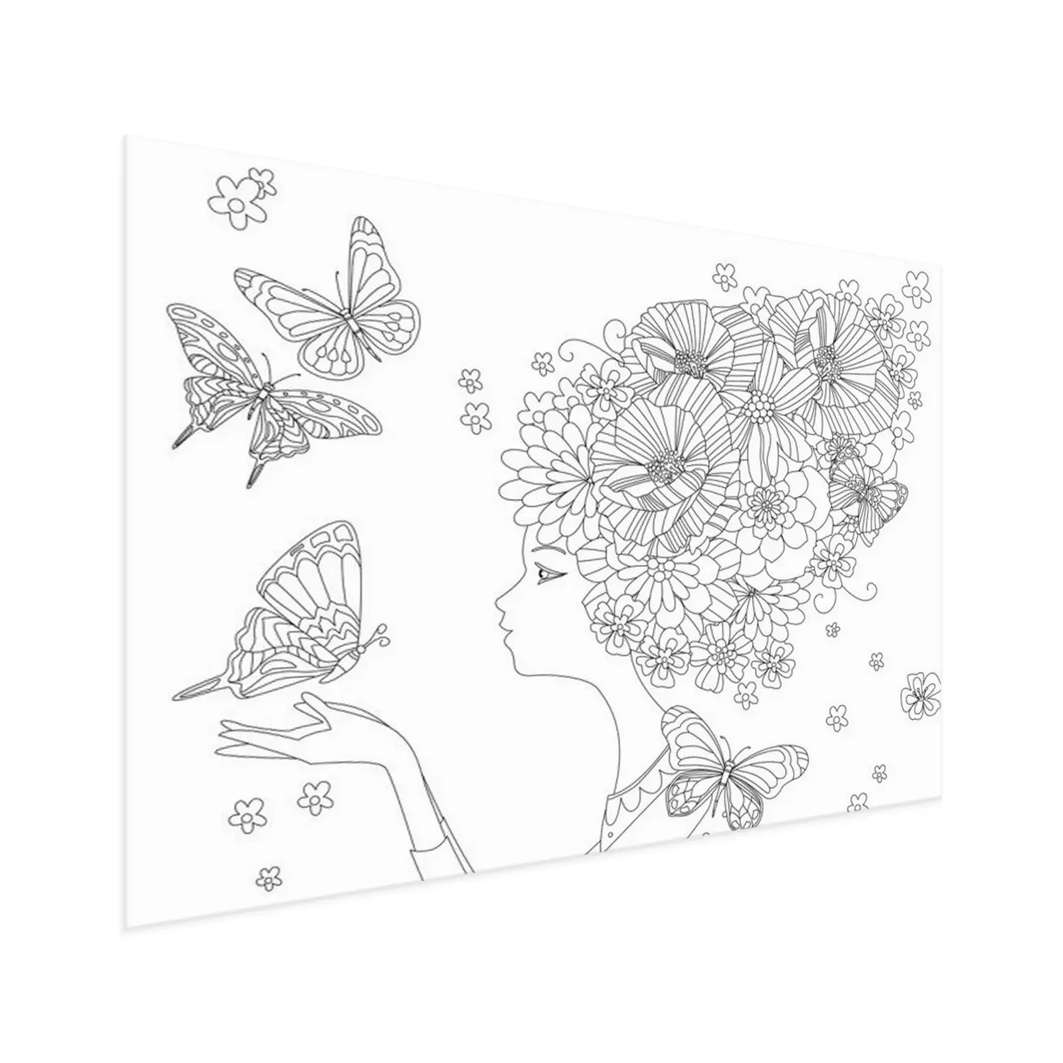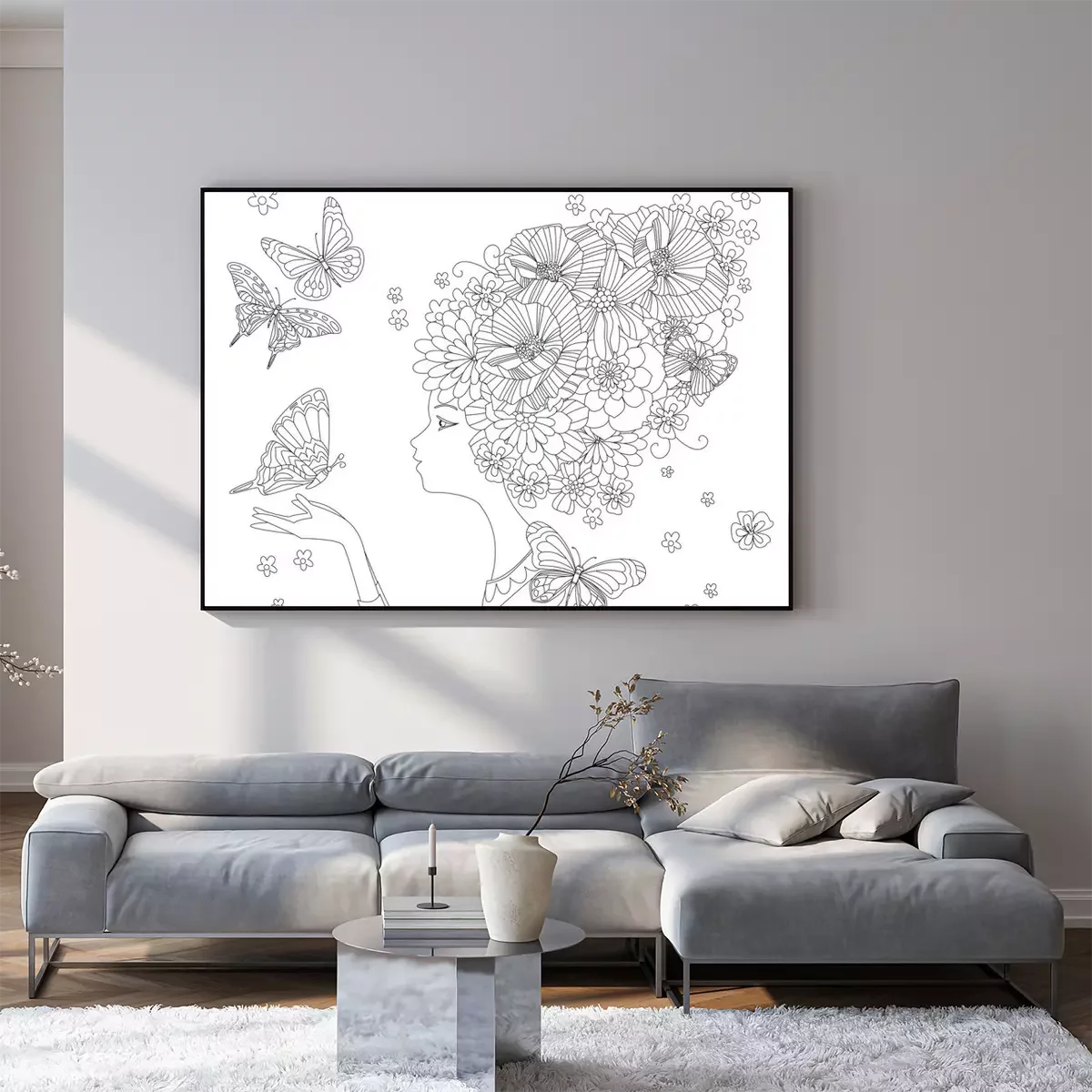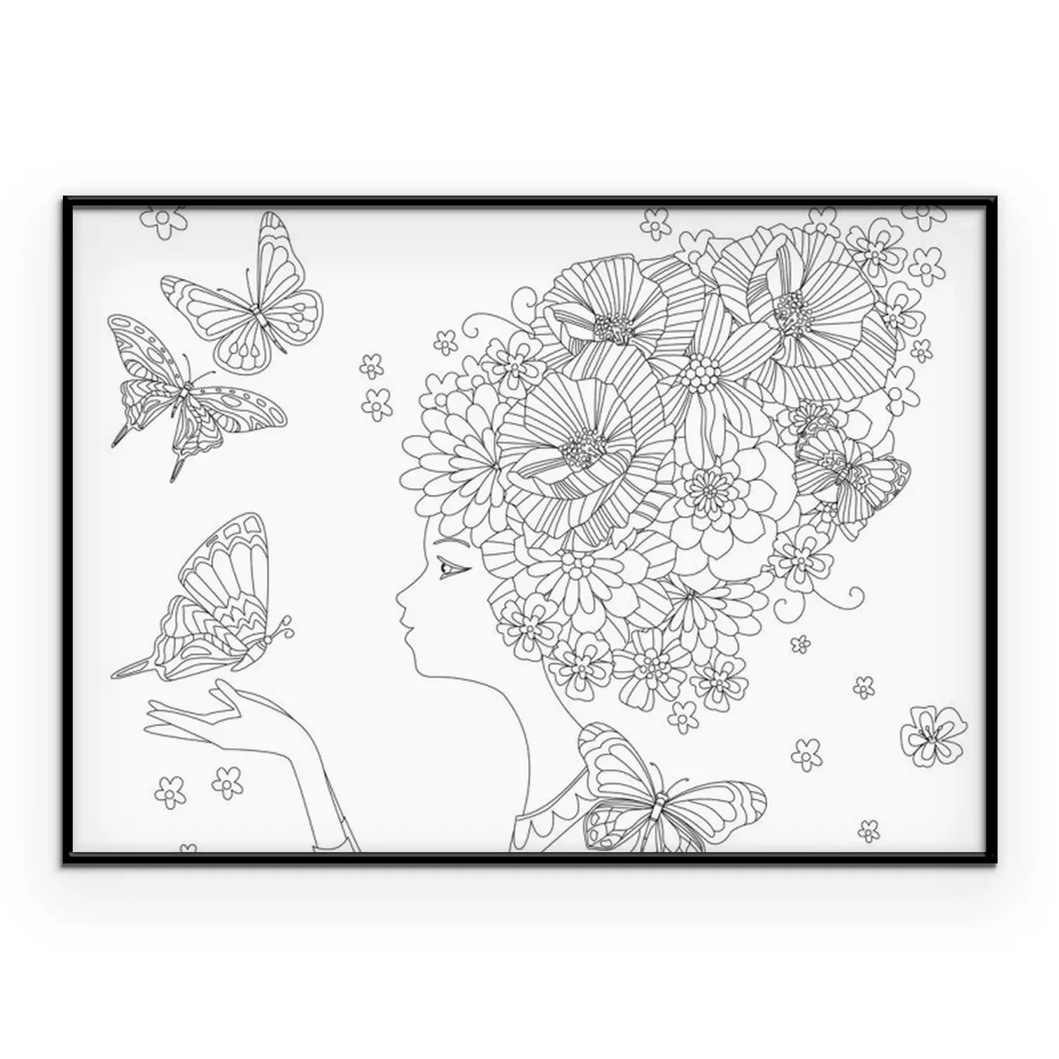 Poster : Femme avec des fleurs au lieu de cheveux et de papillons