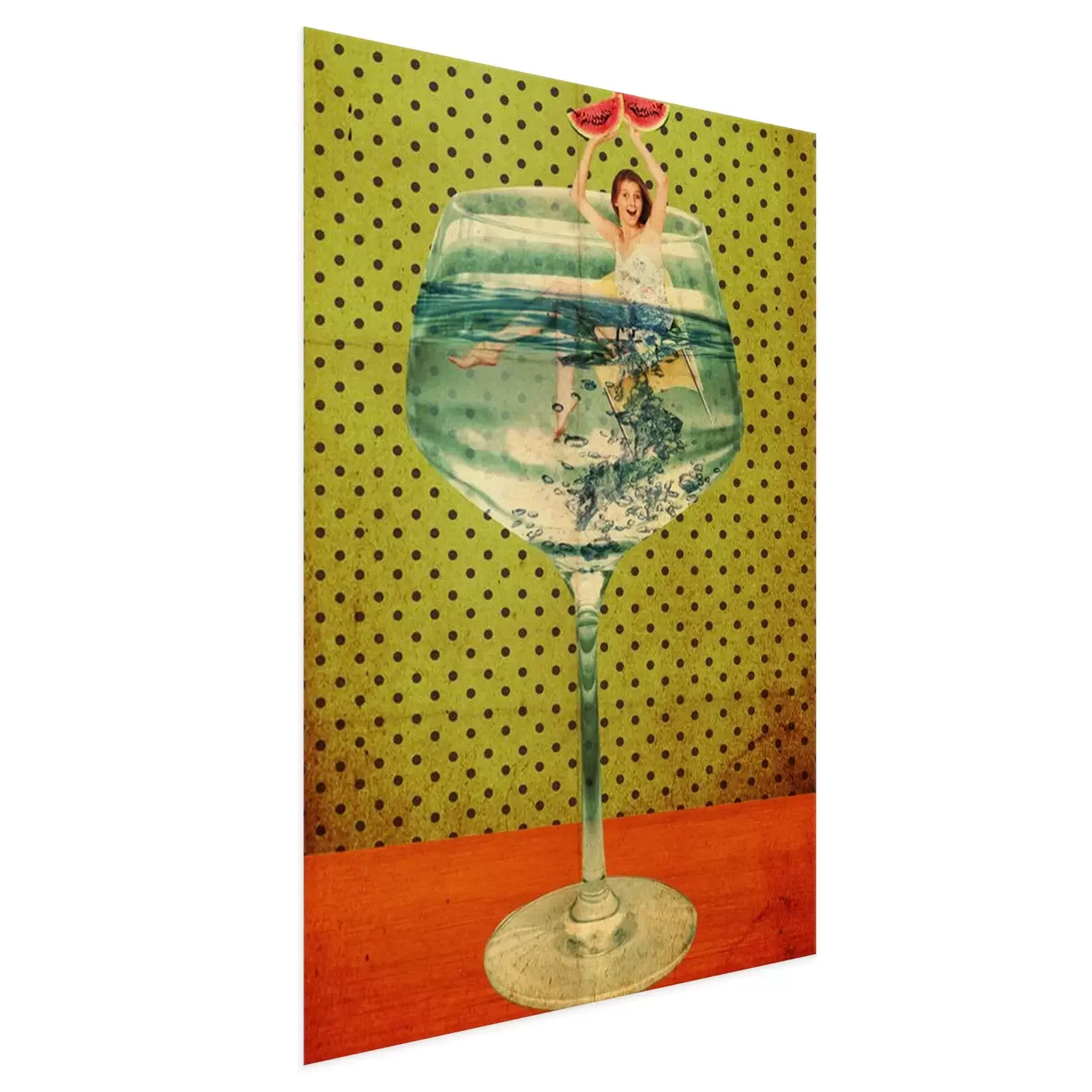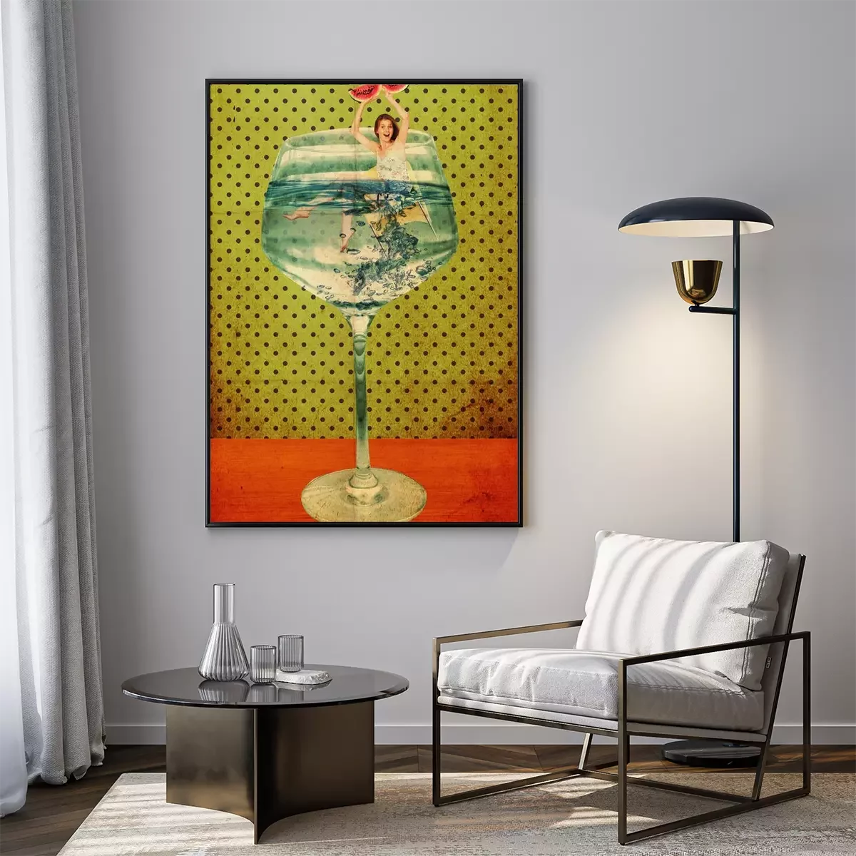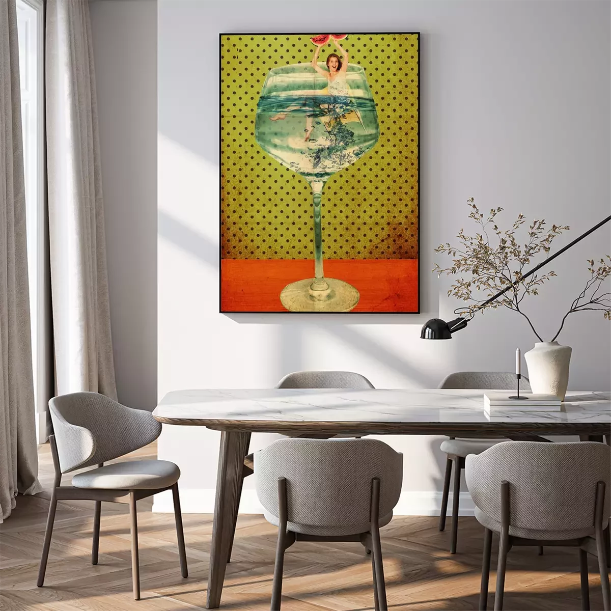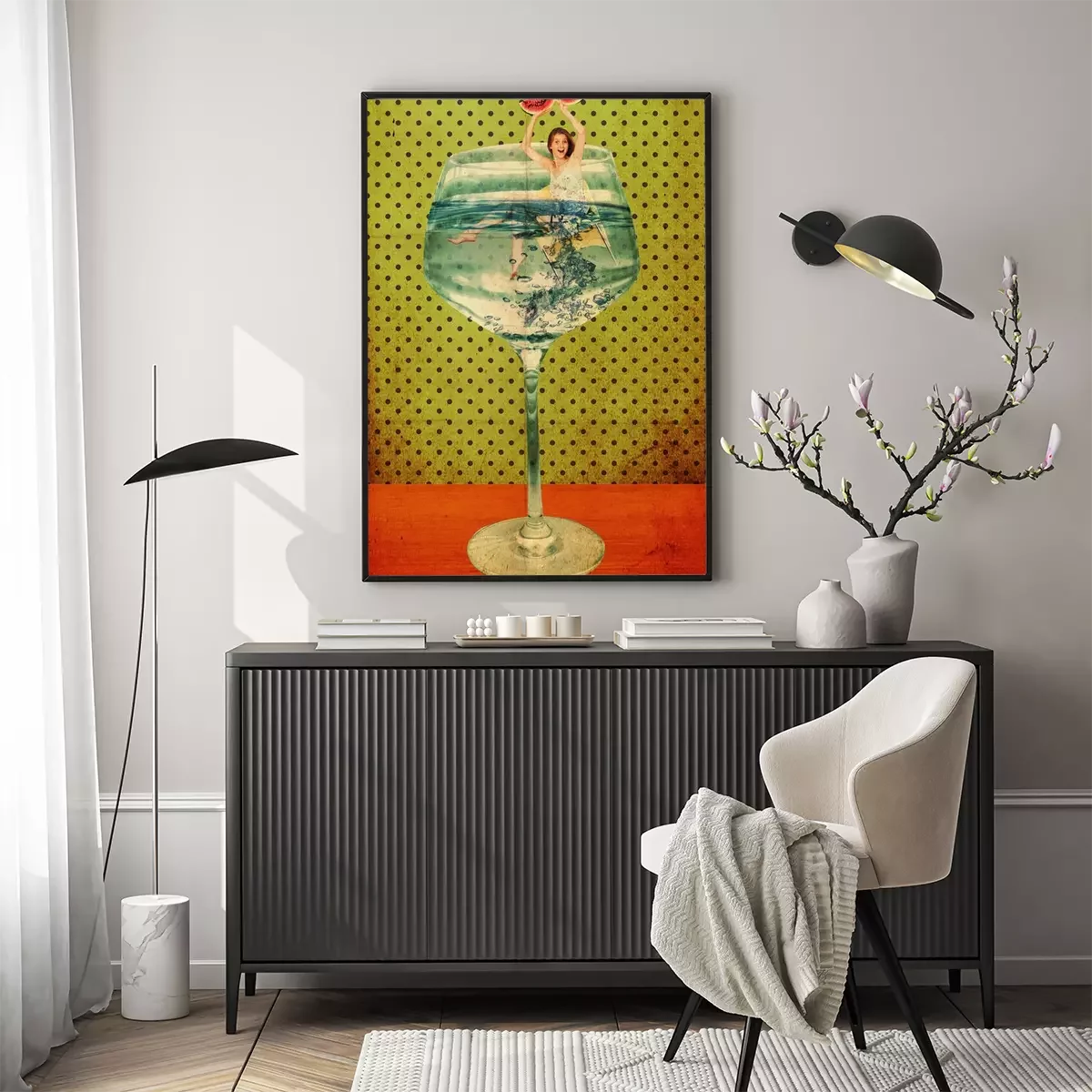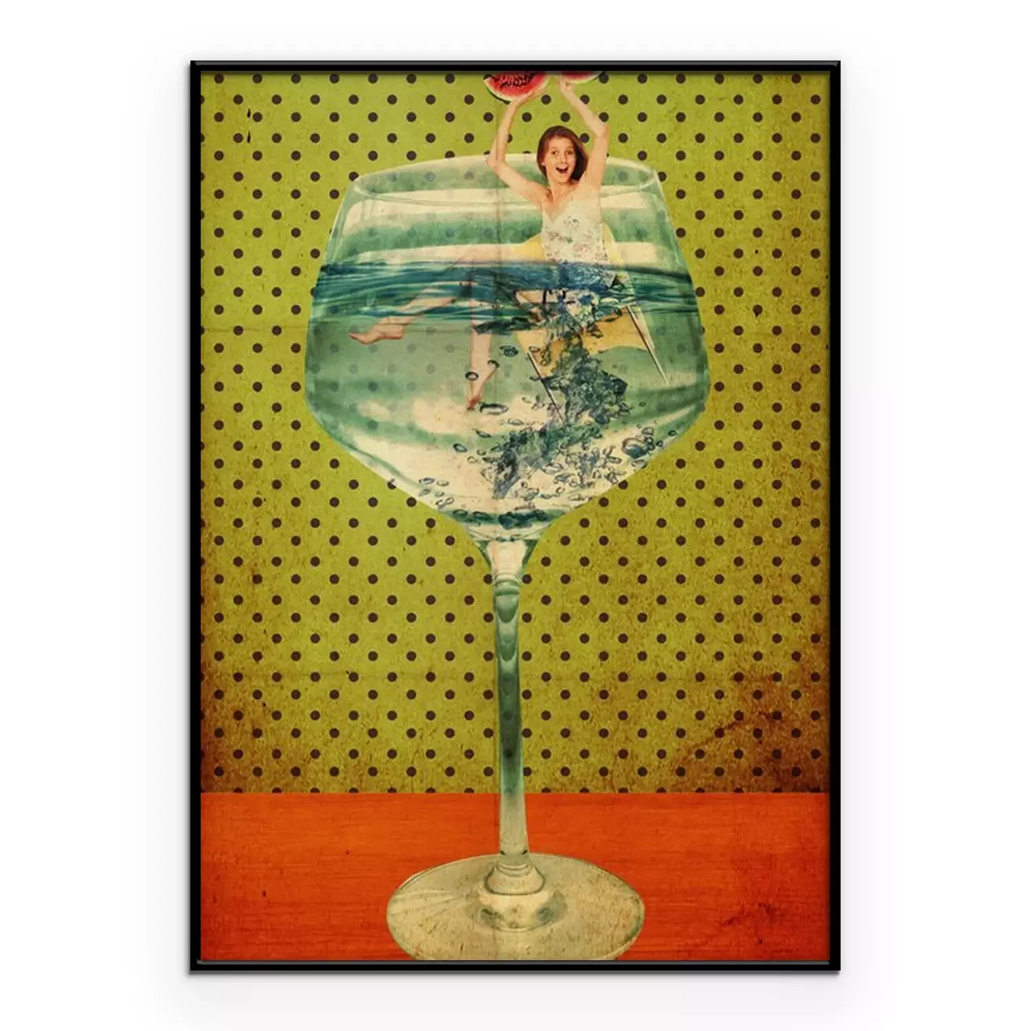 Poster  Femme dans un verre d'eau sur un fond rétro